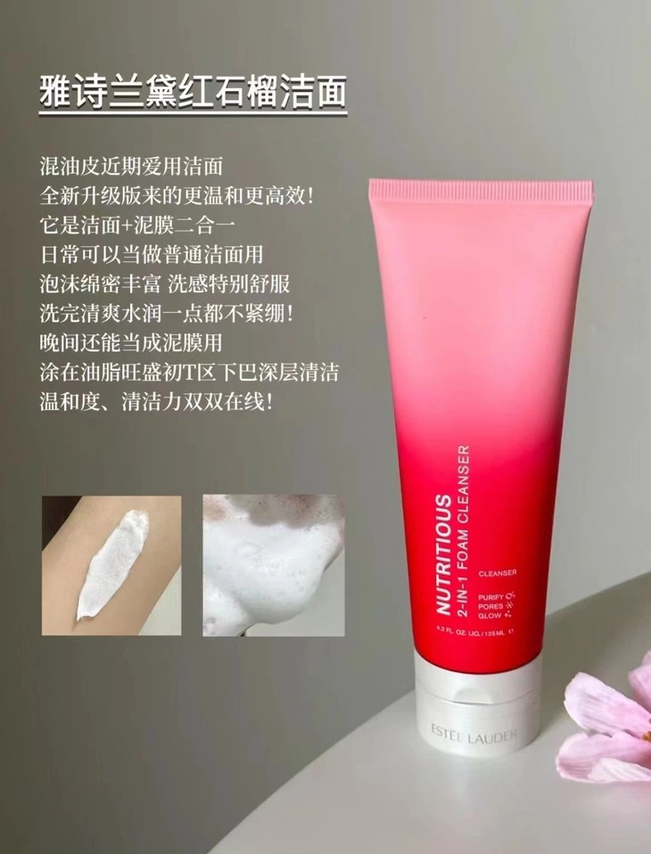 严选 | 雅诗兰黛红石榴洁面乳 125ml 新版 洗面奶洁面泥膜二合一 细毛孔深层清洁去油透亮