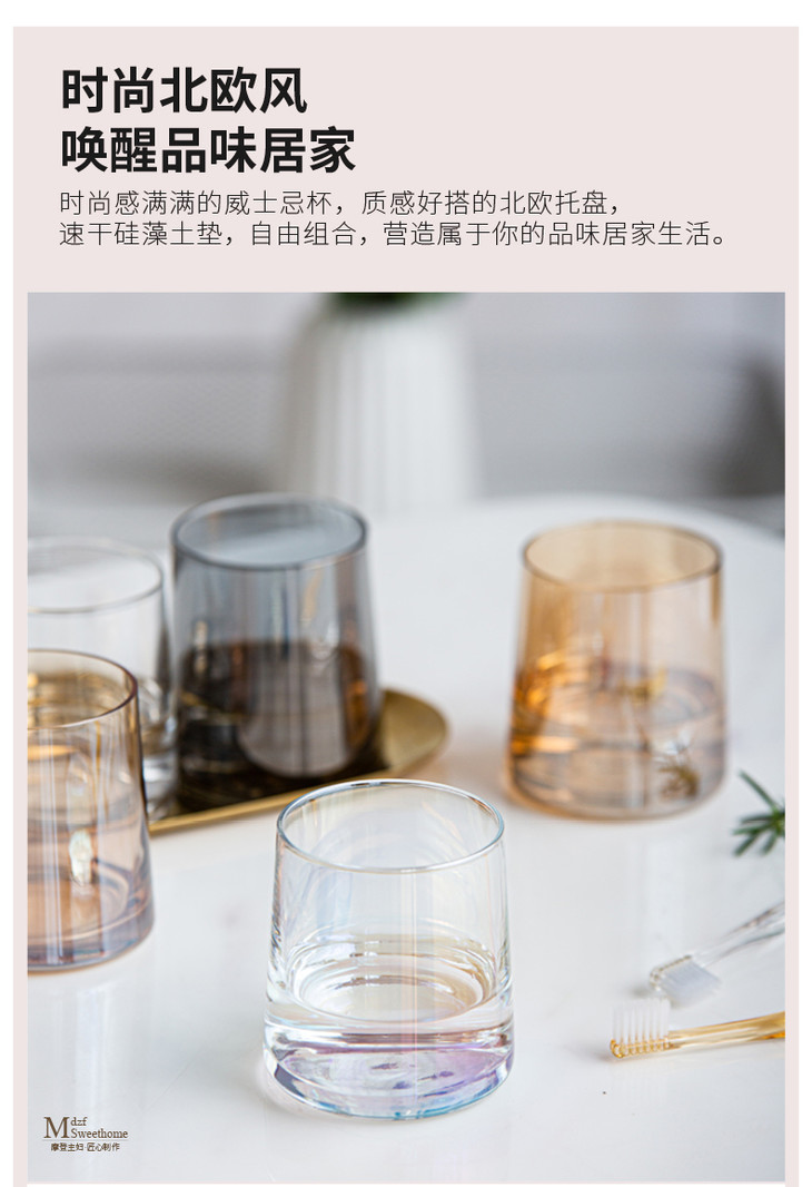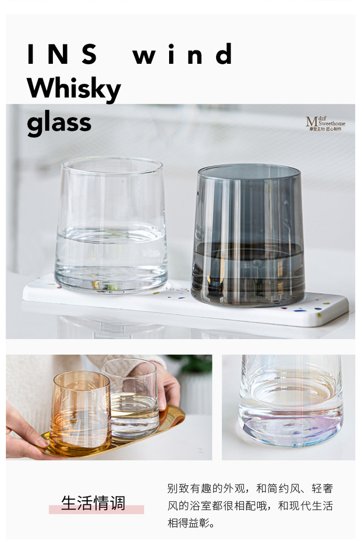 【雪梨自留】摩登主妇ins风玻璃杯水杯家用威士忌酒杯杯子4件套