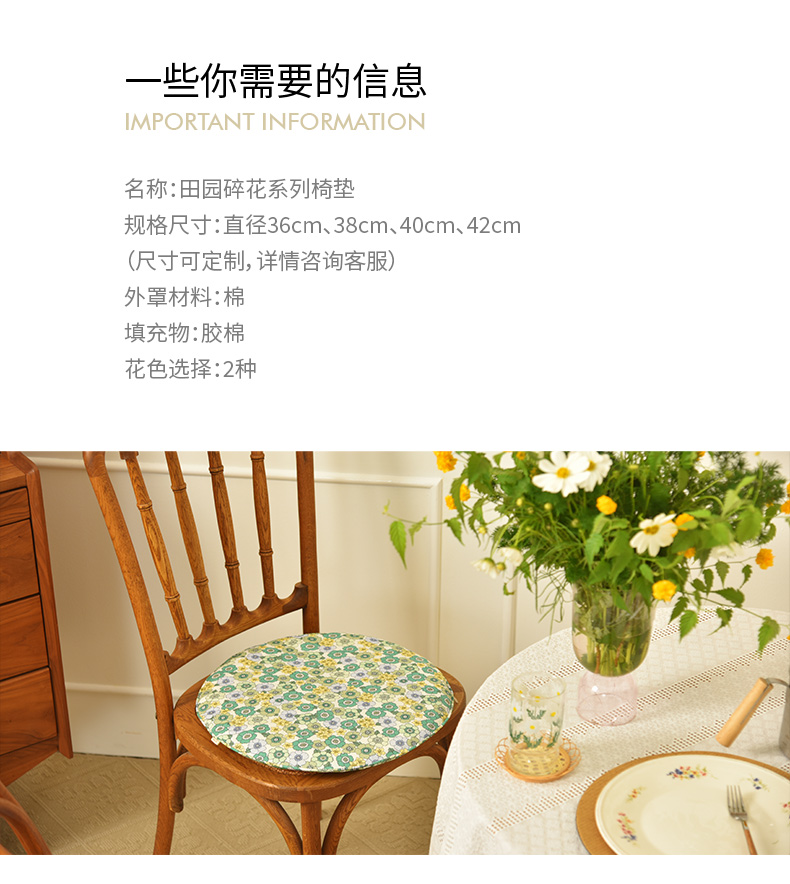 田园碎花系列椅垫家用四季通用中式实木加厚餐椅防滑圆形座垫