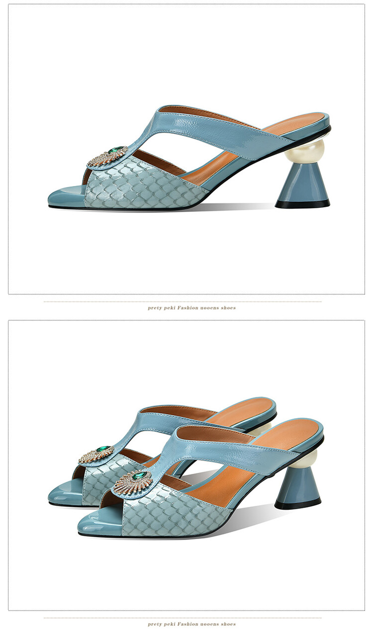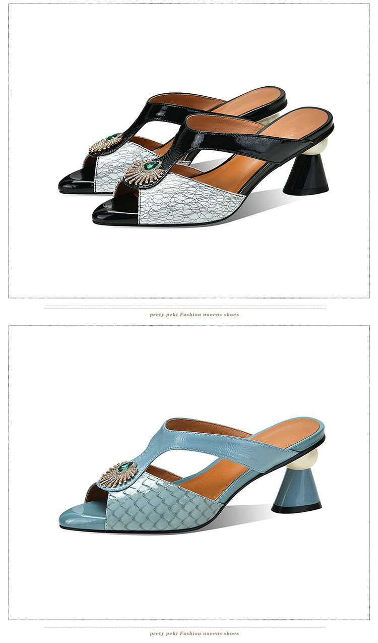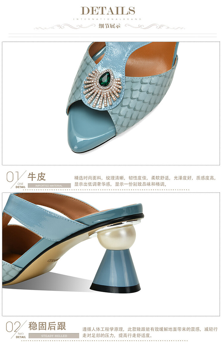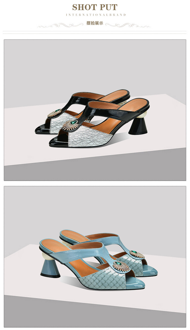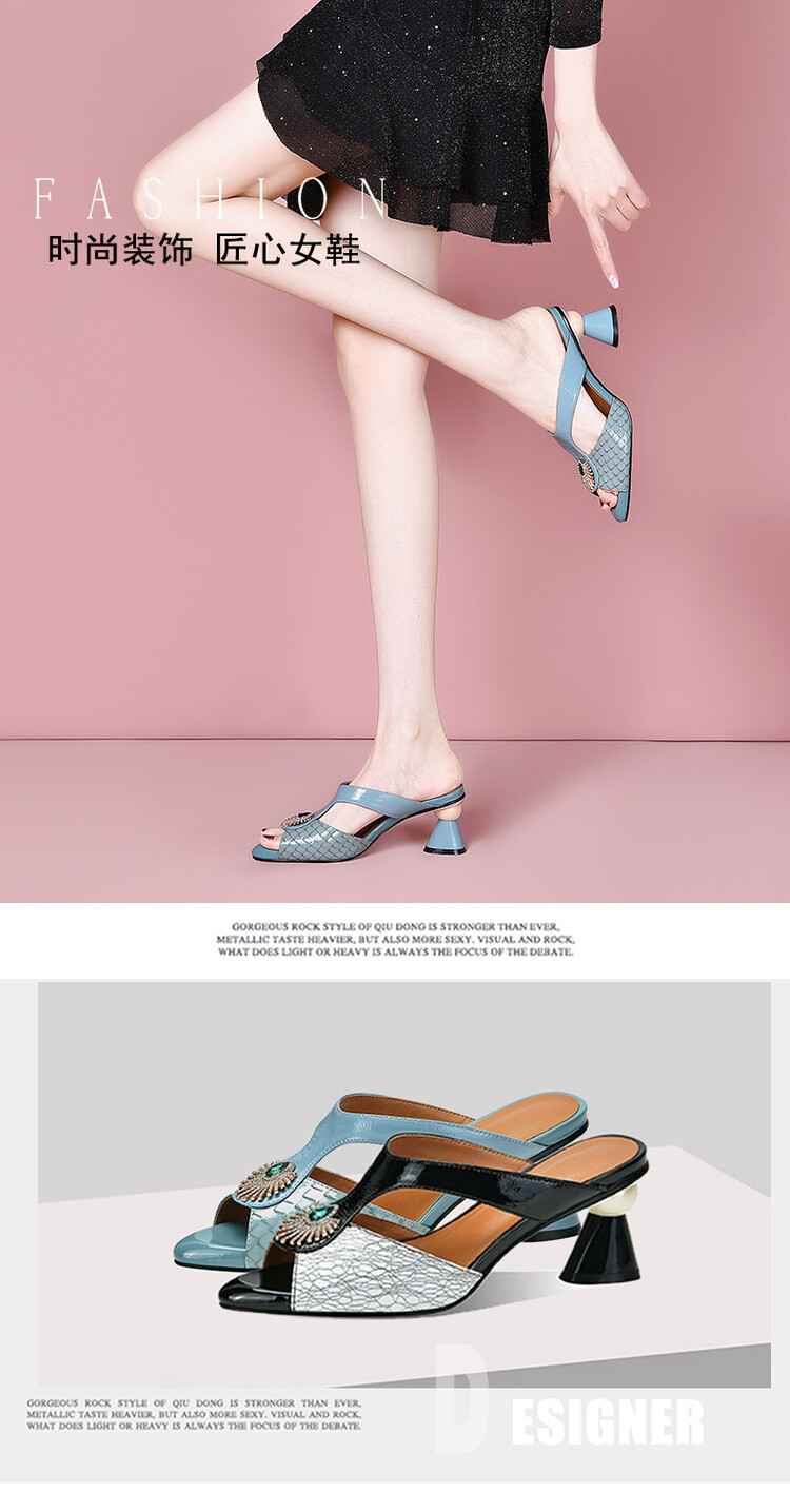 方头异形跟高跟鞋,鱼嘴金属水钻后空凉拖鞋SY-211-s88
