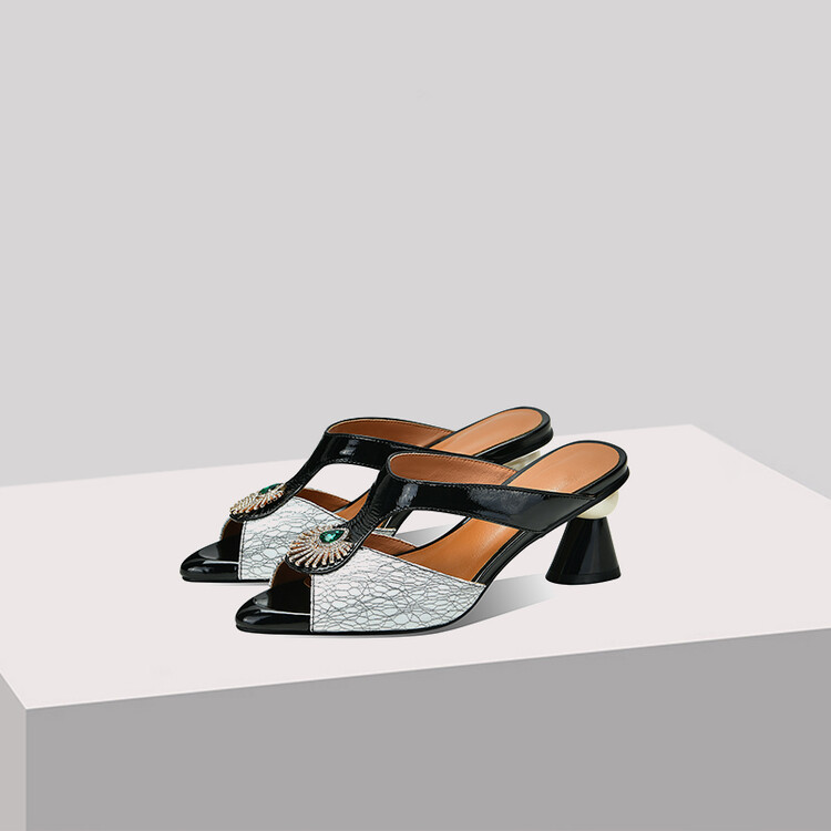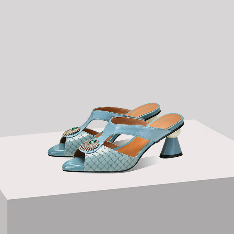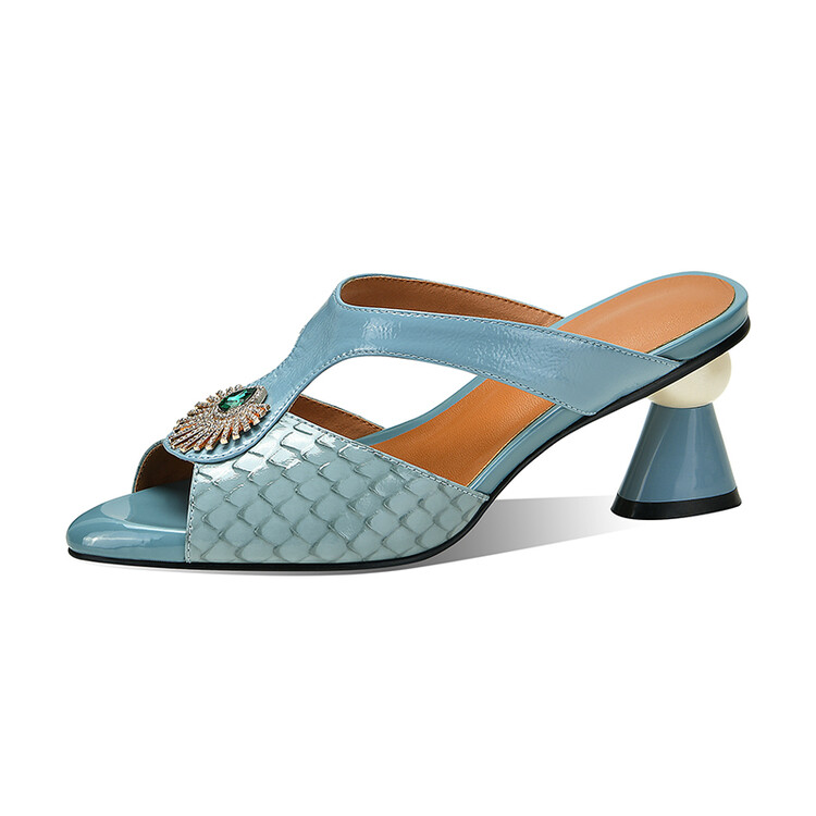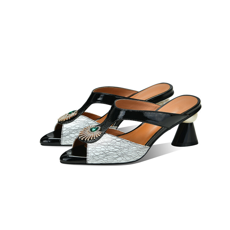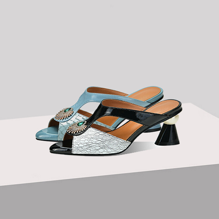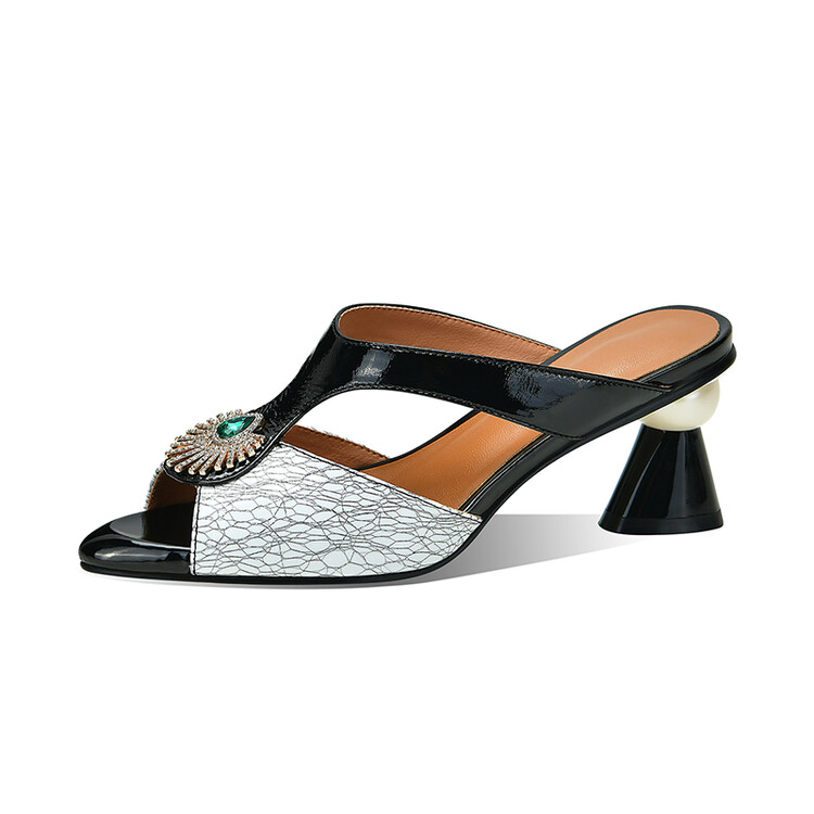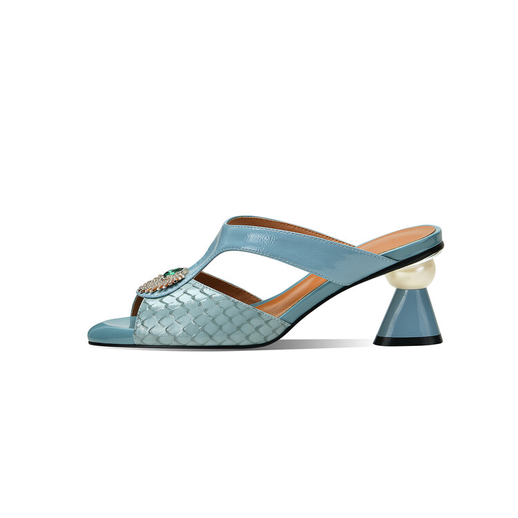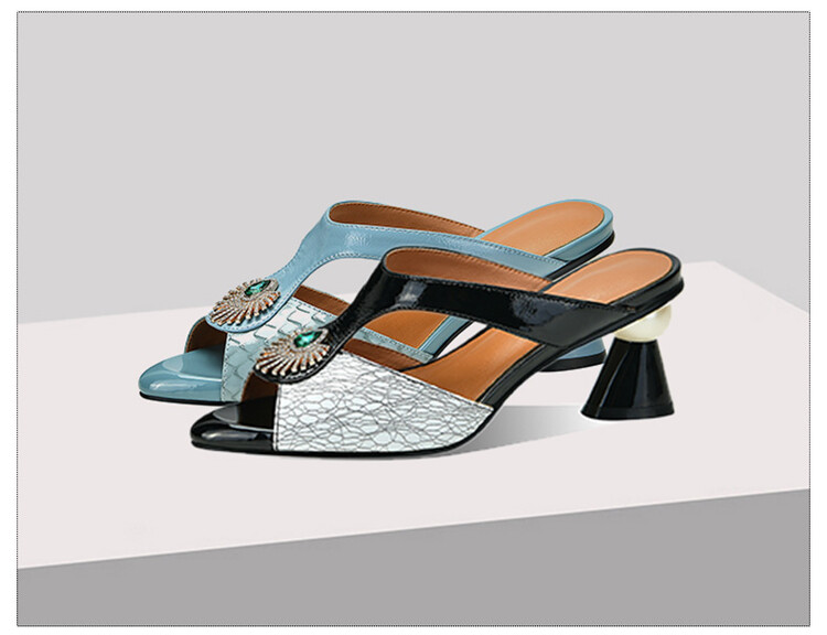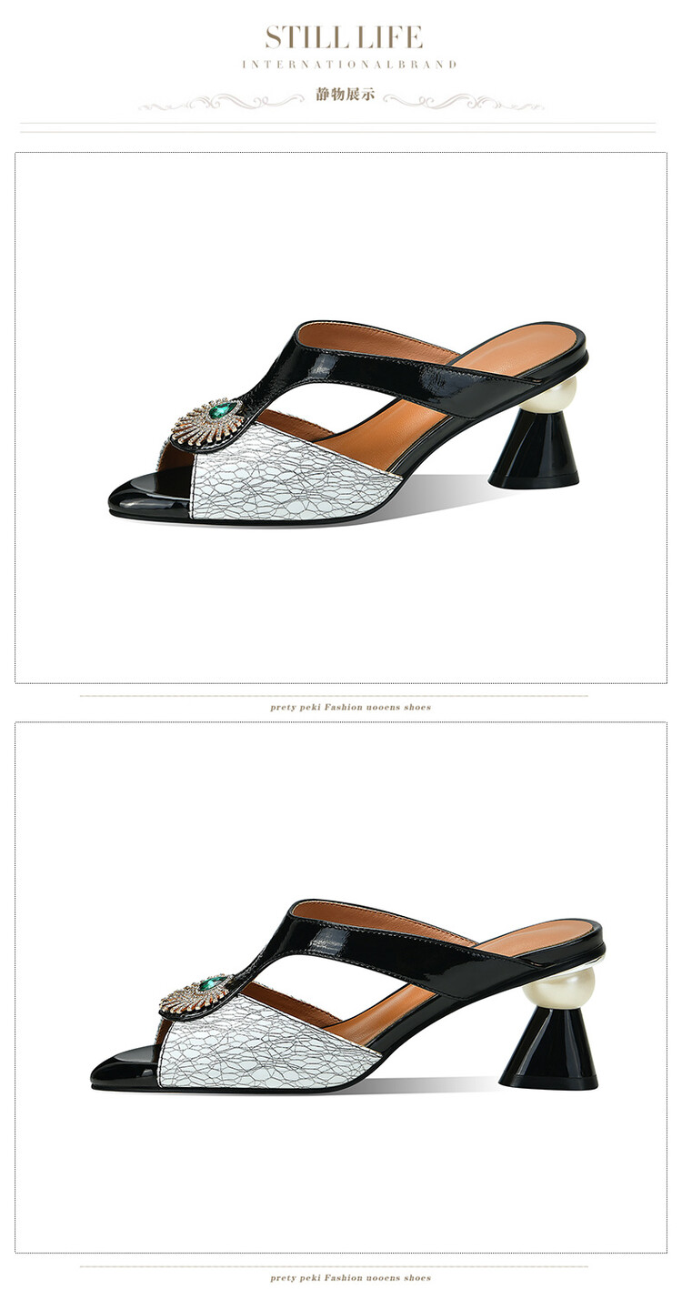 方头异形跟高跟鞋,鱼嘴金属水钻后空凉拖鞋SY-211-s88