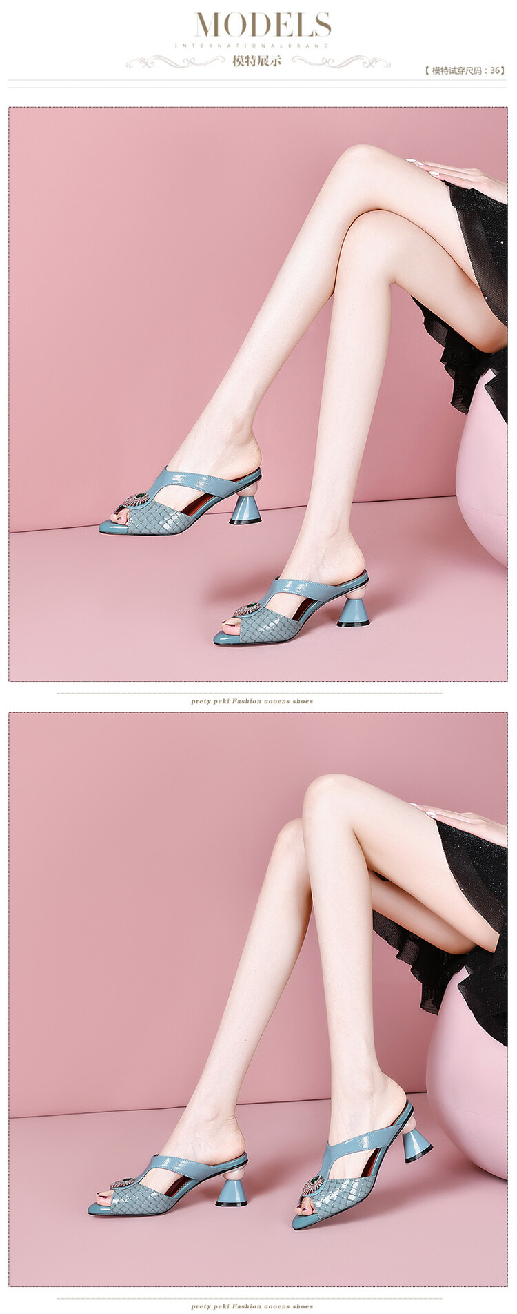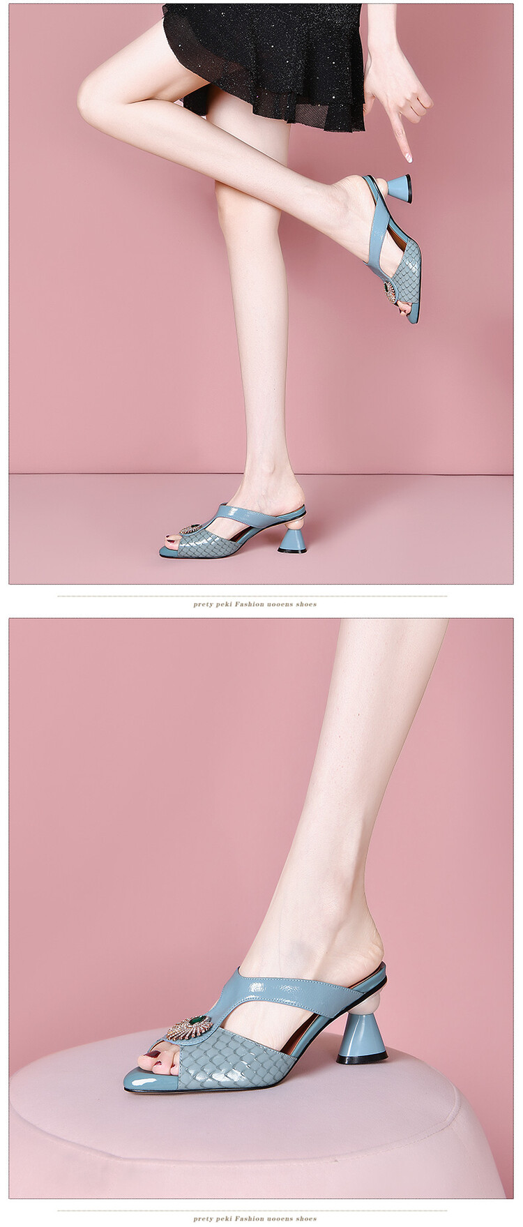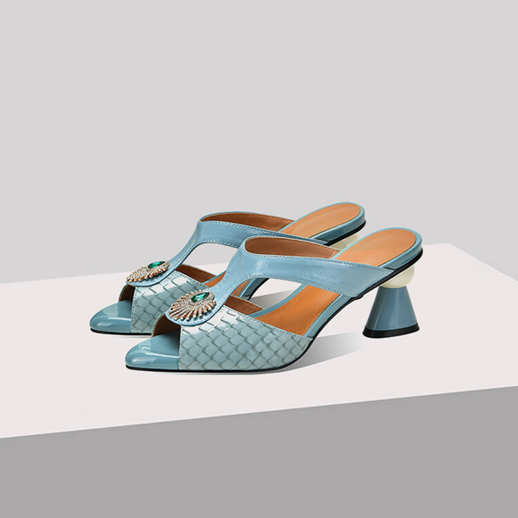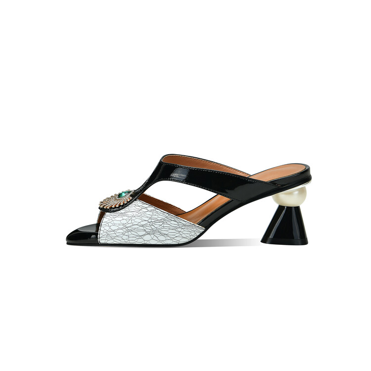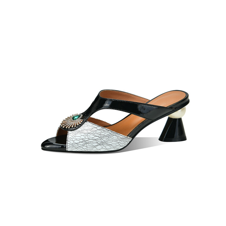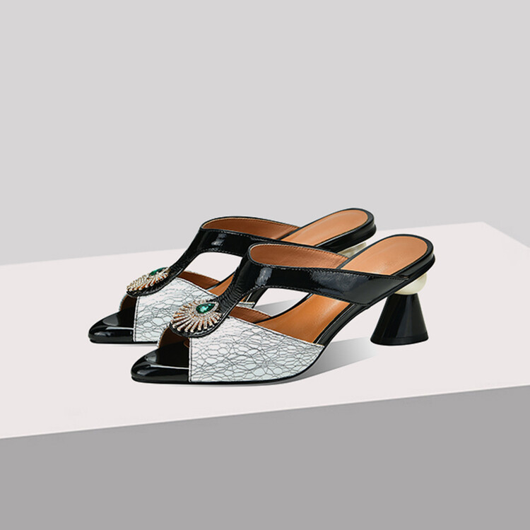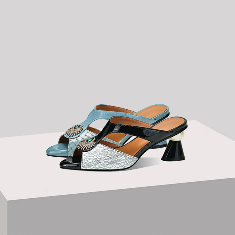 方头异形跟高跟鞋,鱼嘴金属水钻后空凉拖鞋SY-211-s88