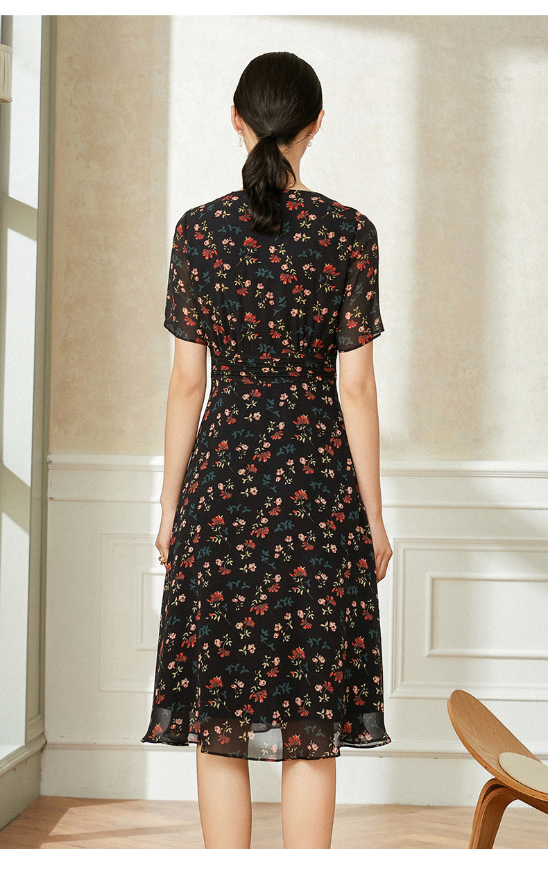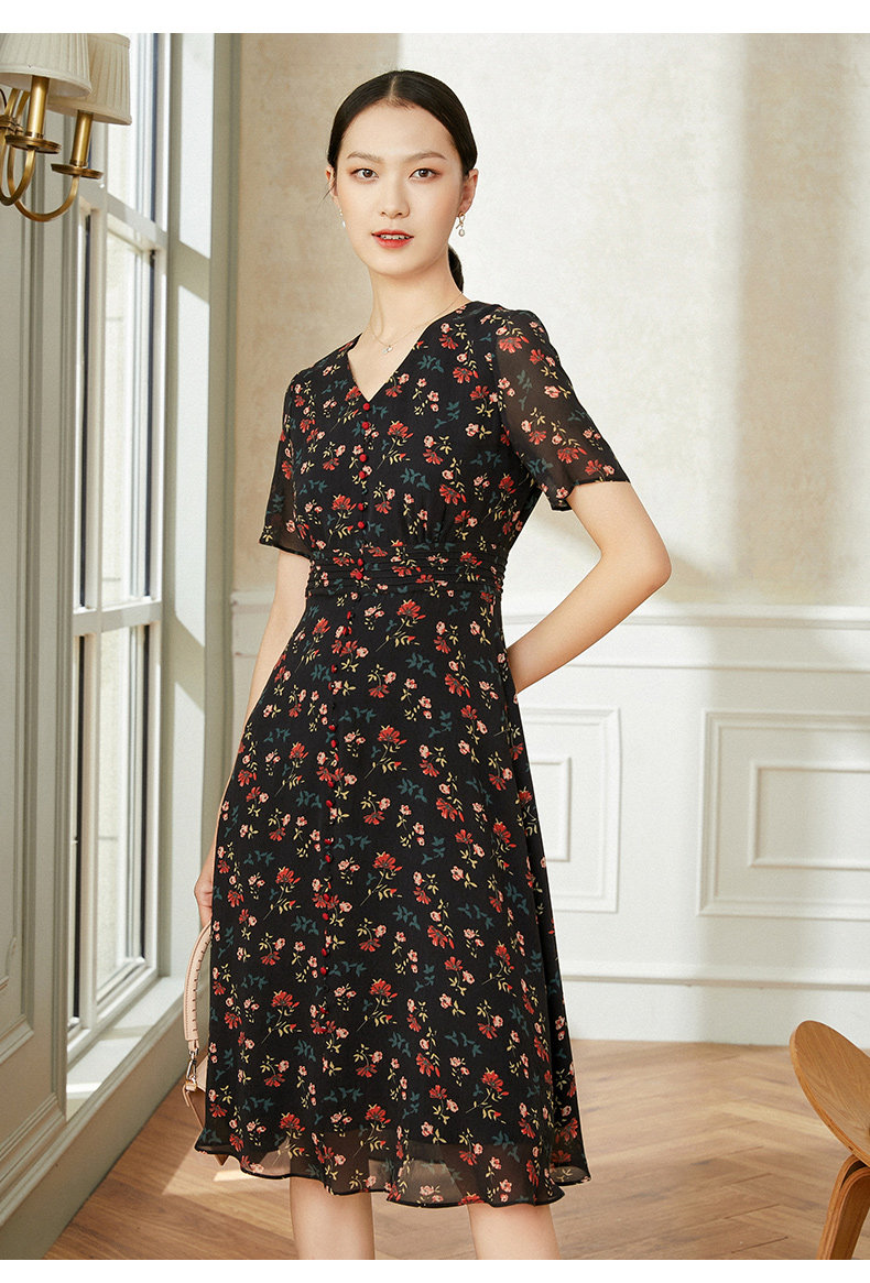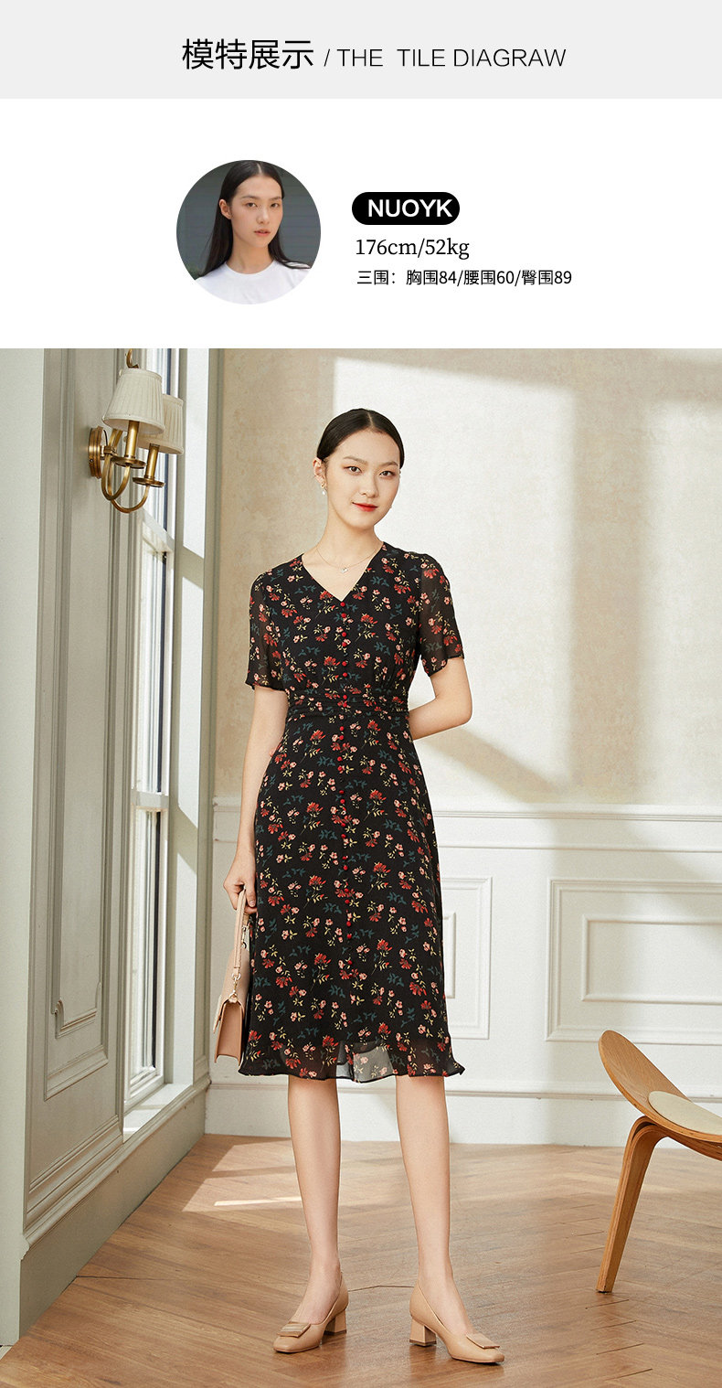 乔万尼新款重磅真丝连衣裙V领收腰显瘦裙EI2E800