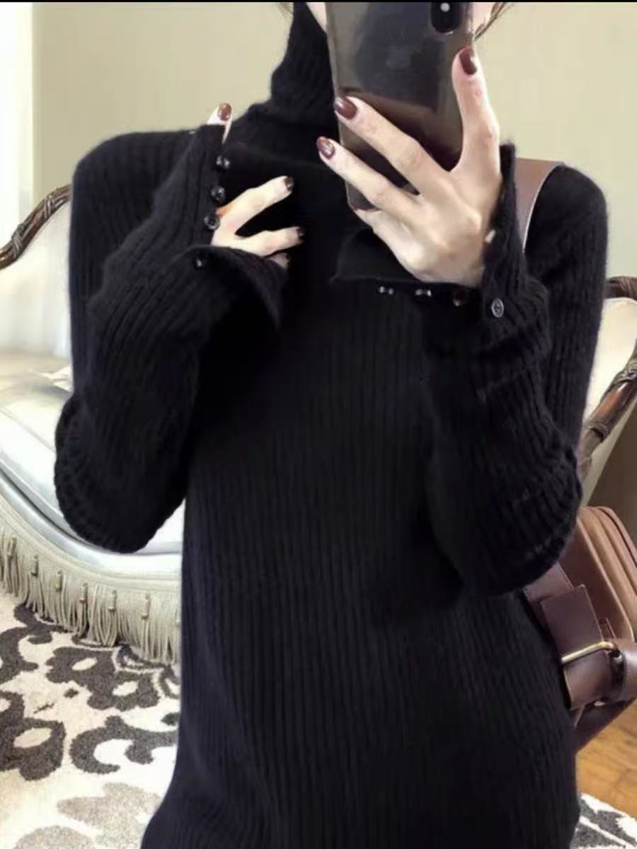 【孤品捡漏】G07 袖口四粒扣黑色针织修身毛衫-喜出