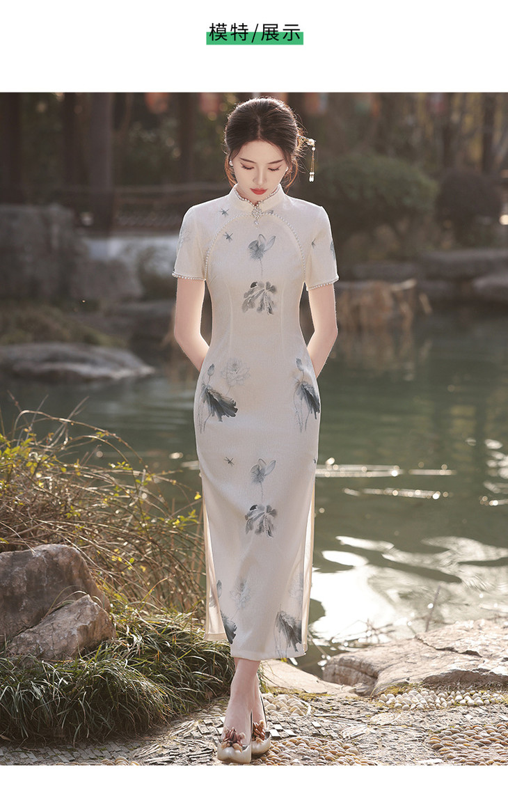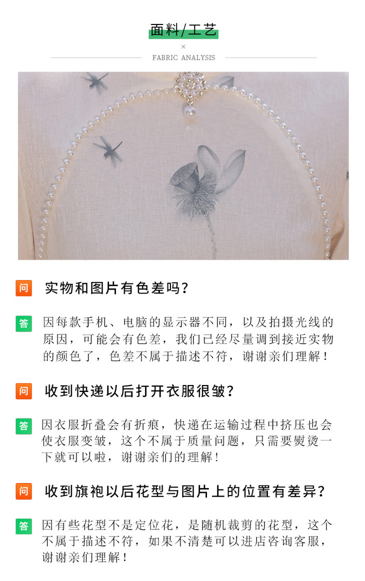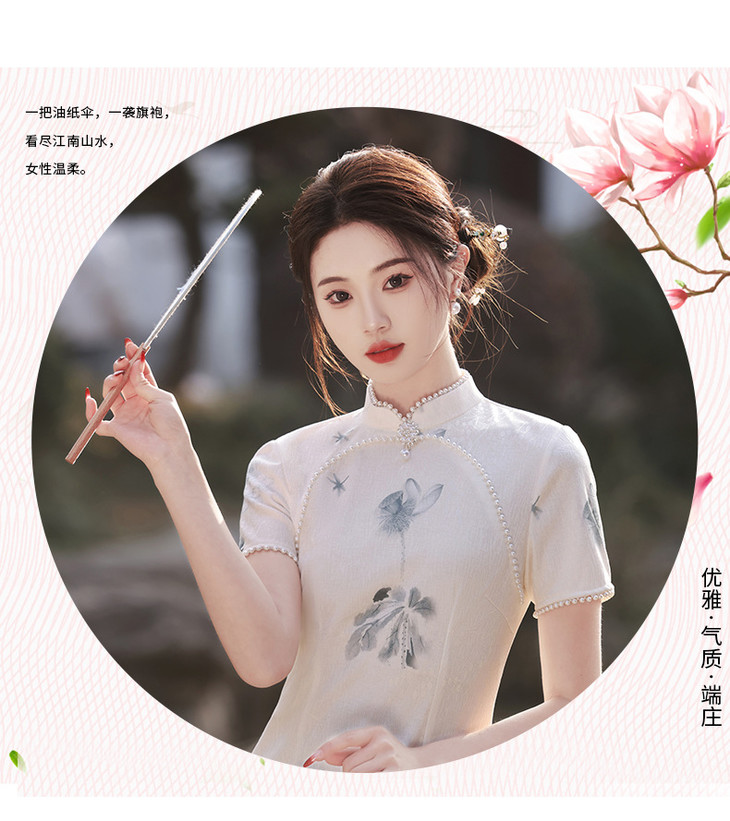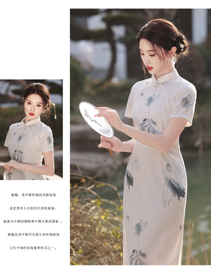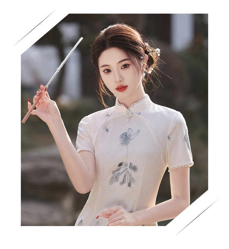 江南水乡手工珠领单层韩国麻复合气质文艺旗袍MLS6887