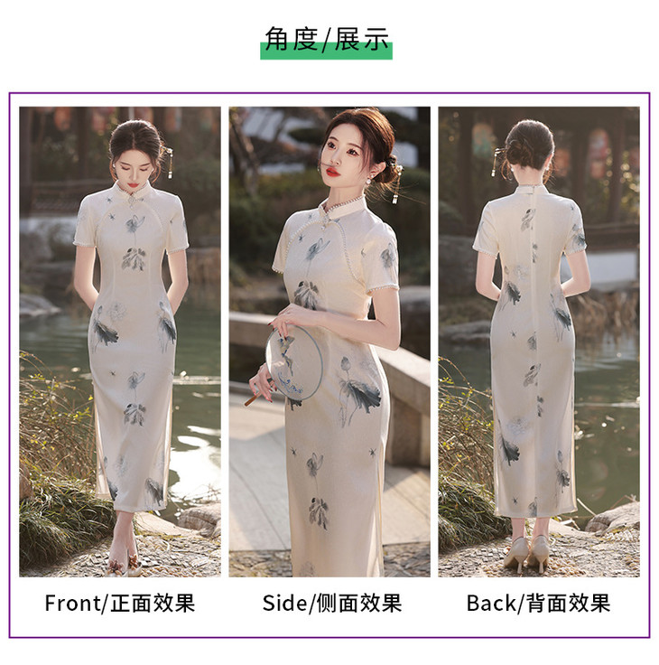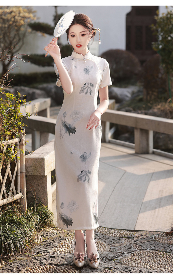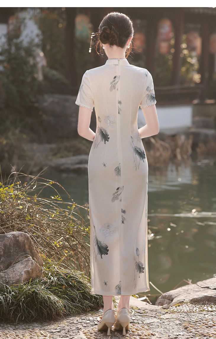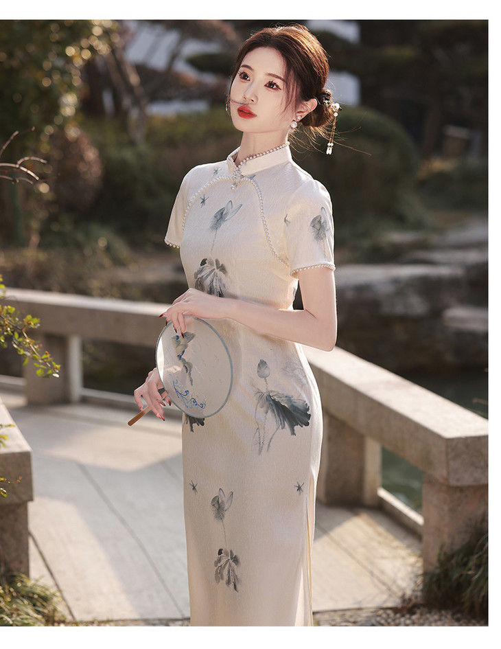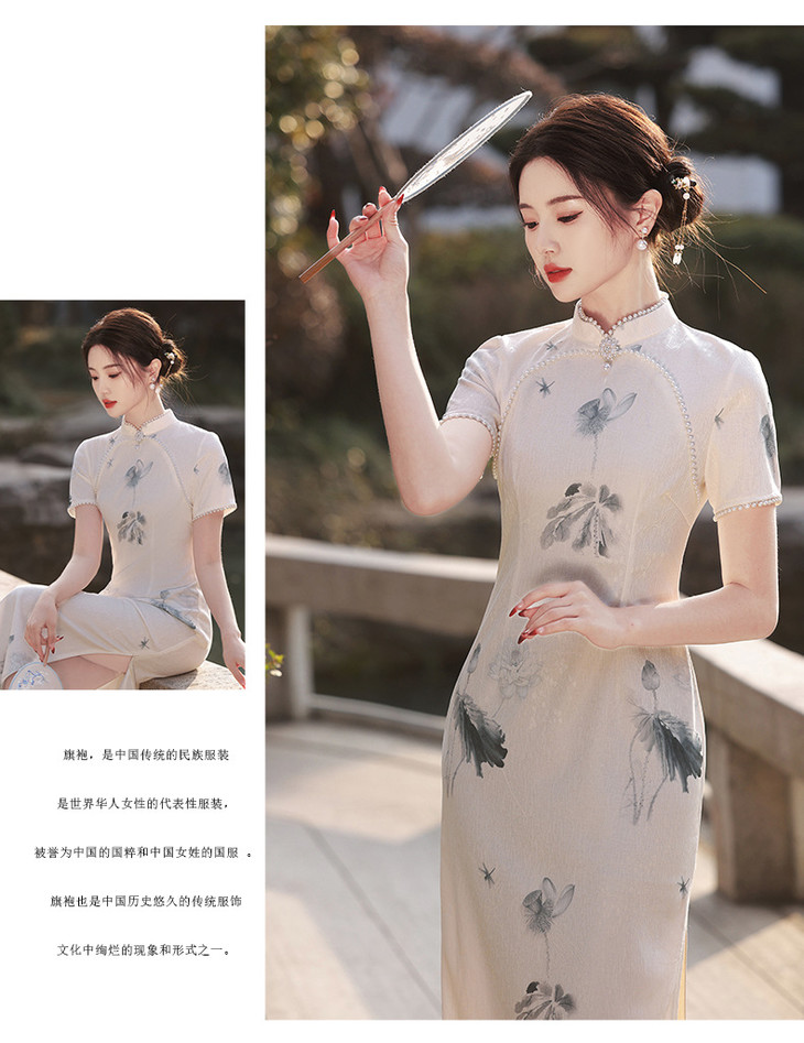江南水乡手工珠领单层韩国麻复合气质文艺旗袍MLS6887