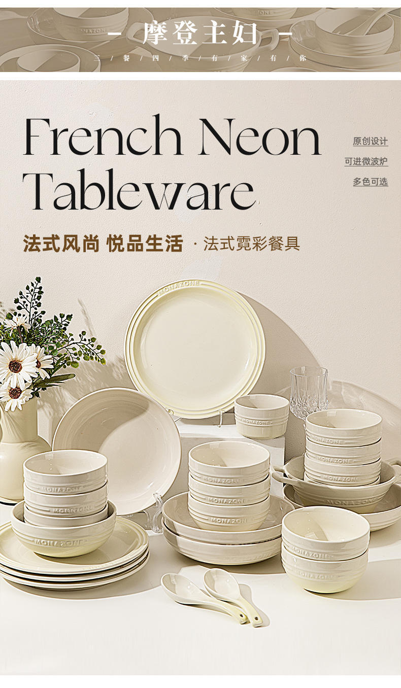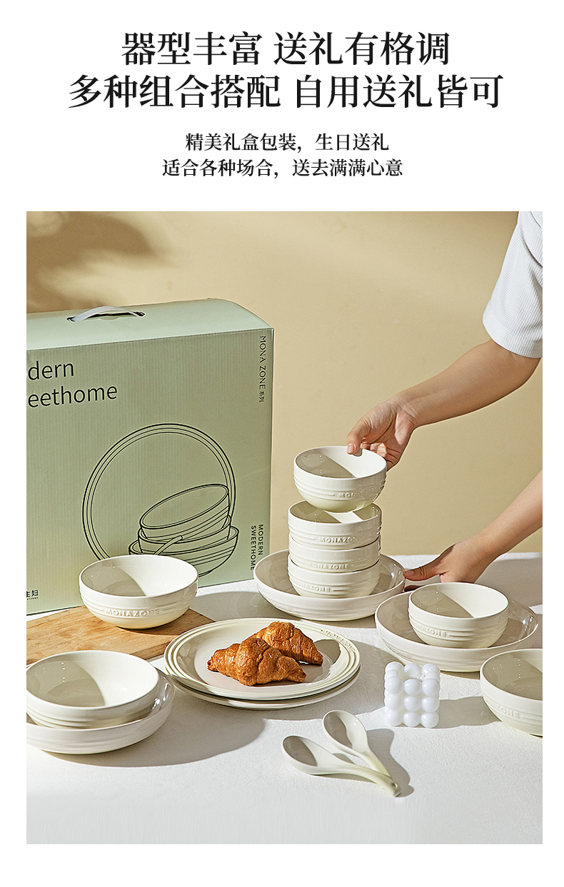 摩登主妇MONAZONE碗碟套装2023新款礼盒乔迁家用陶瓷碗盘筷子餐具