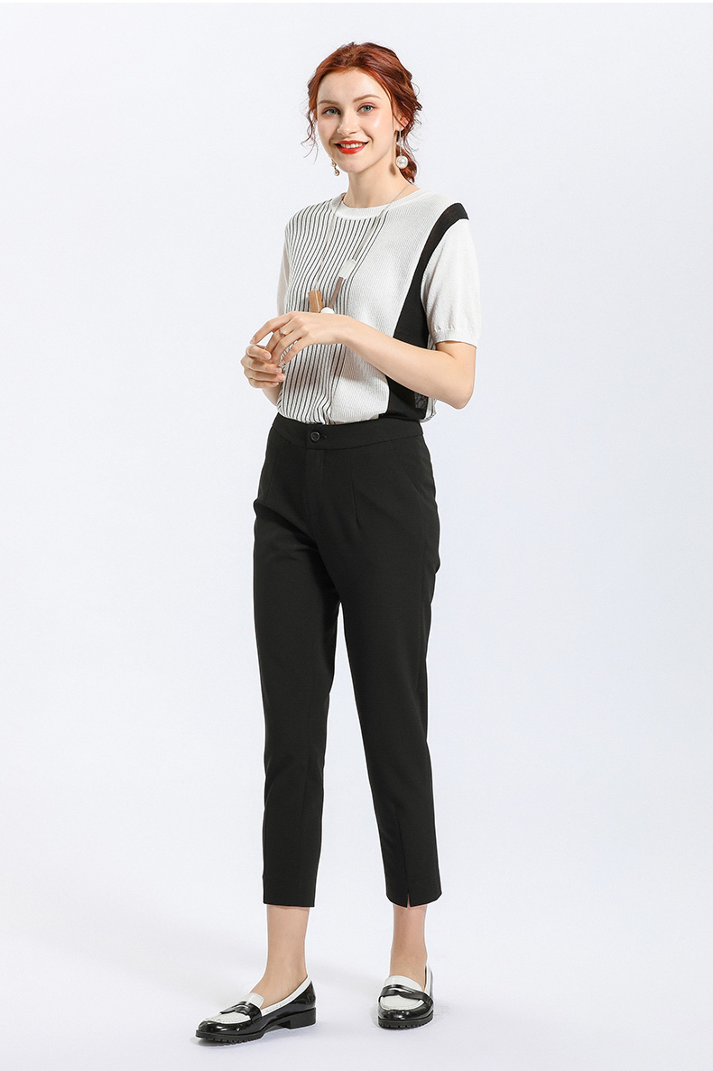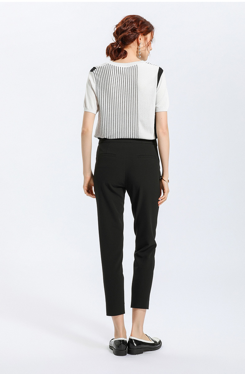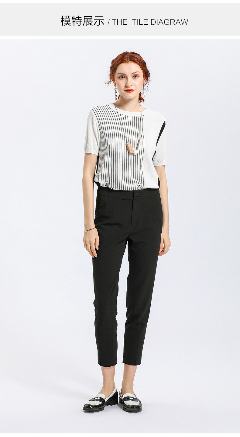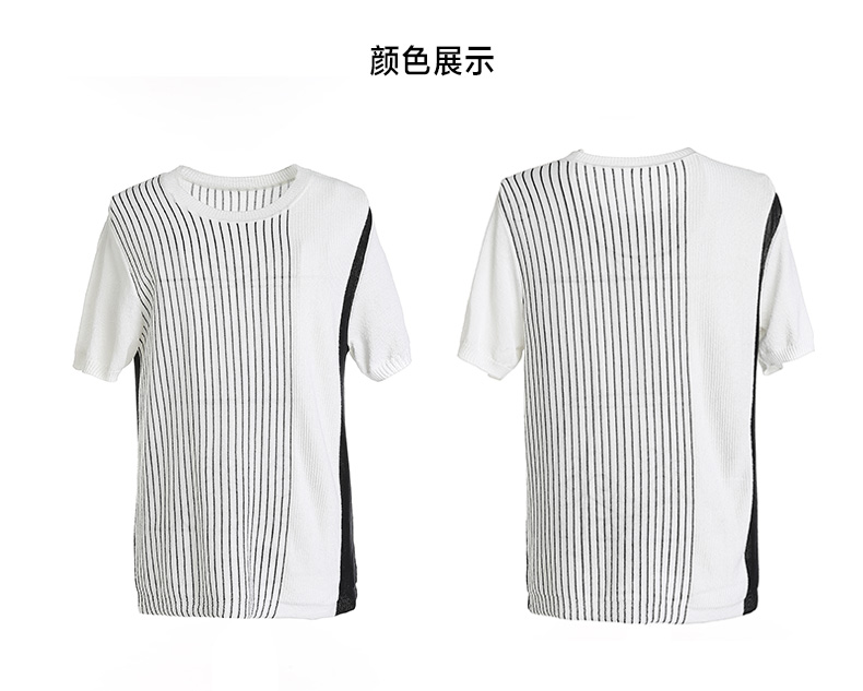 乔万尼夏季时尚条纹宽松直筒气质短款针织短袖女上衣薄款EN2M595