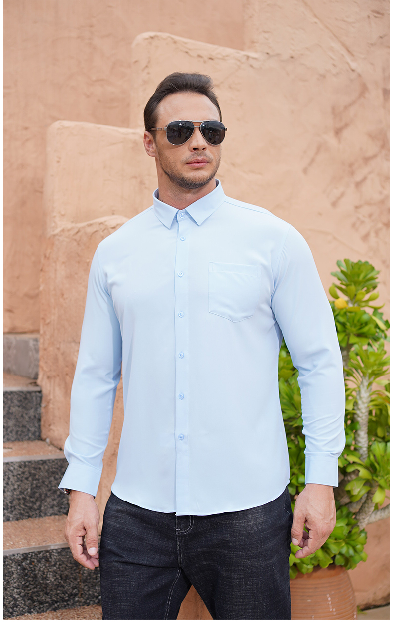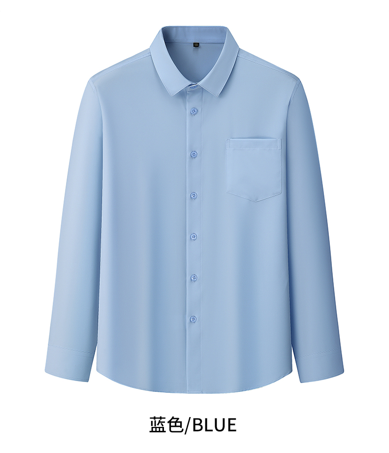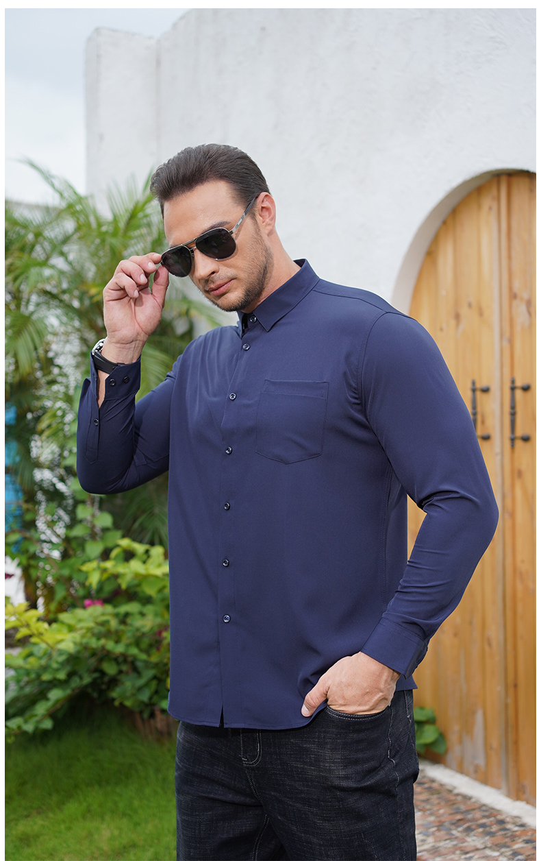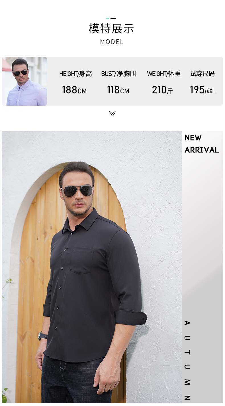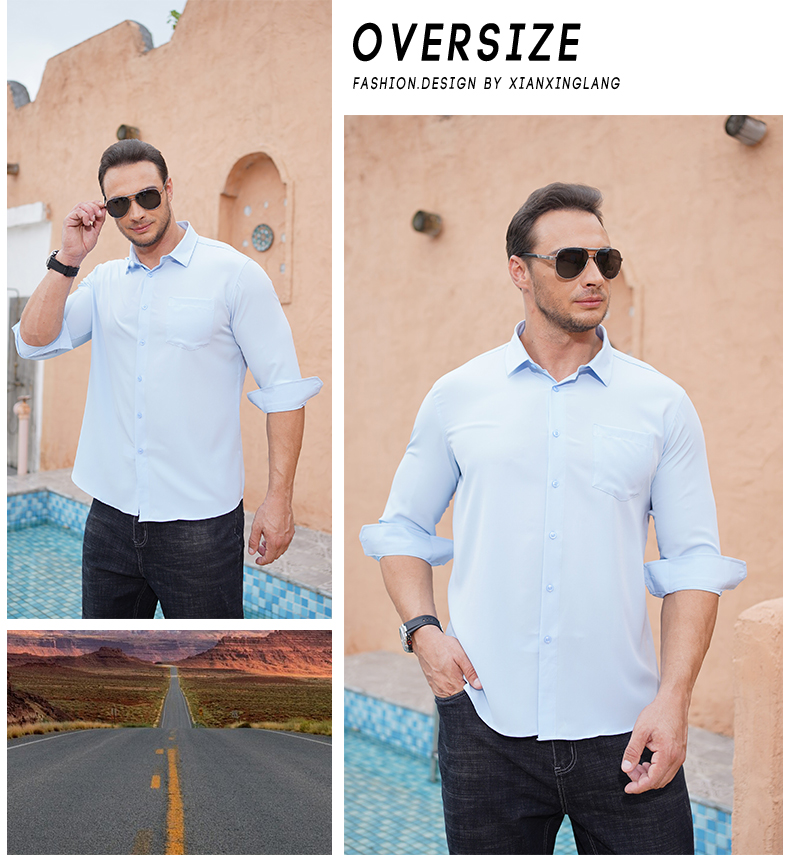 【特大码】【新款DM】大依优型纯色长袖衬衫三防衬衫口袋男宽松加肥加大码男士休闲商务衬衣上衣胖子净版