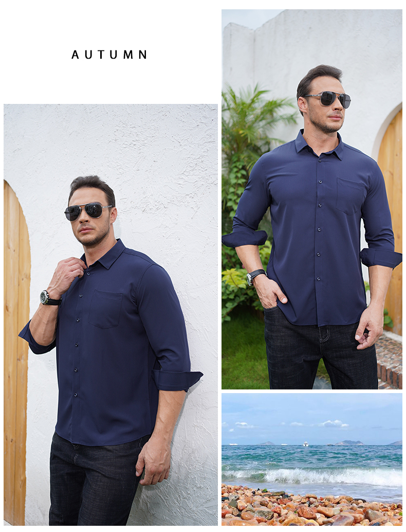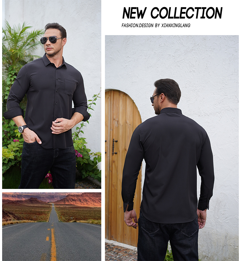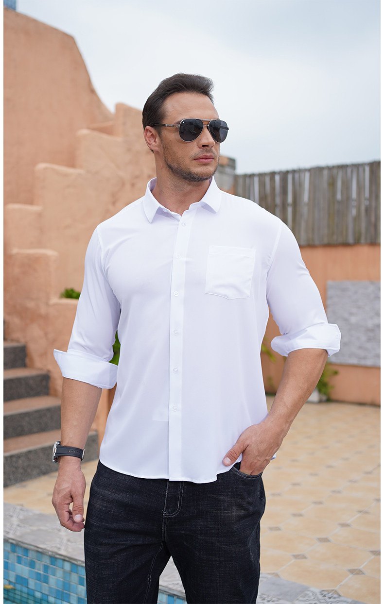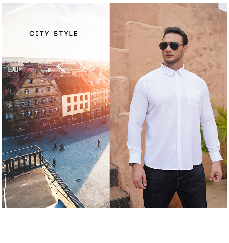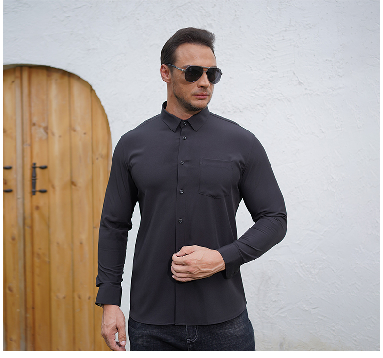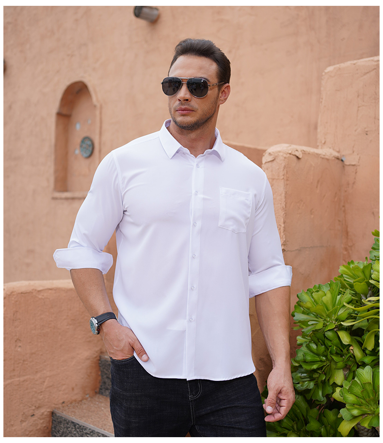 【特大码】【新款DM】大依优型纯色长袖衬衫三防衬衫口袋男宽松加肥加大码男士休闲商务衬衣上衣胖子净版