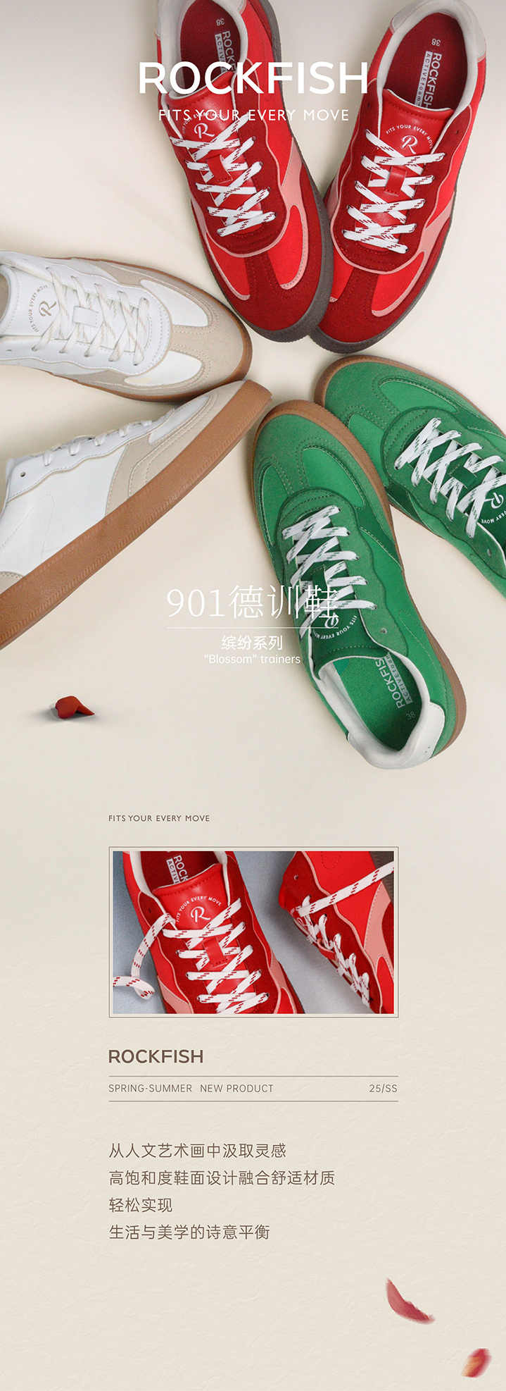 Rockfish 英国901缤纷系列薄底德训鞋四季百搭复古休闲运动板鞋