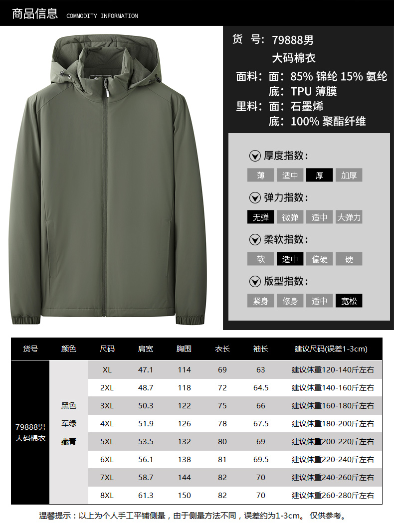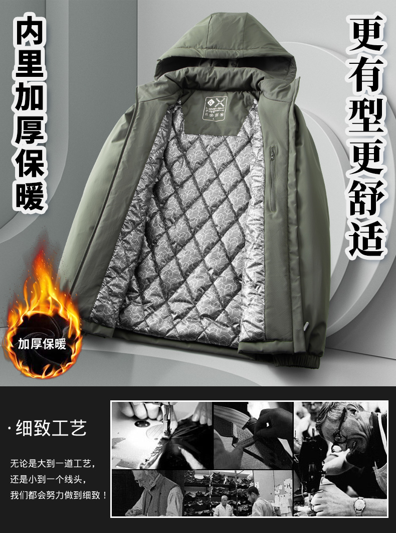 【可拆卸帽】【新款DZP】大依优型大码男装连帽棉衣棉服夹克加肥加大休闲夹克胖子外套上衣