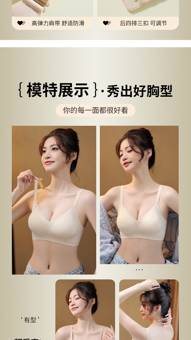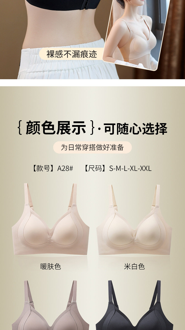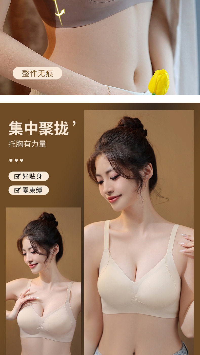 SDE-A28# 果冻软支撑一体式全固定手掌杯内衣女聚拢提拉无钢圈文胸(单件)