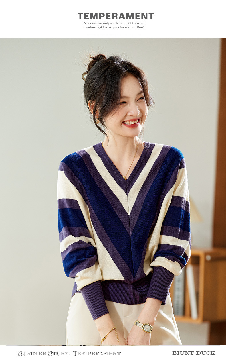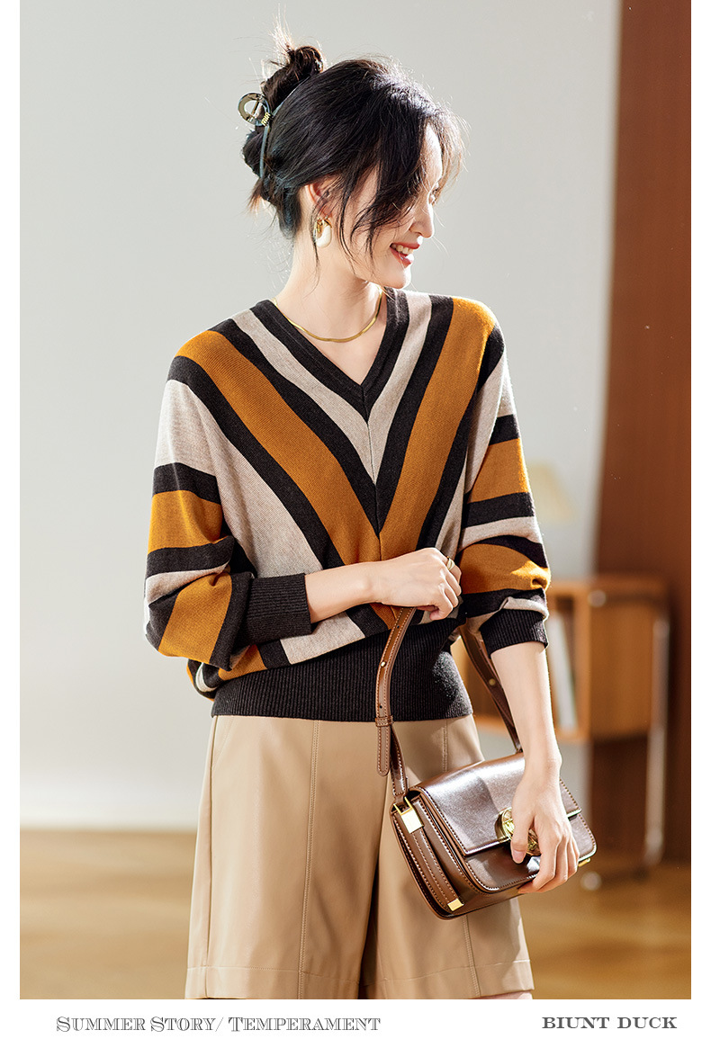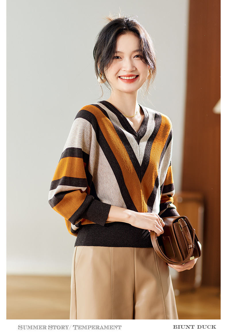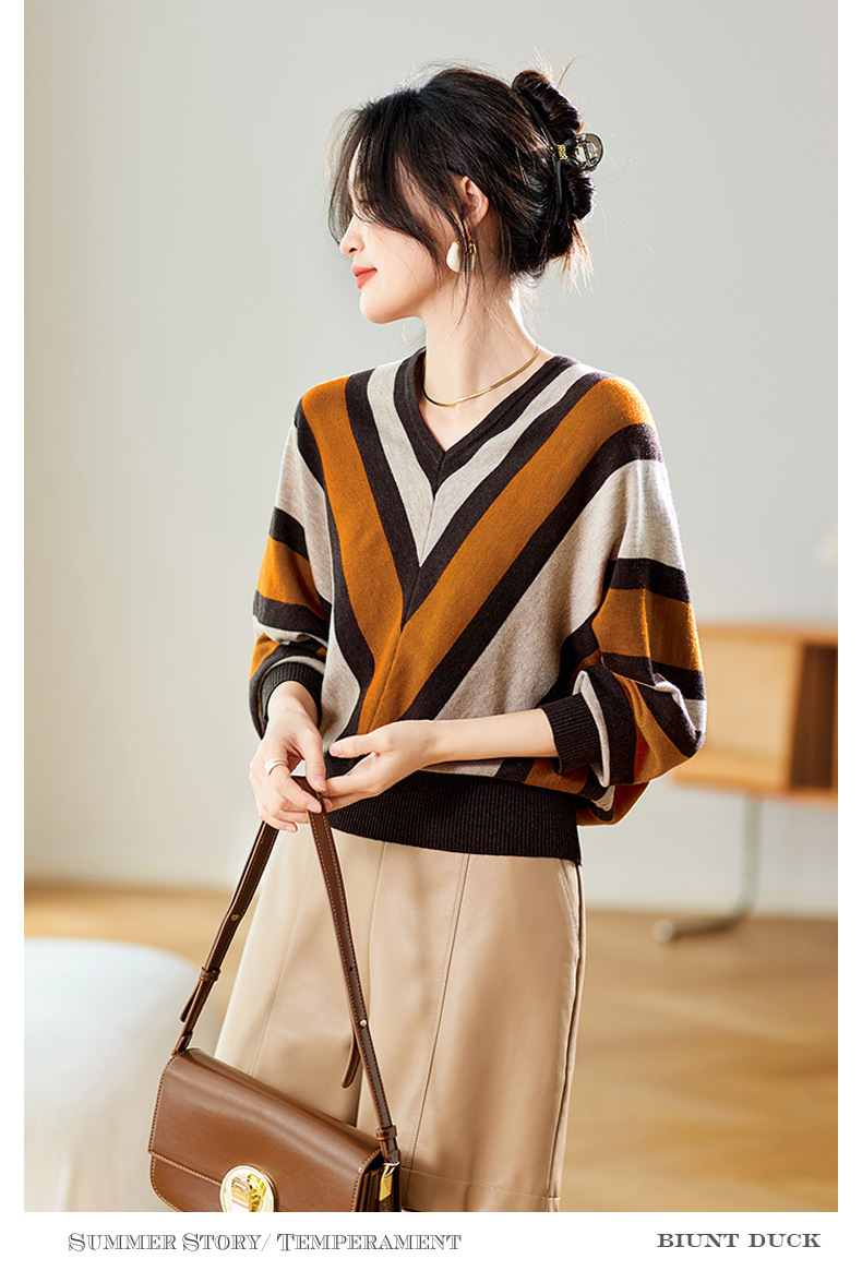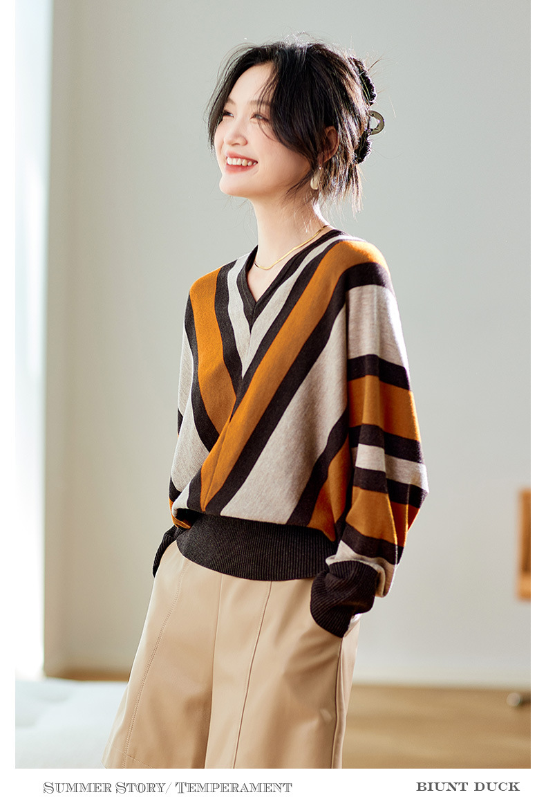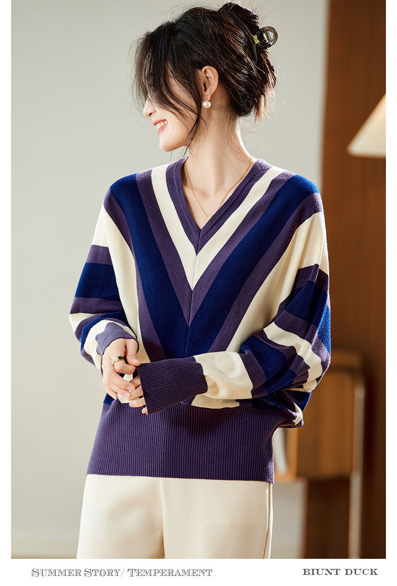 CC SD2603蝙蝠袖毛衣针织衫条纹遮肚洋气减龄上衣