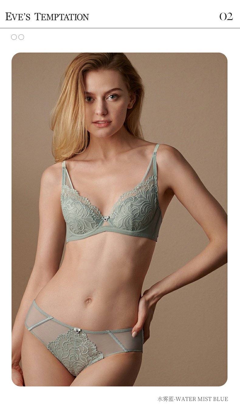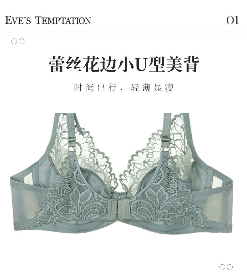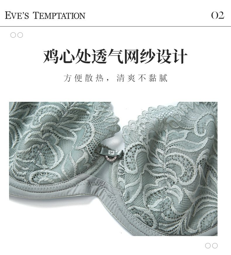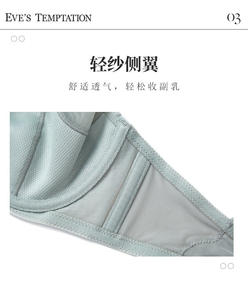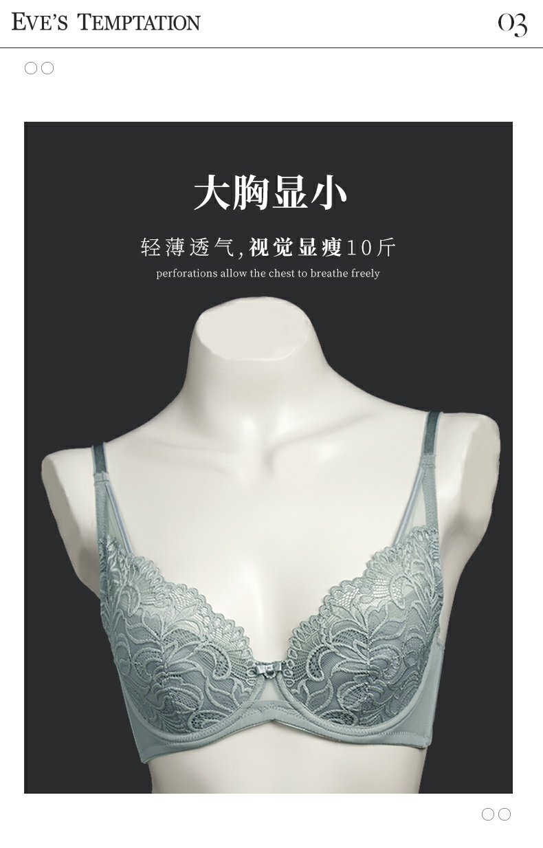 夏娃的诱惑浥轻尘组内衣女夏季薄款软钢圈大胸显小蕾丝性感文胸上托防下垂