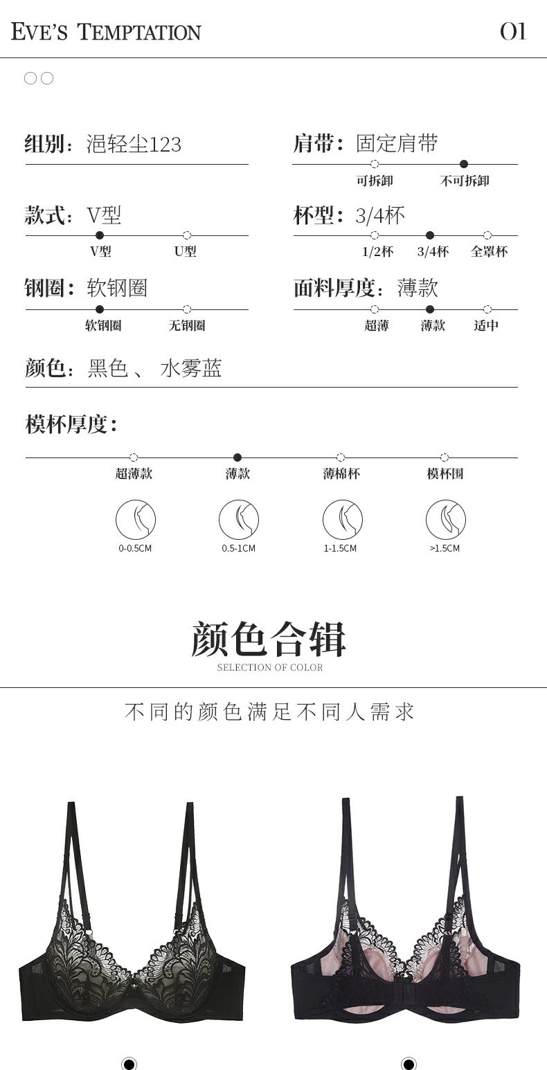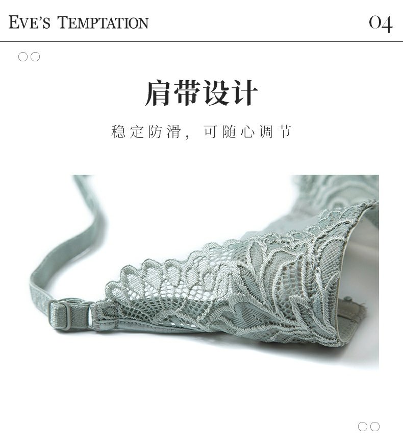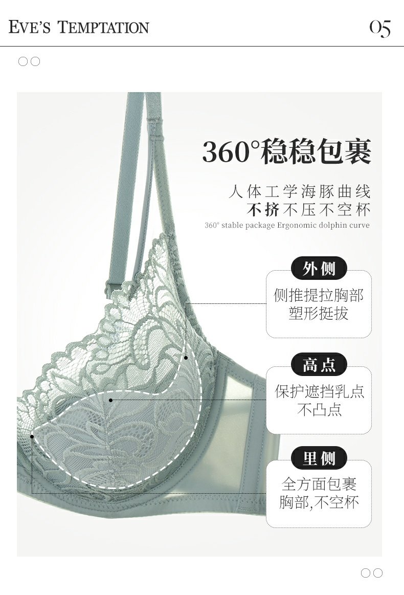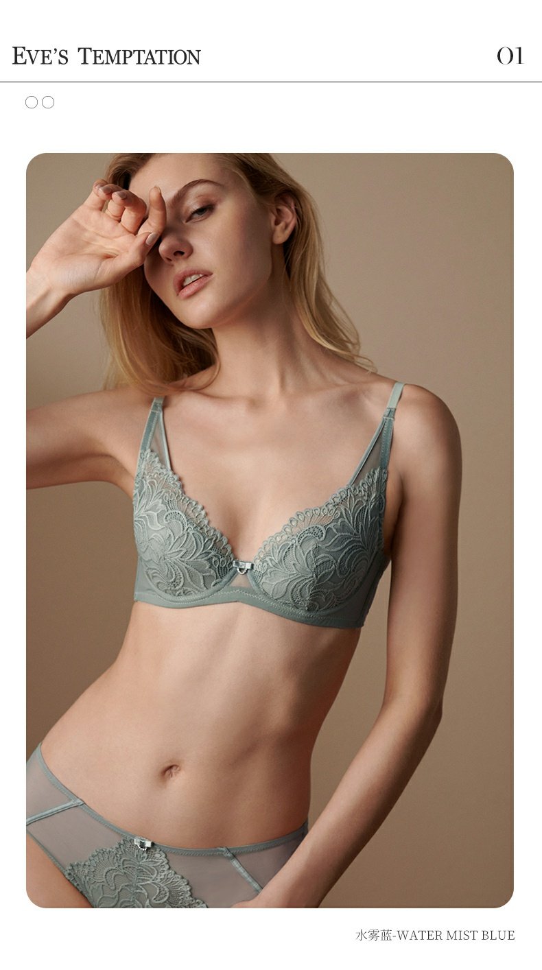 夏娃的诱惑浥轻尘组内衣女夏季薄款软钢圈大胸显小蕾丝性感文胸上托防下垂