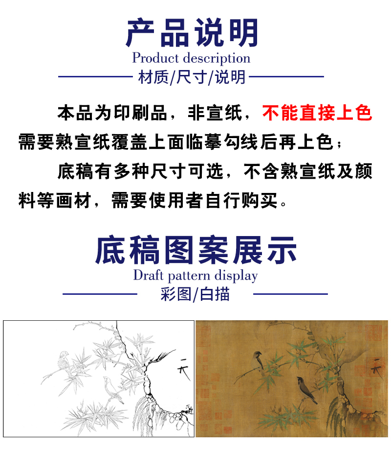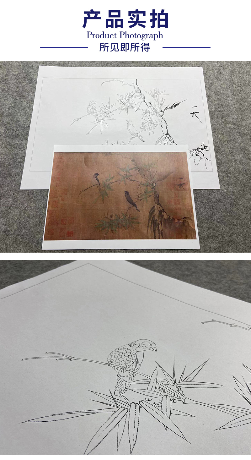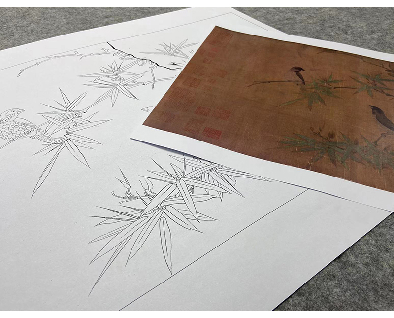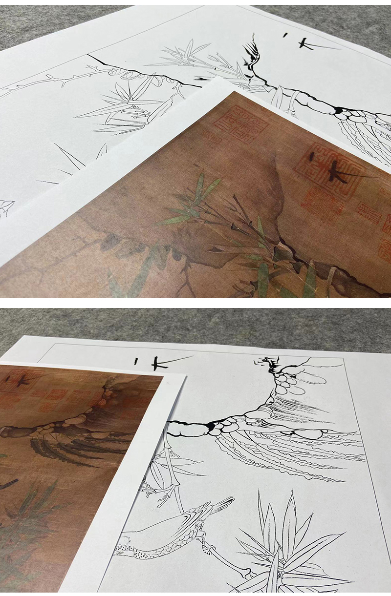 赵佶工笔画白描底稿竹子小品《竹禽图》临摹勾线高清打印稿YL30