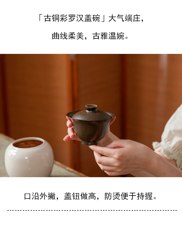 茶香记 李现锋 古铜彩罗汉盖碗 柴烧 古雅温婉 沉稳耐看 防烫实用
