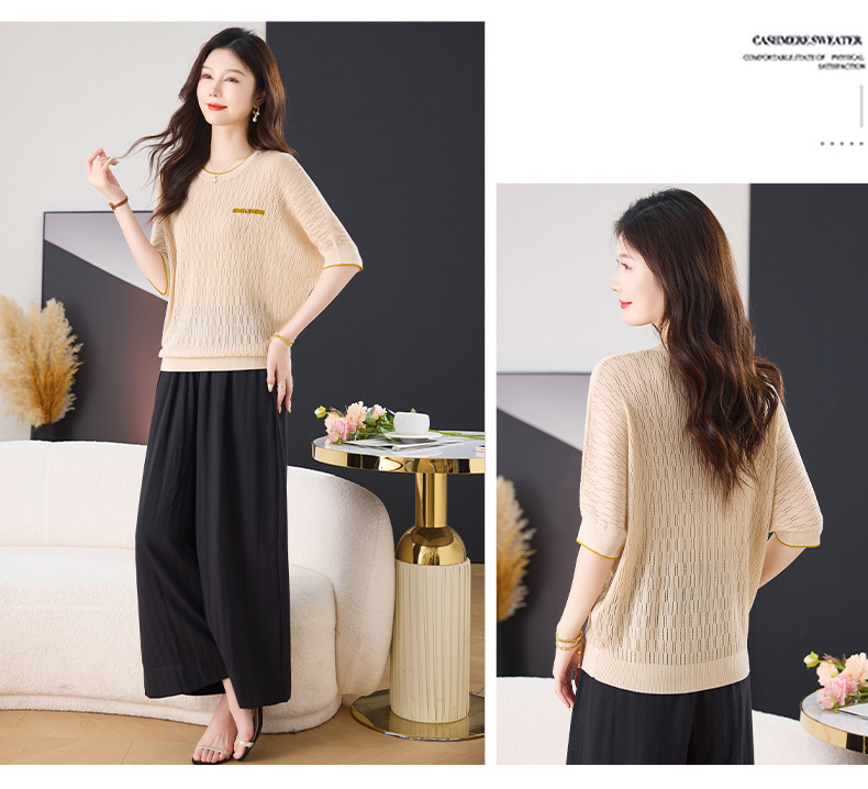 CC37-3006上衣裤子两件套秋季新款中老年妈妈打底衫薄款洋气大码针织衫显瘦