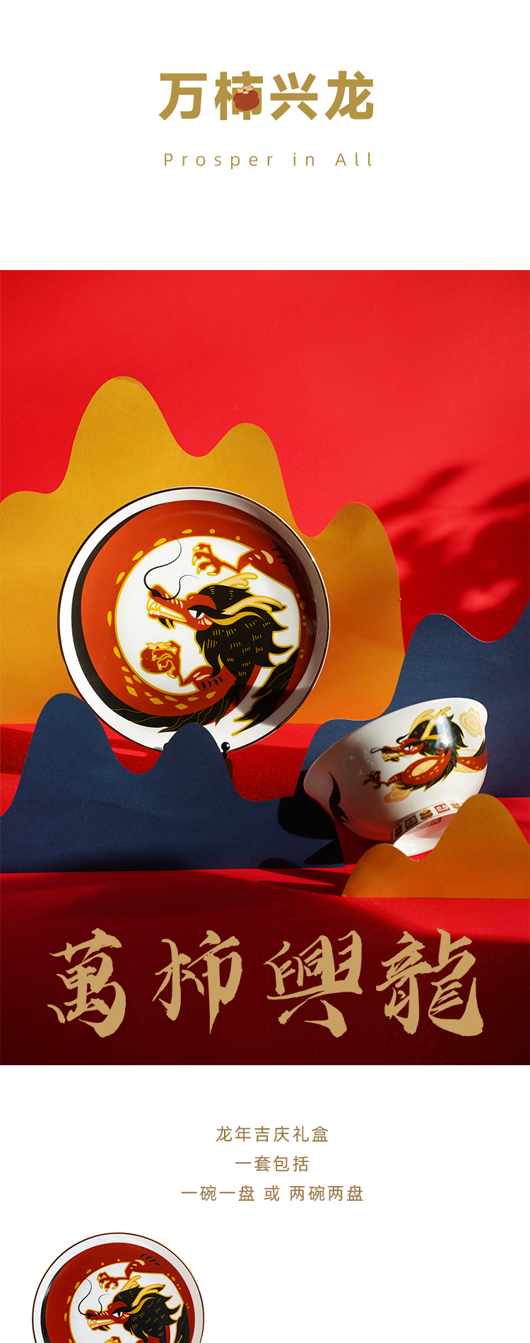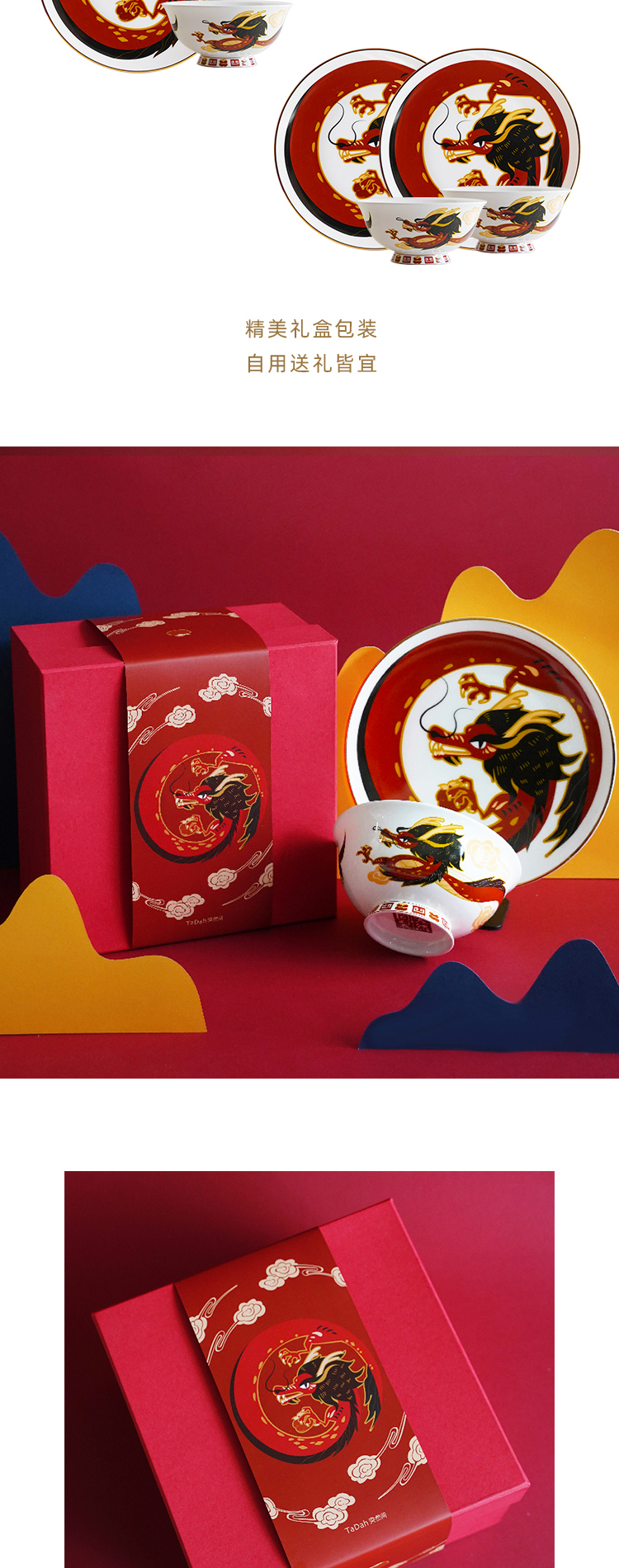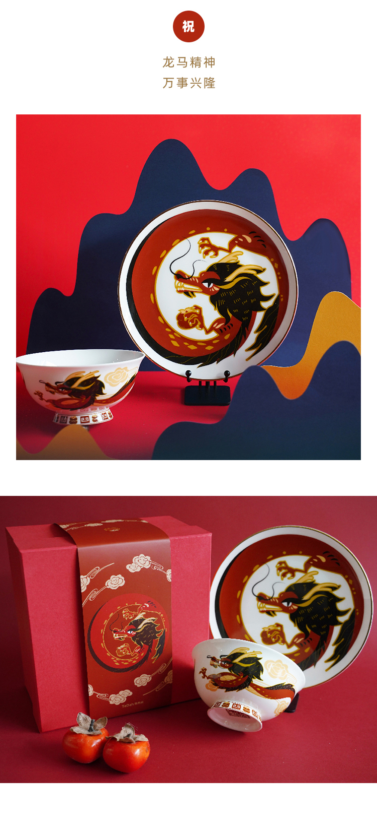 TaDah龙年国风骨瓷餐具餐盘餐碗礼盒春节拜年本命年礼