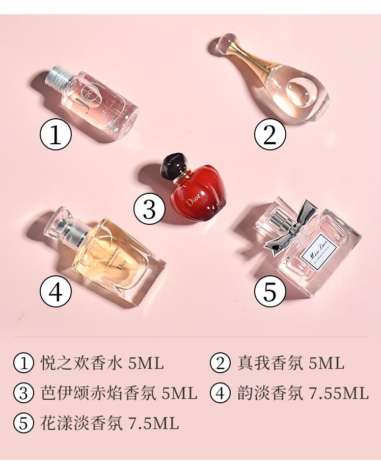 Dior迪奥城堡香水五件套 真我5ml+甜心7.5ml+悦之欢5ml+巴颂伊5ml+迪奥之韵7.5ml香港直邮