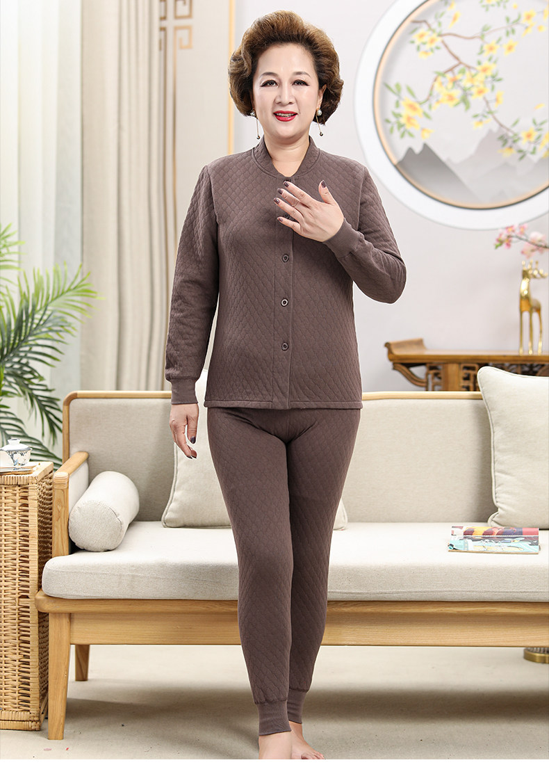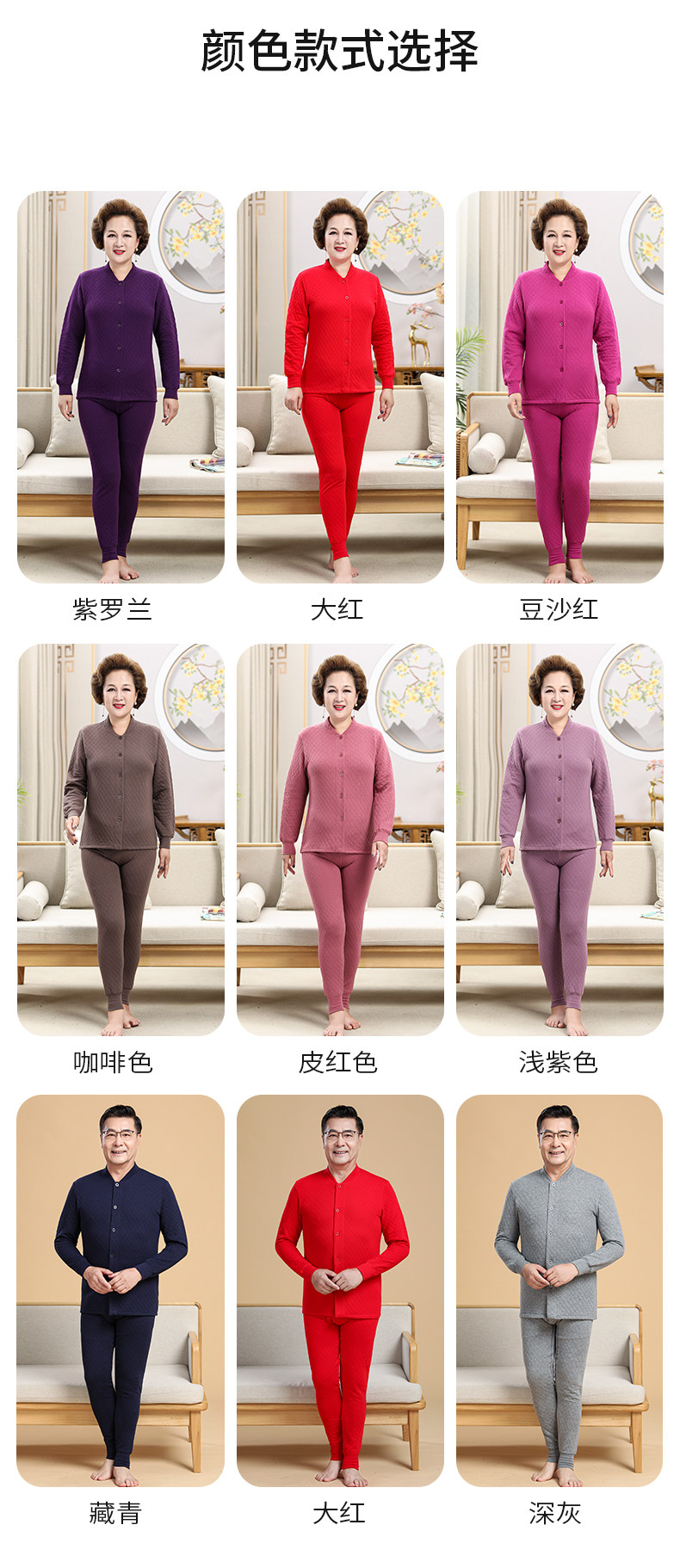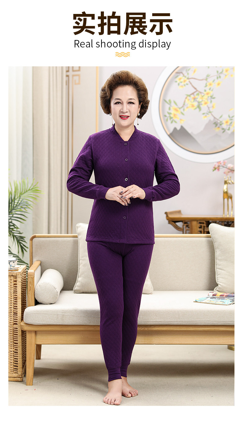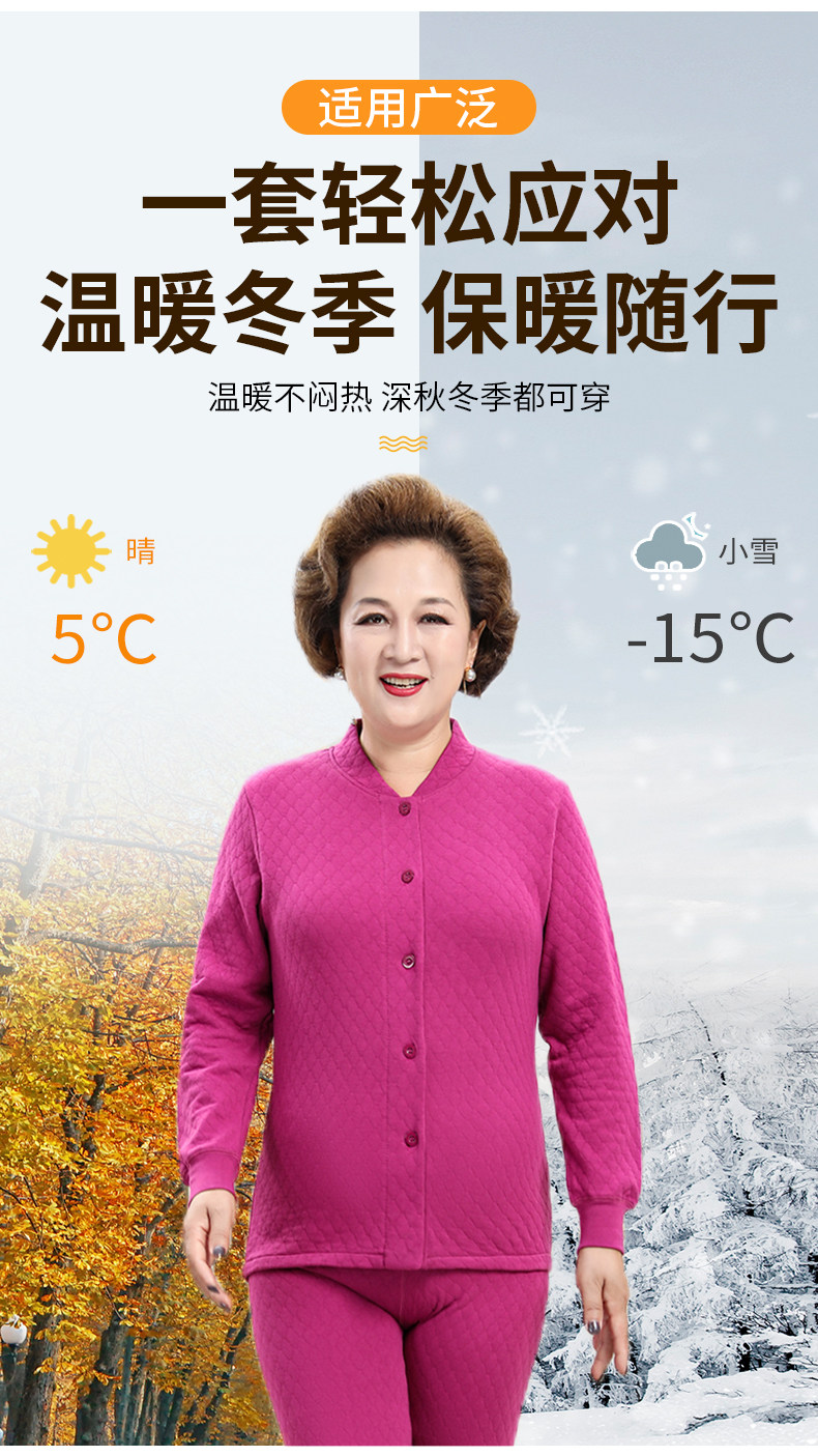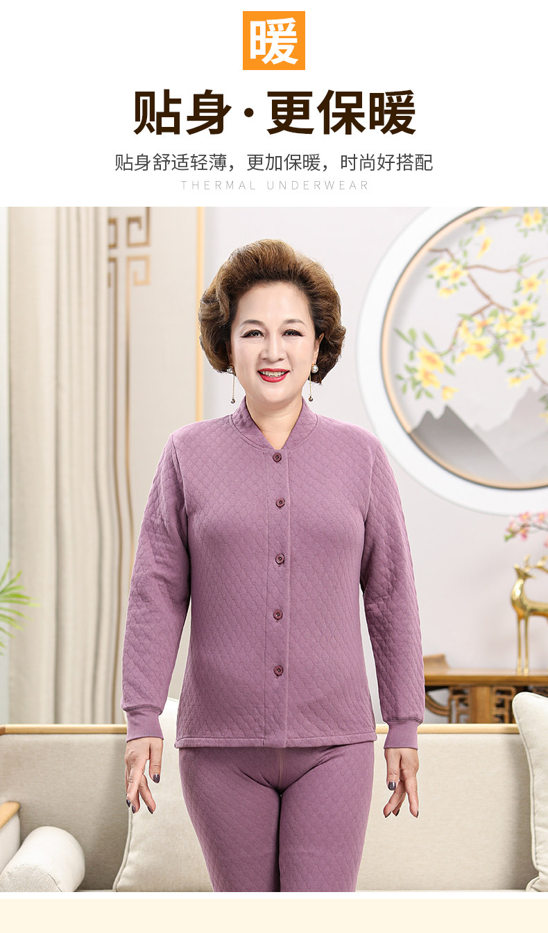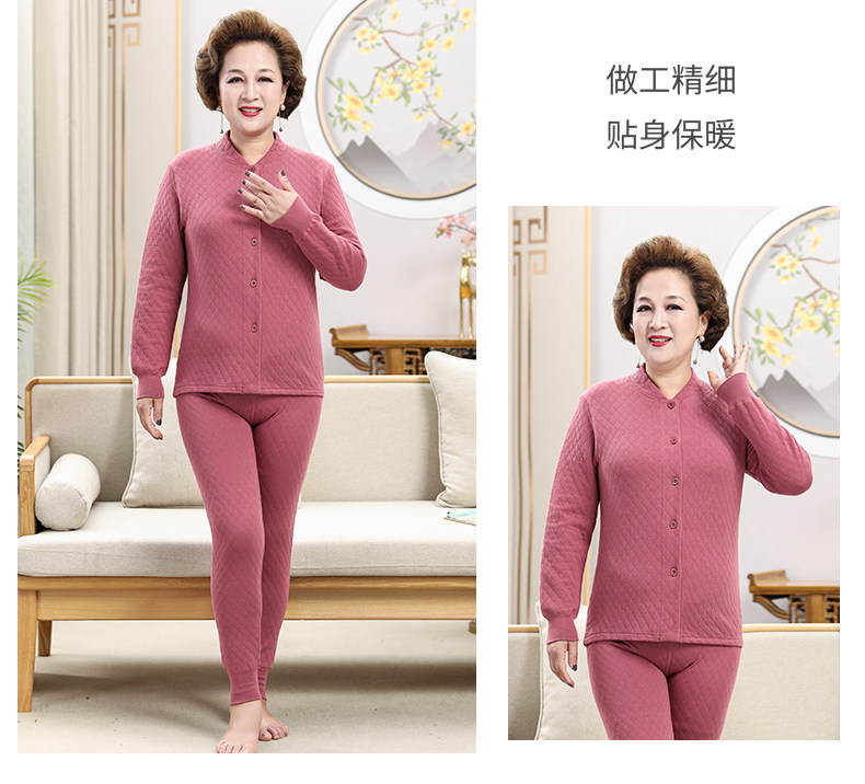 中老年女士保暖内衣妈妈套装开衫对襟三层夹棉秋衣秋裤