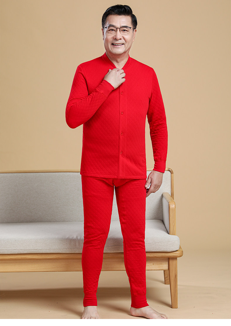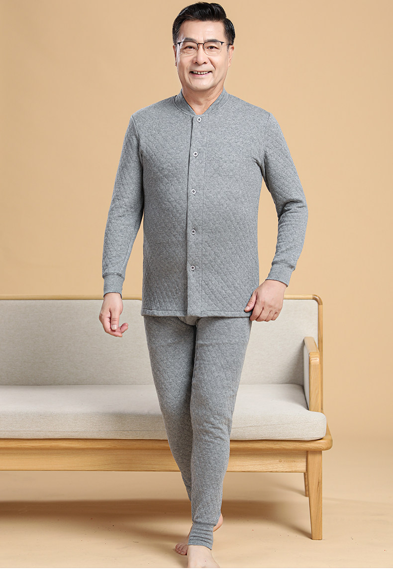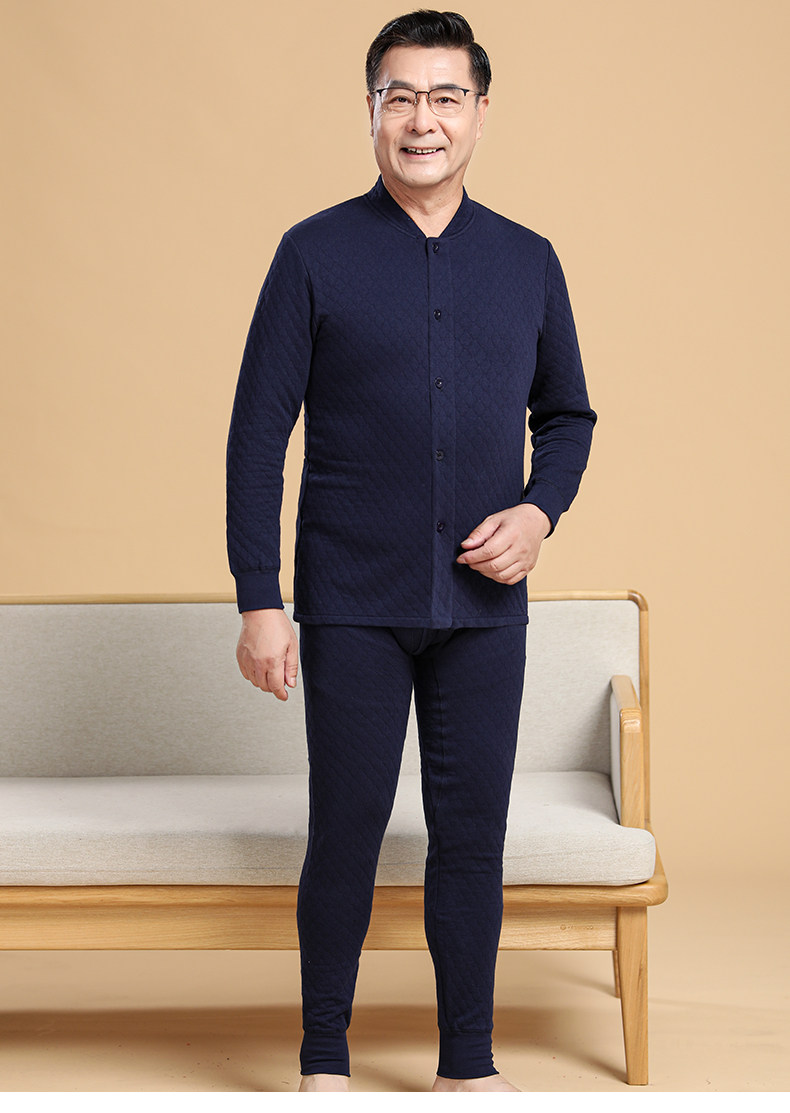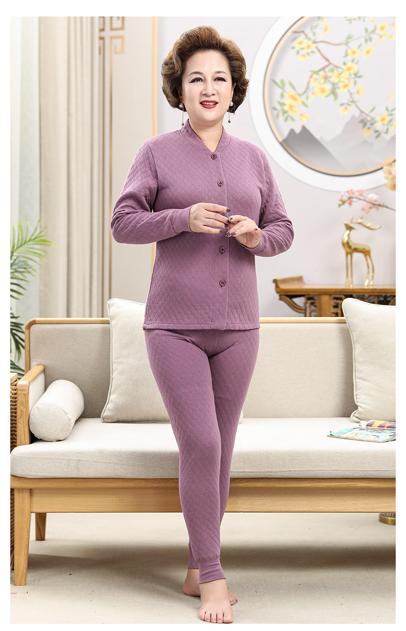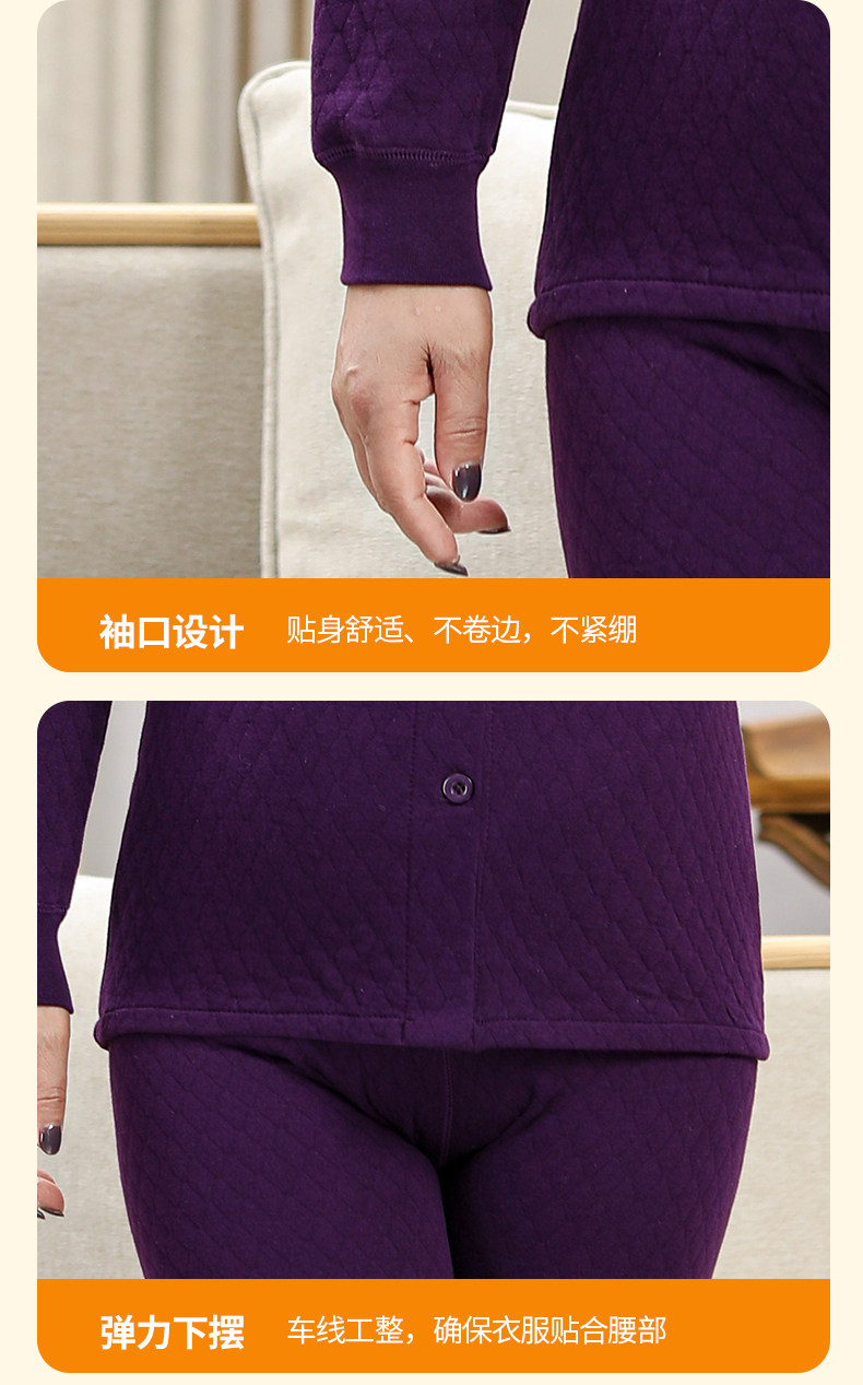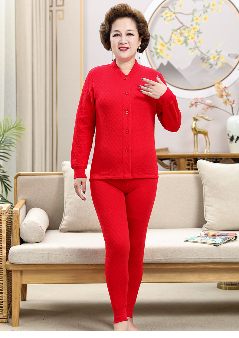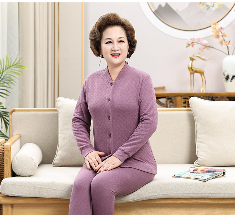 中老年女士保暖内衣妈妈套装开衫对襟三层夹棉秋衣秋裤