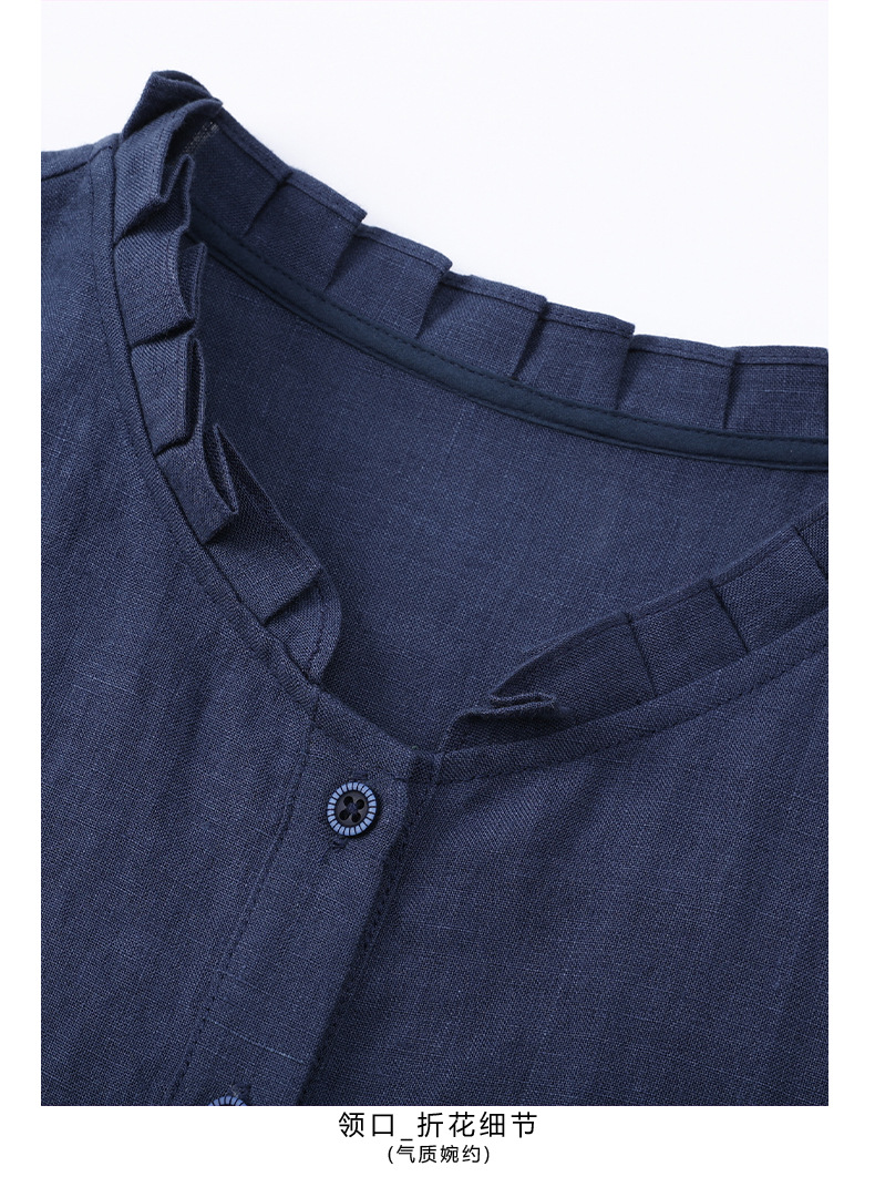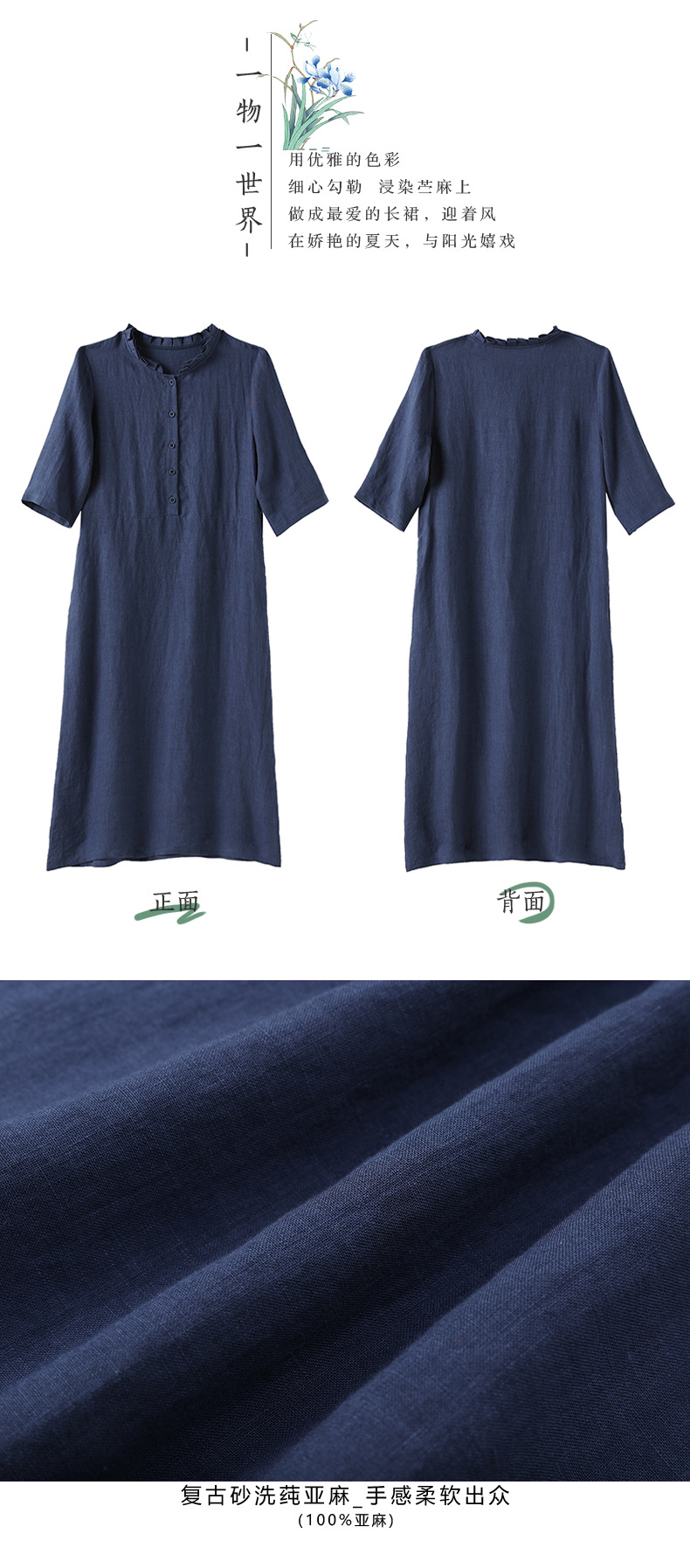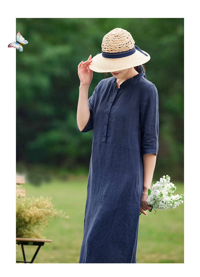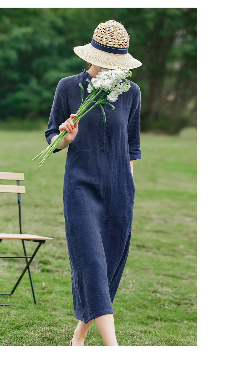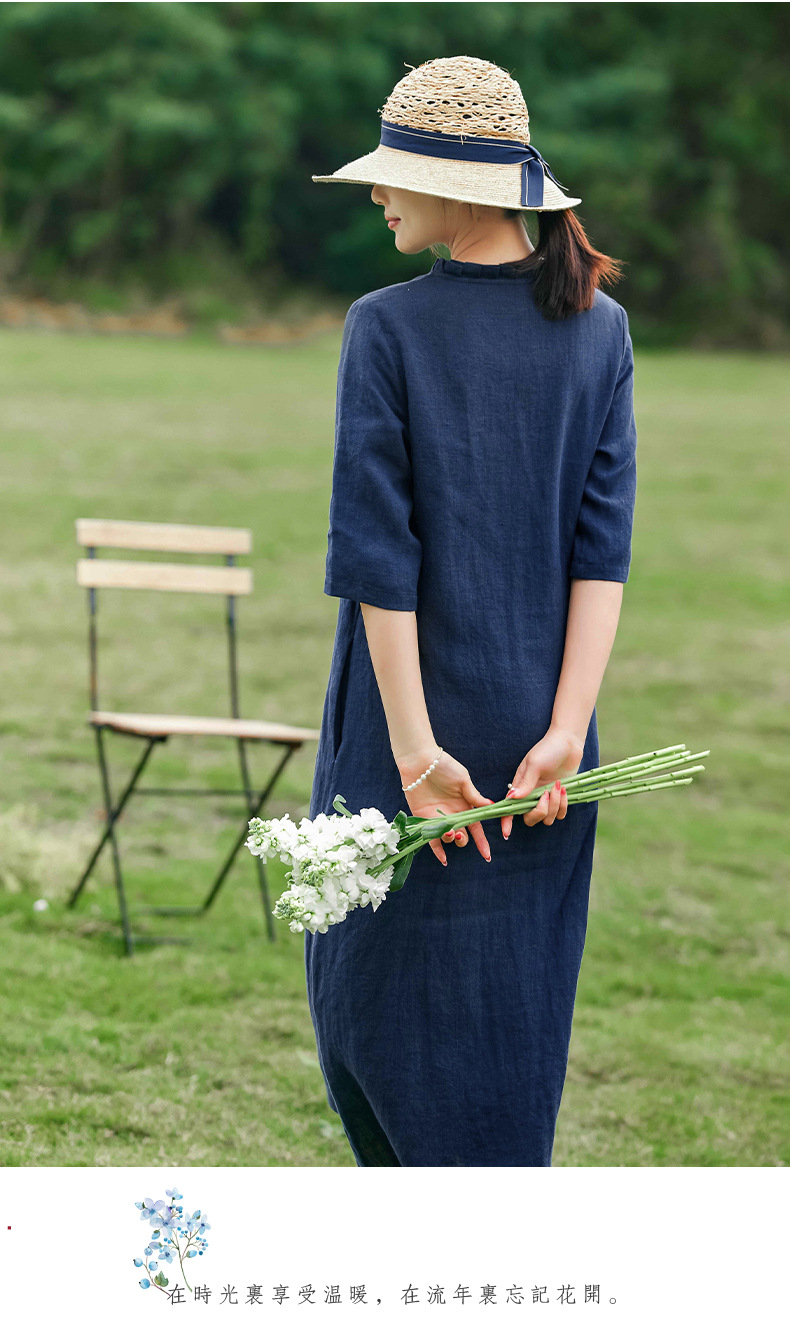 HM-C013春装新款原创设计 文艺亚麻A字裙复古砂洗怀旧纯色连衣裙