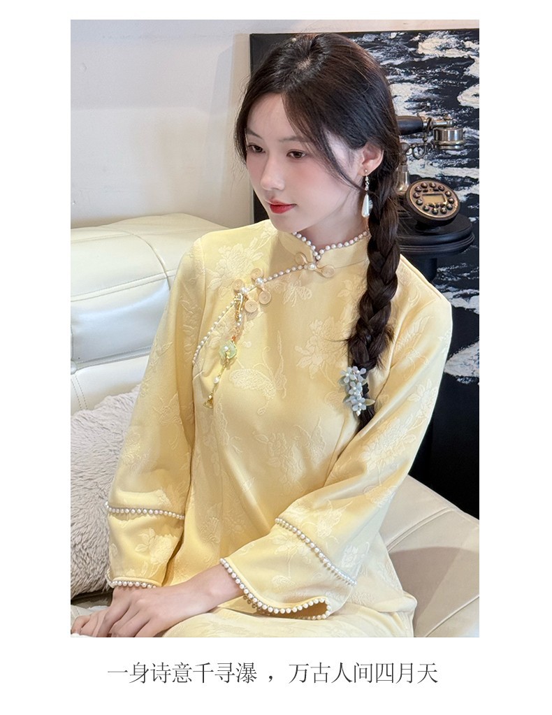 LSB4074改良旗袍黄色2025新款少女日常显白新中式连衣裙复古日常倒大袖秋 商品图3