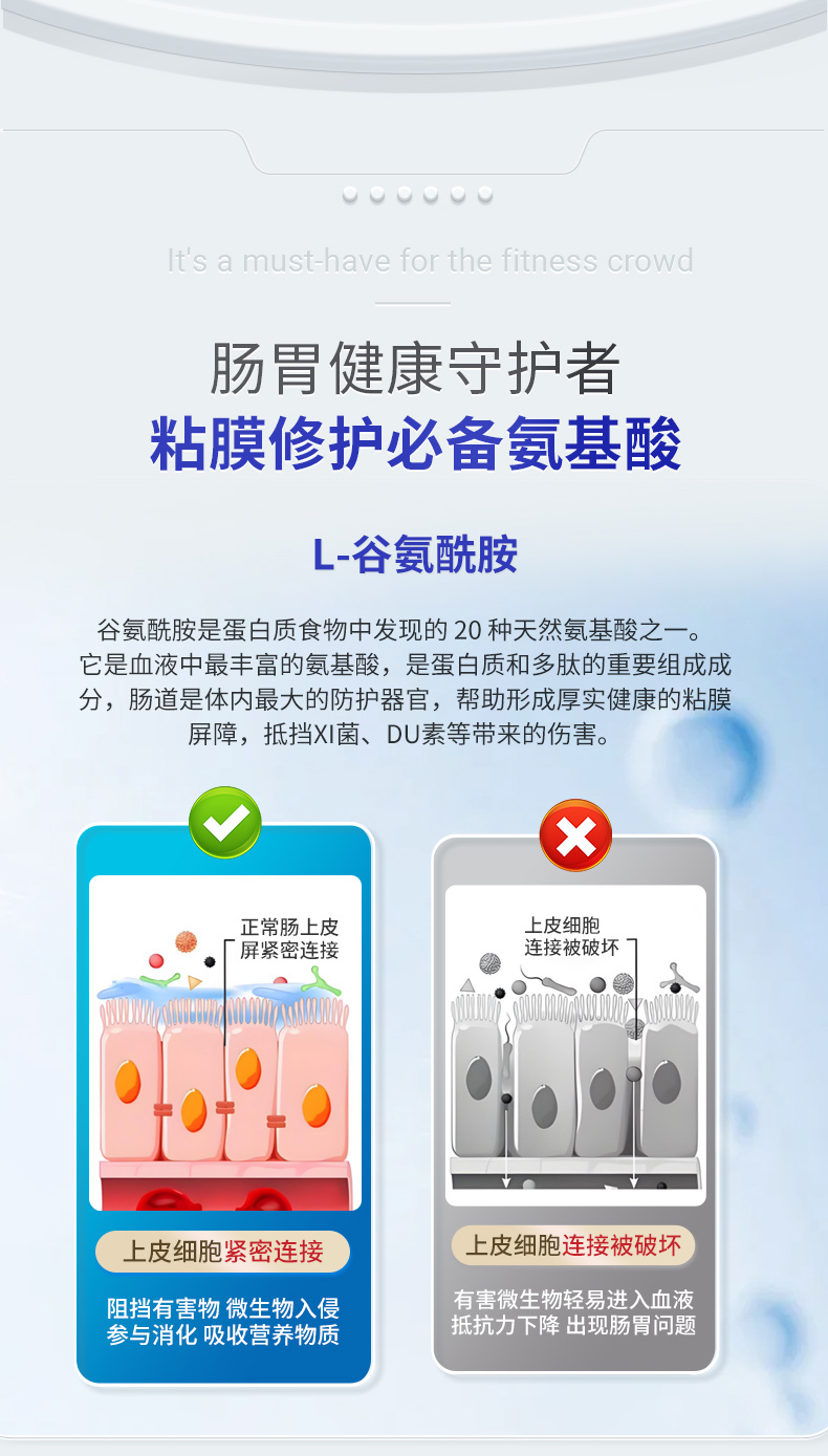 谷氨酰胺(Glutamine)是人体内最丰富的游离氨基酸之一,广泛存在于肌肉、血液、肠道上皮细胞和免疫细胞中。