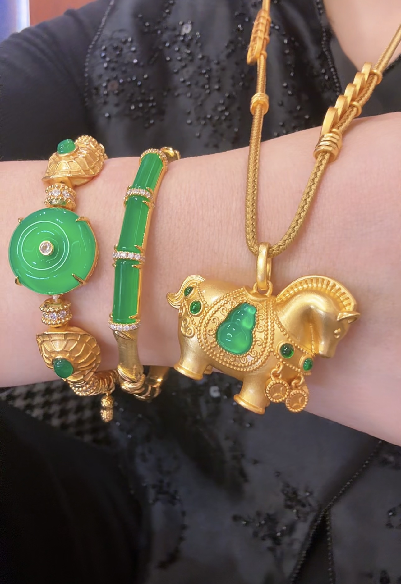 GAONAS 中式贵气小马设计金色项链11679DGO