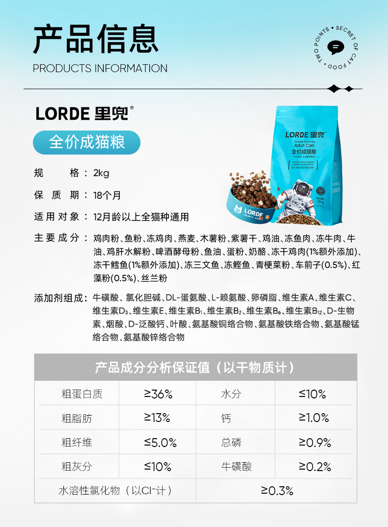 LORDE里兜 全价成猫粮2kg