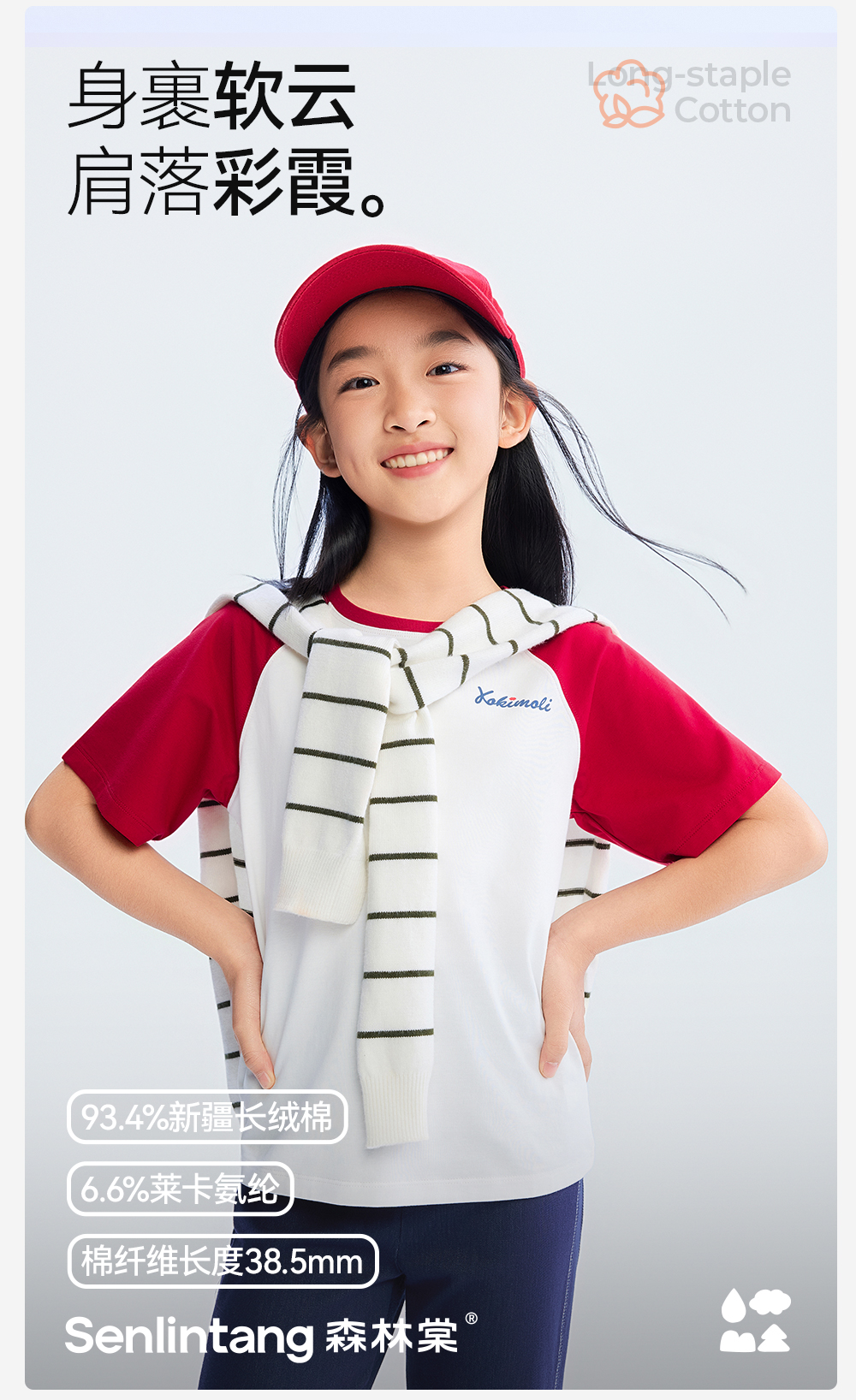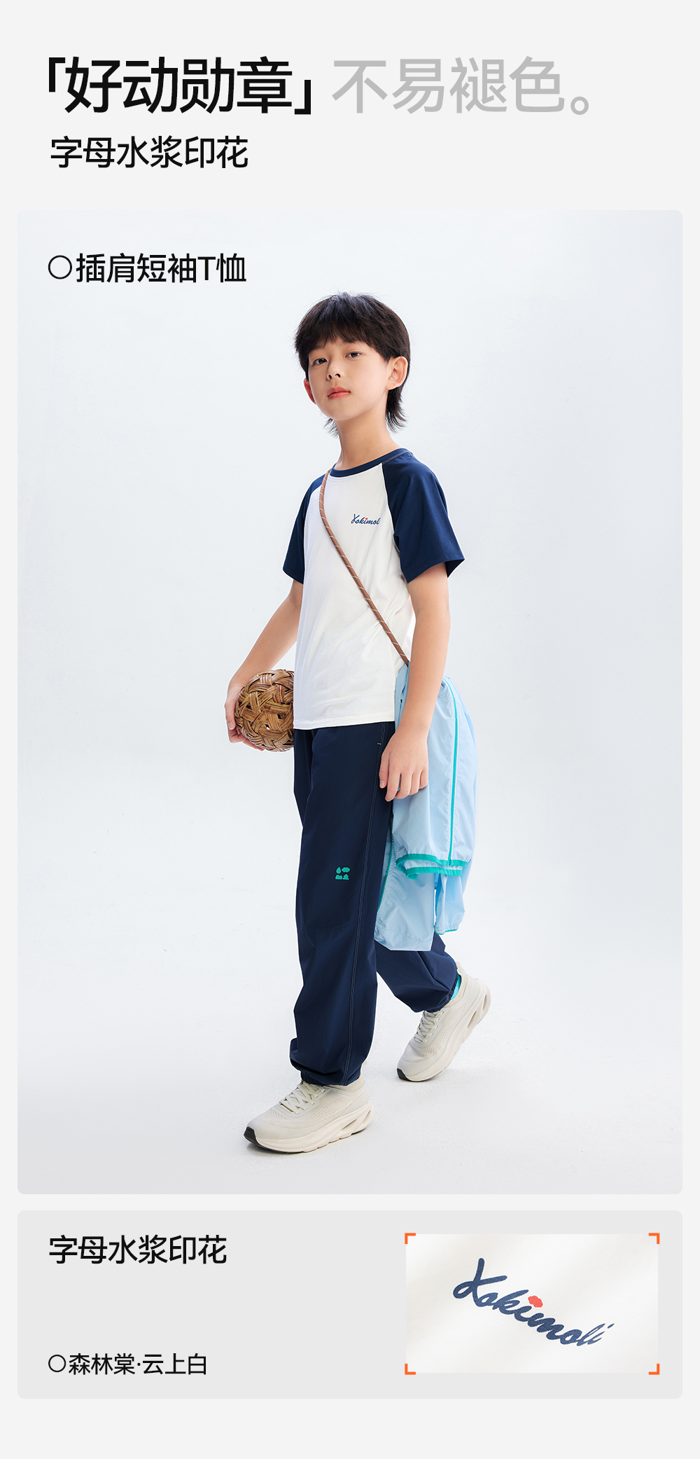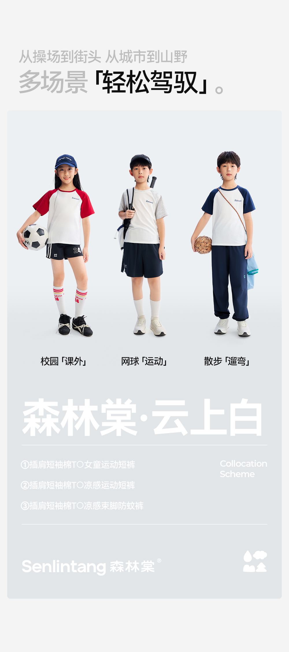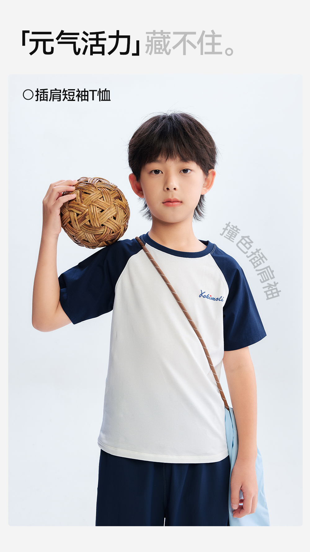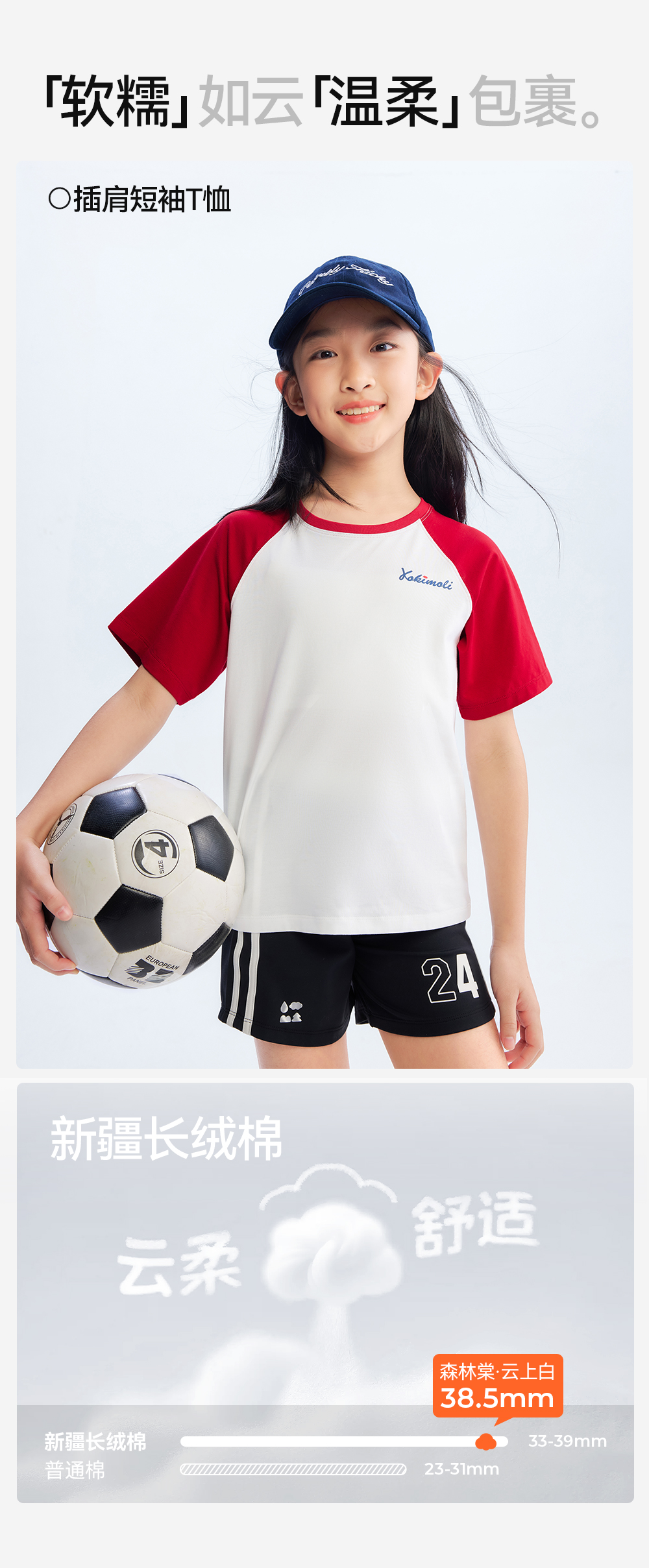 【插肩短袖棉T】森林棠26夏款云上白舒弹顺滑儿童撞色圆领T恤40162262