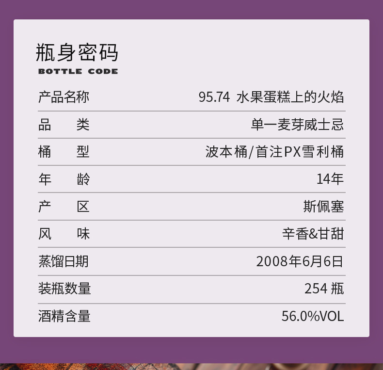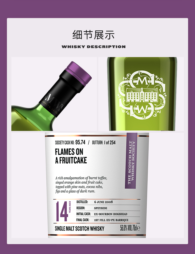 【SMWS】95.74 水果蛋糕上的火焰 14年 单一麦芽 威士忌 雪莉桶 洋酒