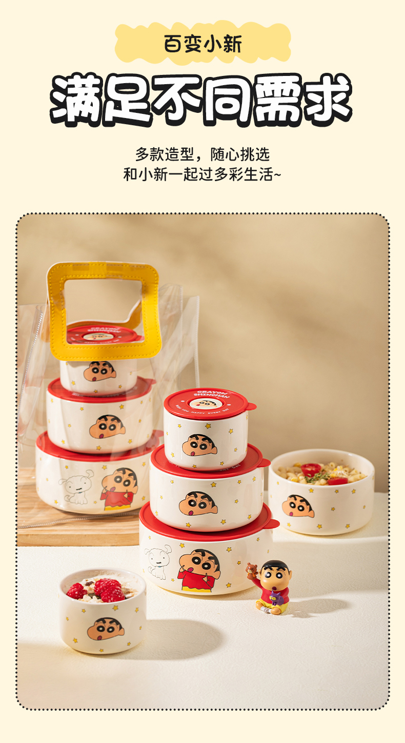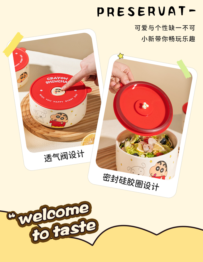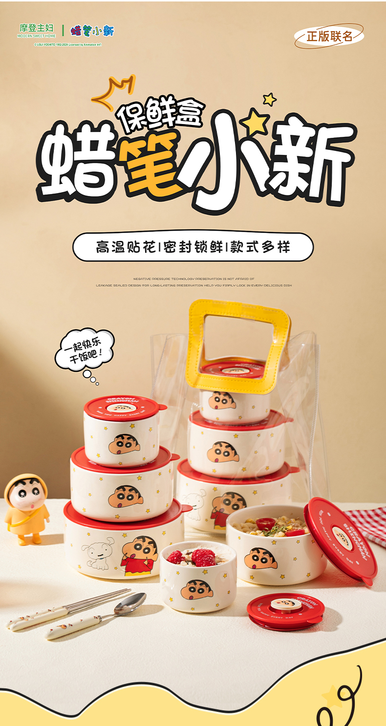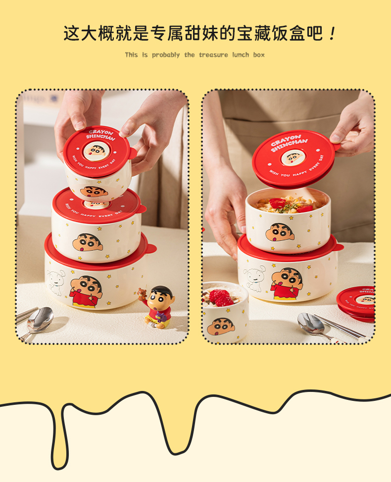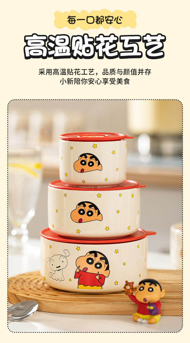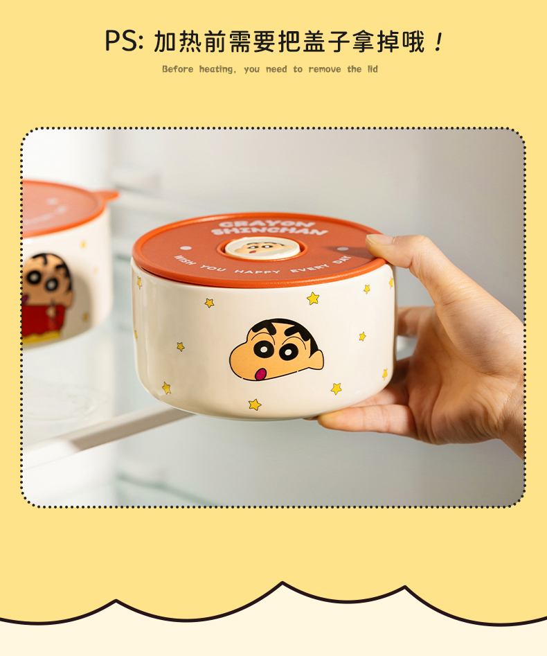 摩登主妇&蜡笔小新 陶瓷饭盒微波炉加热保鲜碗带盖水果便当盒