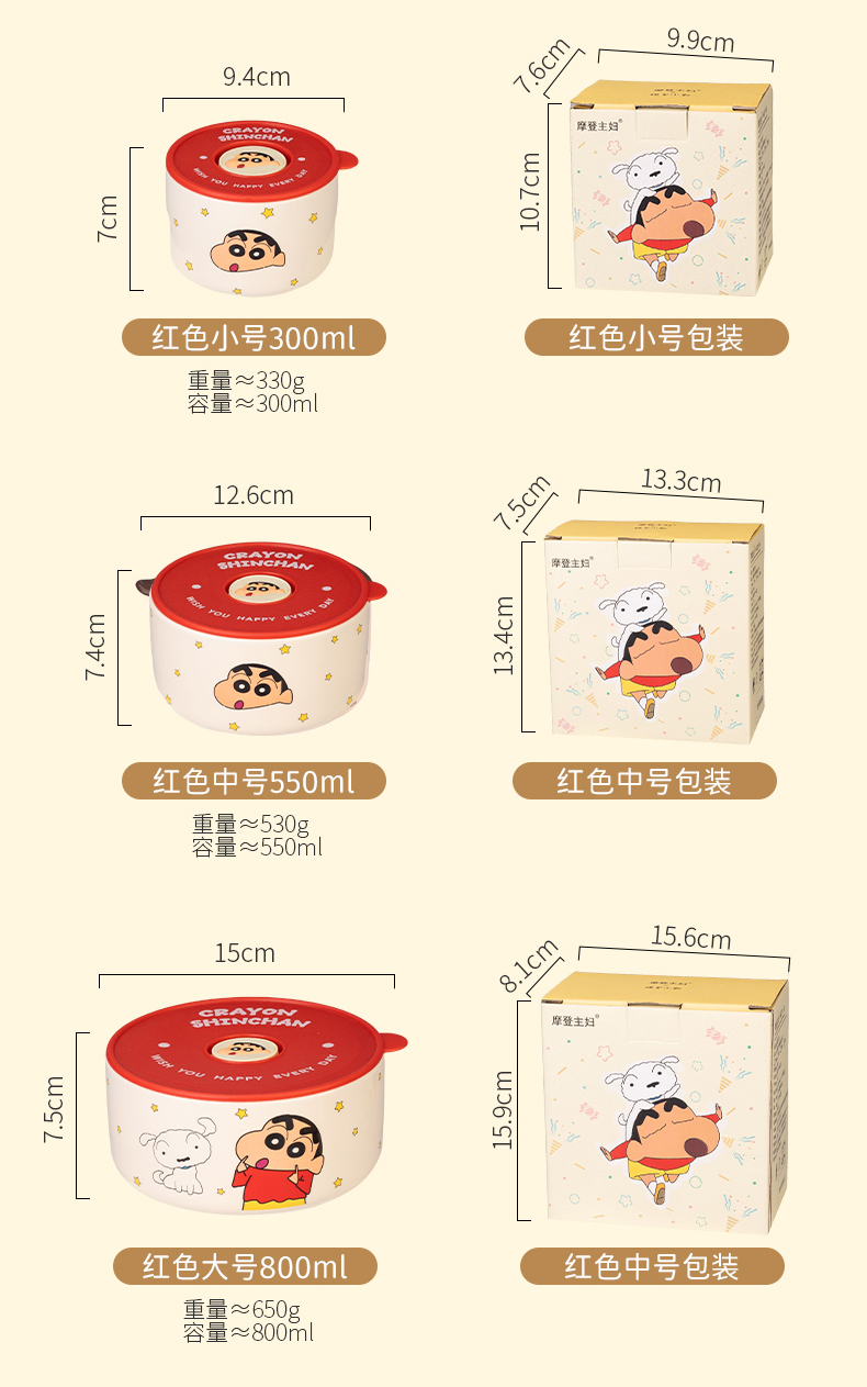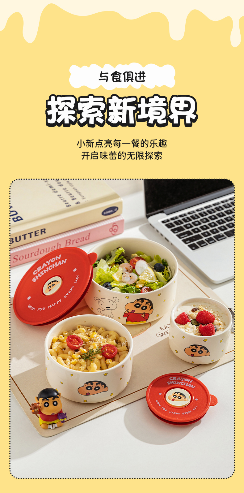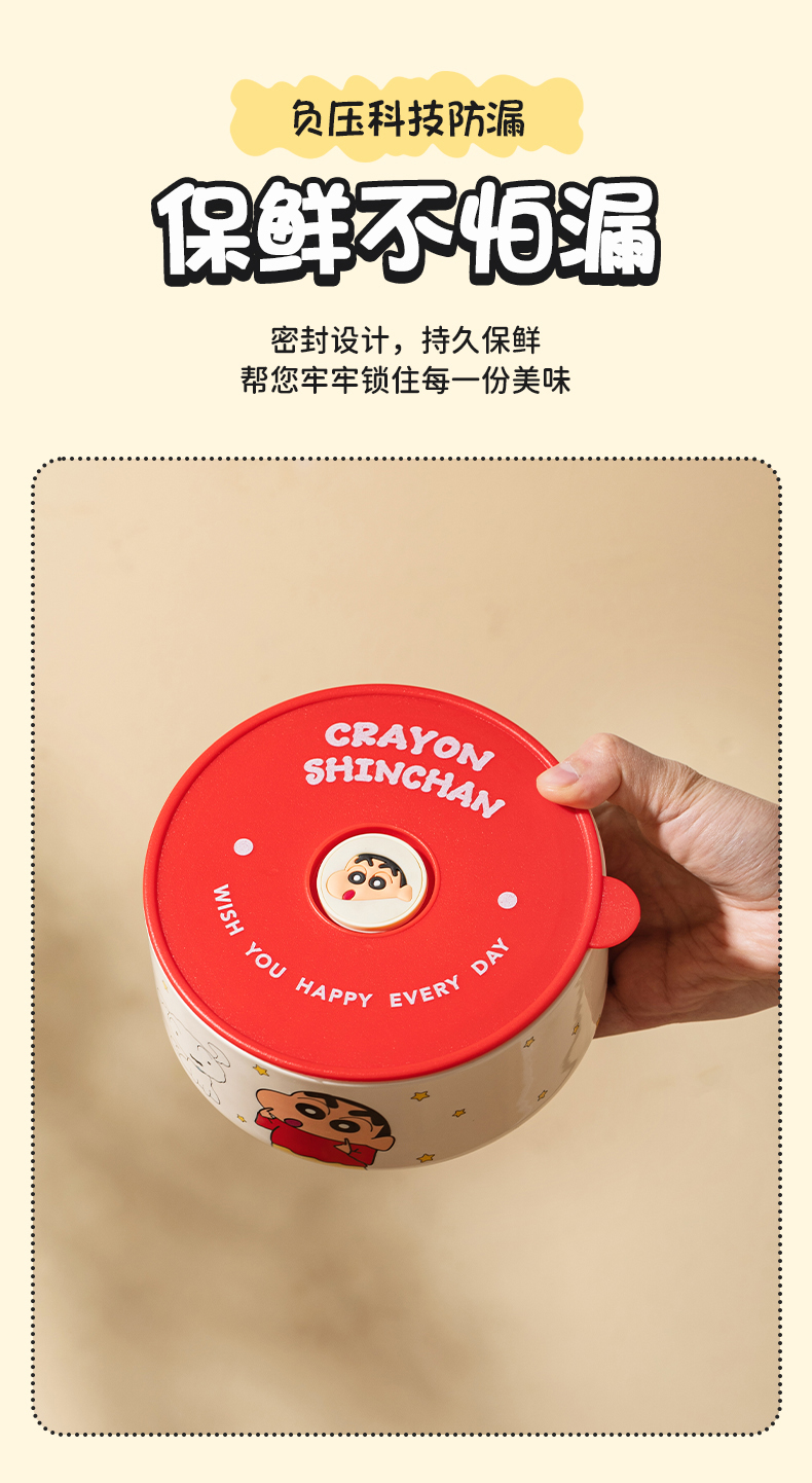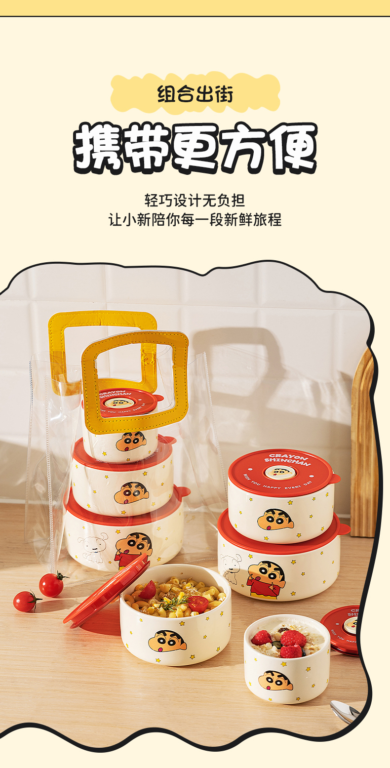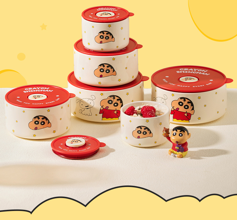 摩登主妇&蜡笔小新 陶瓷饭盒微波炉加热保鲜碗带盖水果便当盒