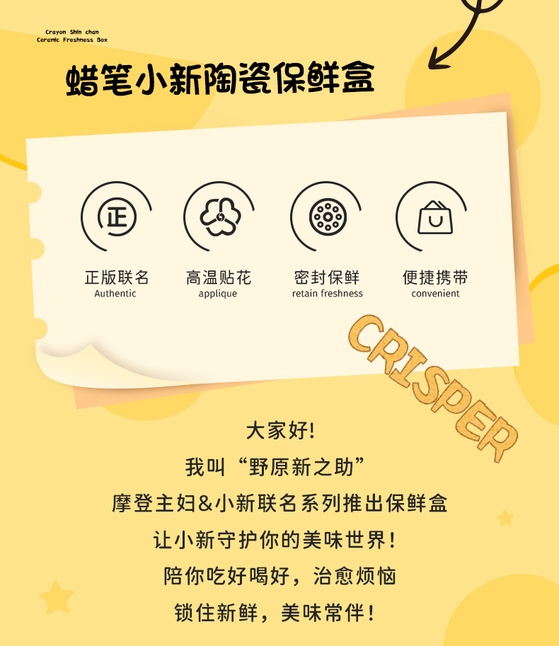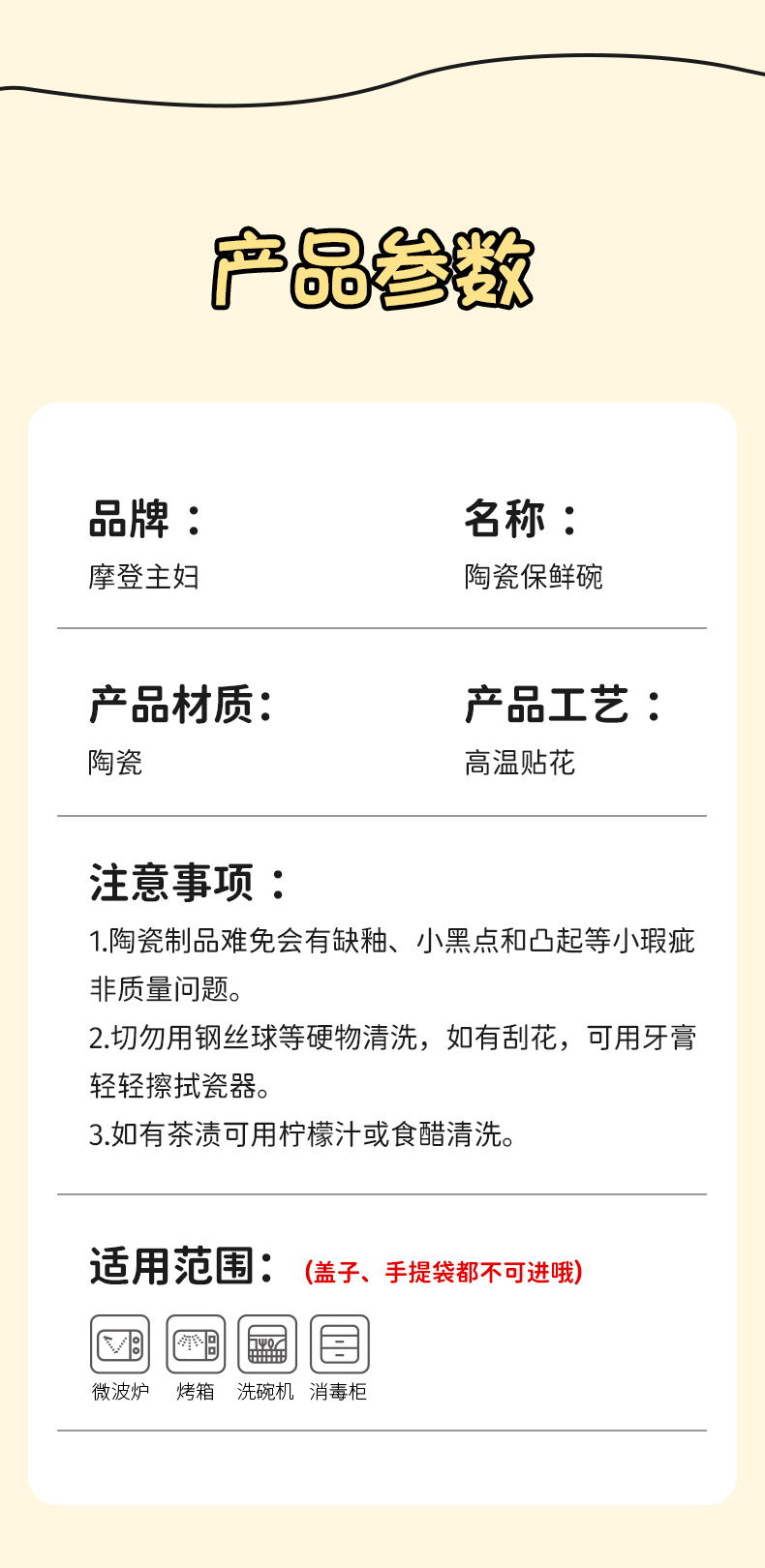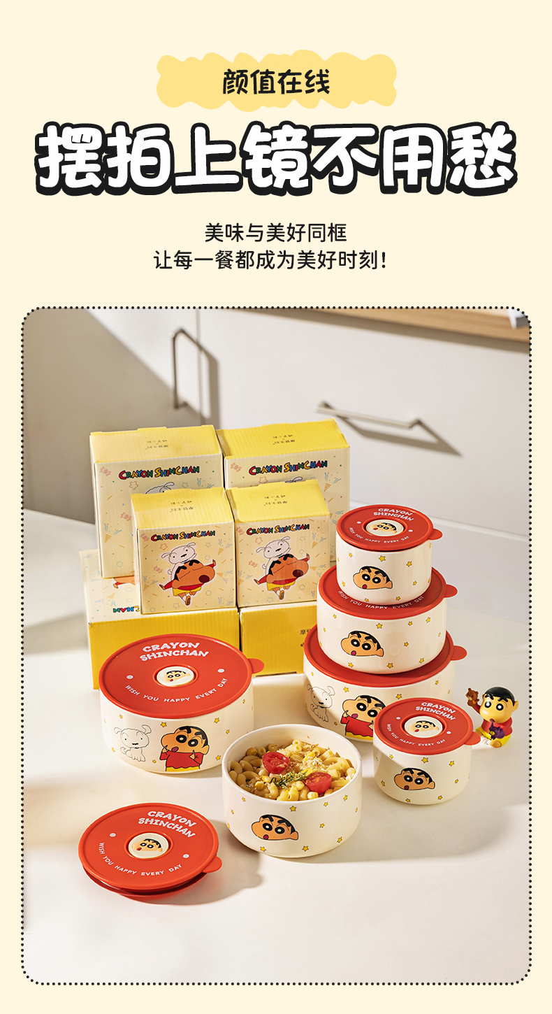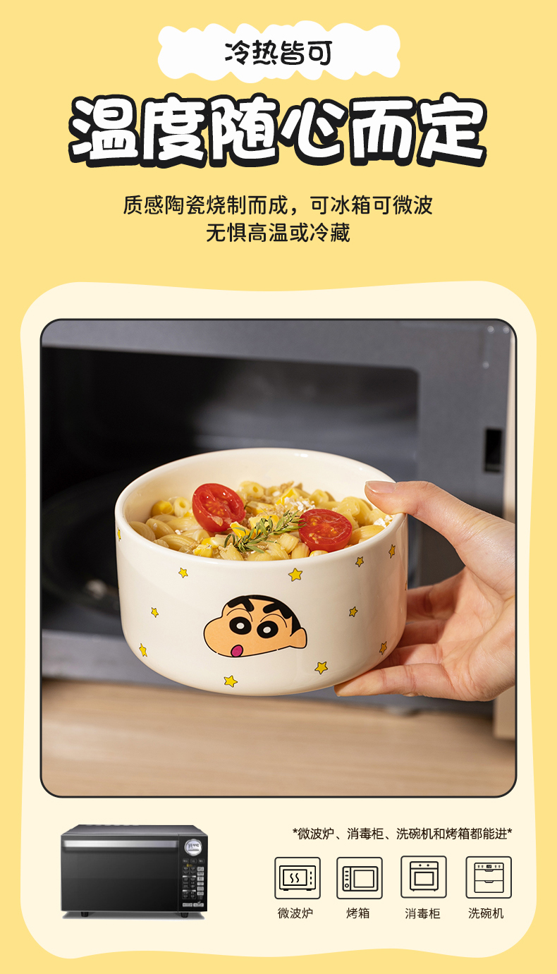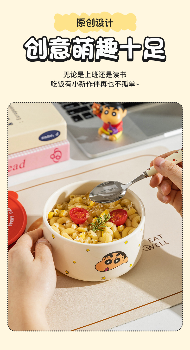 摩登主妇&蜡笔小新 陶瓷饭盒微波炉加热保鲜碗带盖水果便当盒