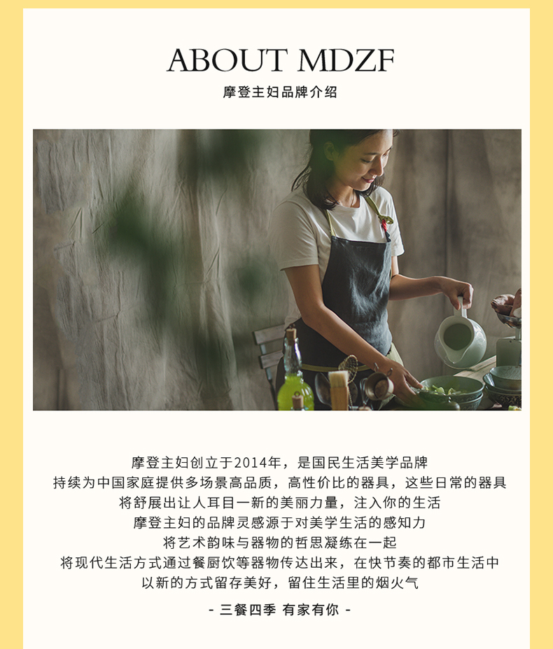 - 摩登主妇的创始人娜娜,是一个普通的80后妈妈,因为一个简单而执着的想法,要让“中国制造”的优质商品走进国内主妇们的生活,摩登主妇的品牌页由此而来。