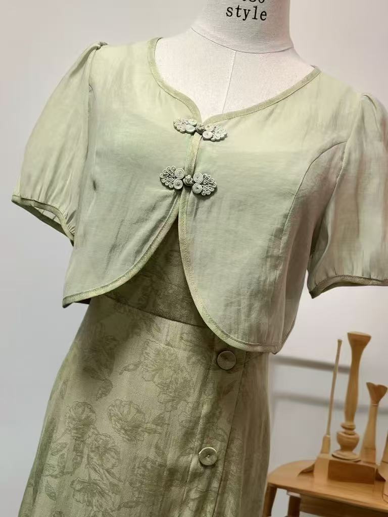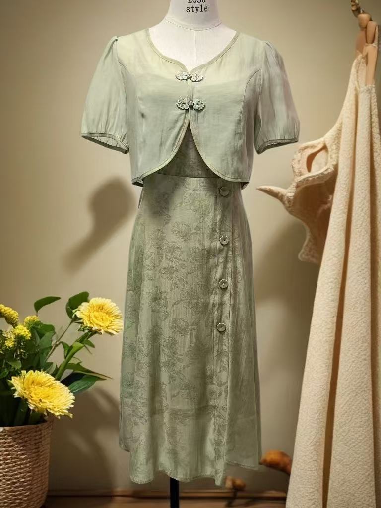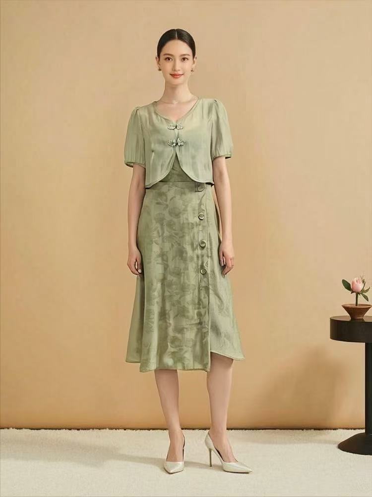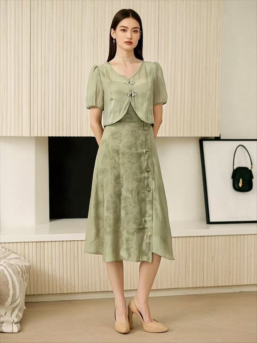 套装【MYBL】8898 77%天丝新中式暗花吊带裙两件套-喜出