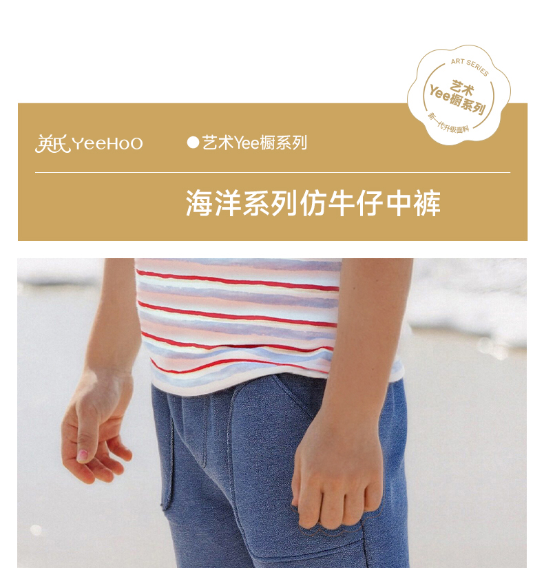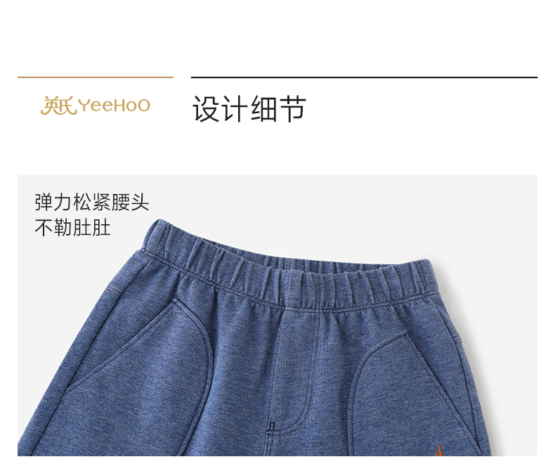 【商场同款】英氏儿童裤子男童夏季牛仔中裤深蓝百搭休闲裤26新款