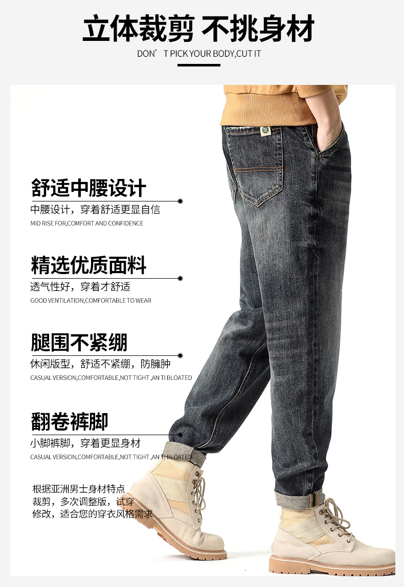 【新款DYG】大依优型大码牛仔裤小脚长裤男舒适弹力休闲简约百搭加肥加大男装潮款