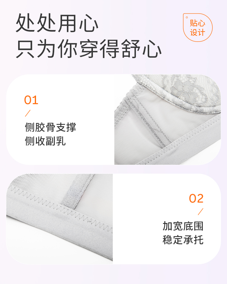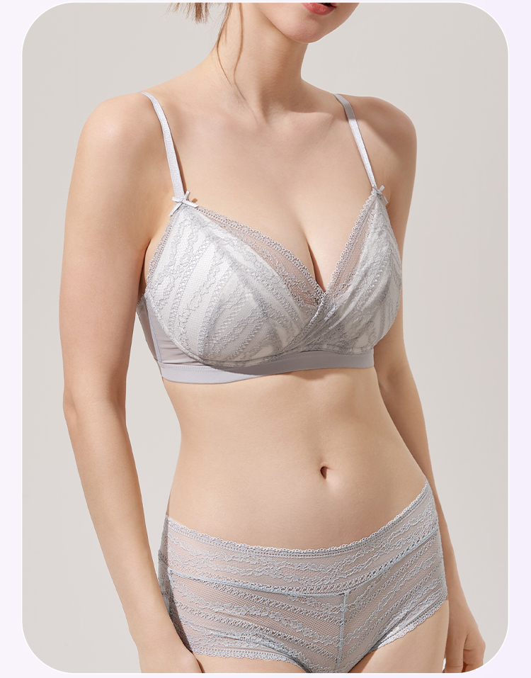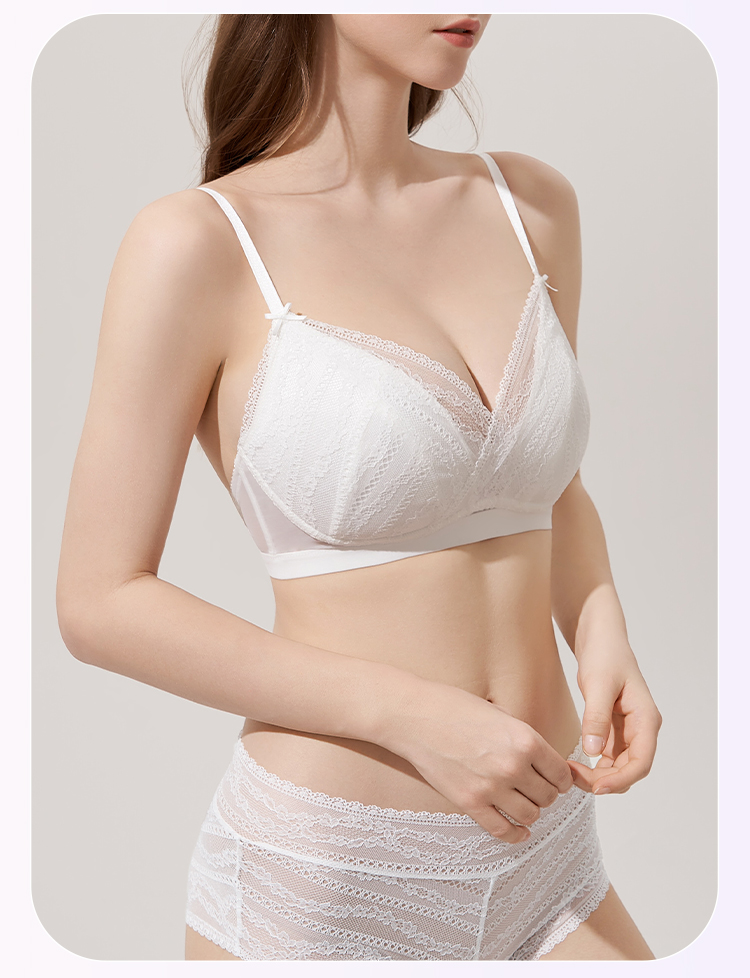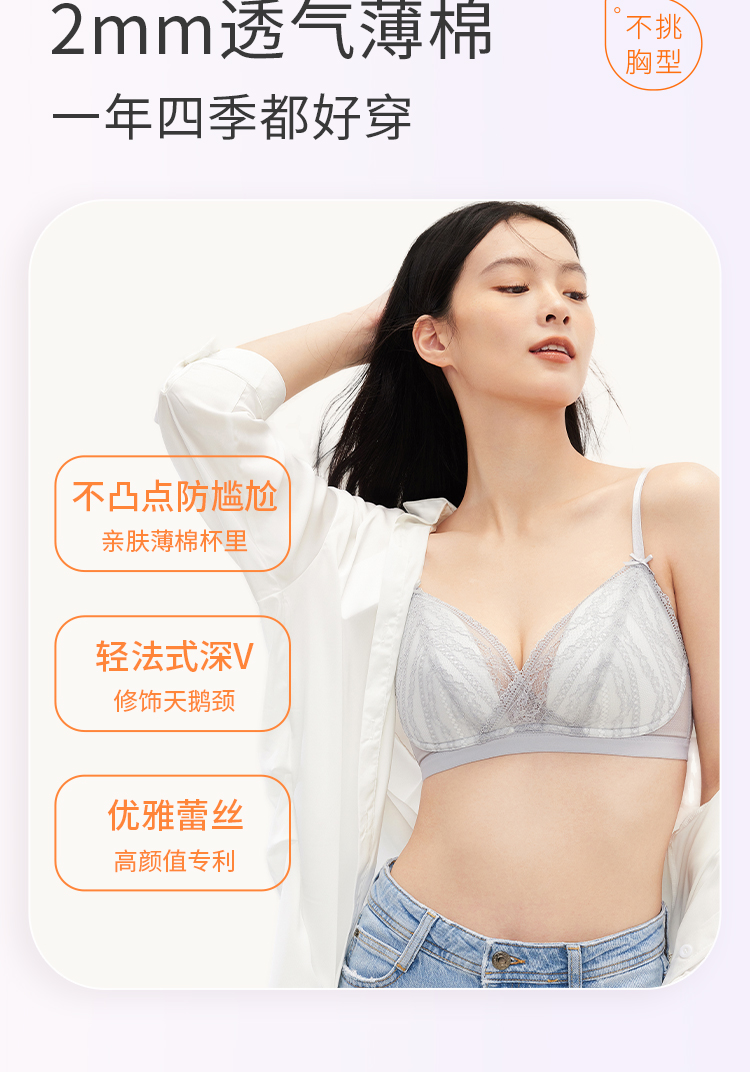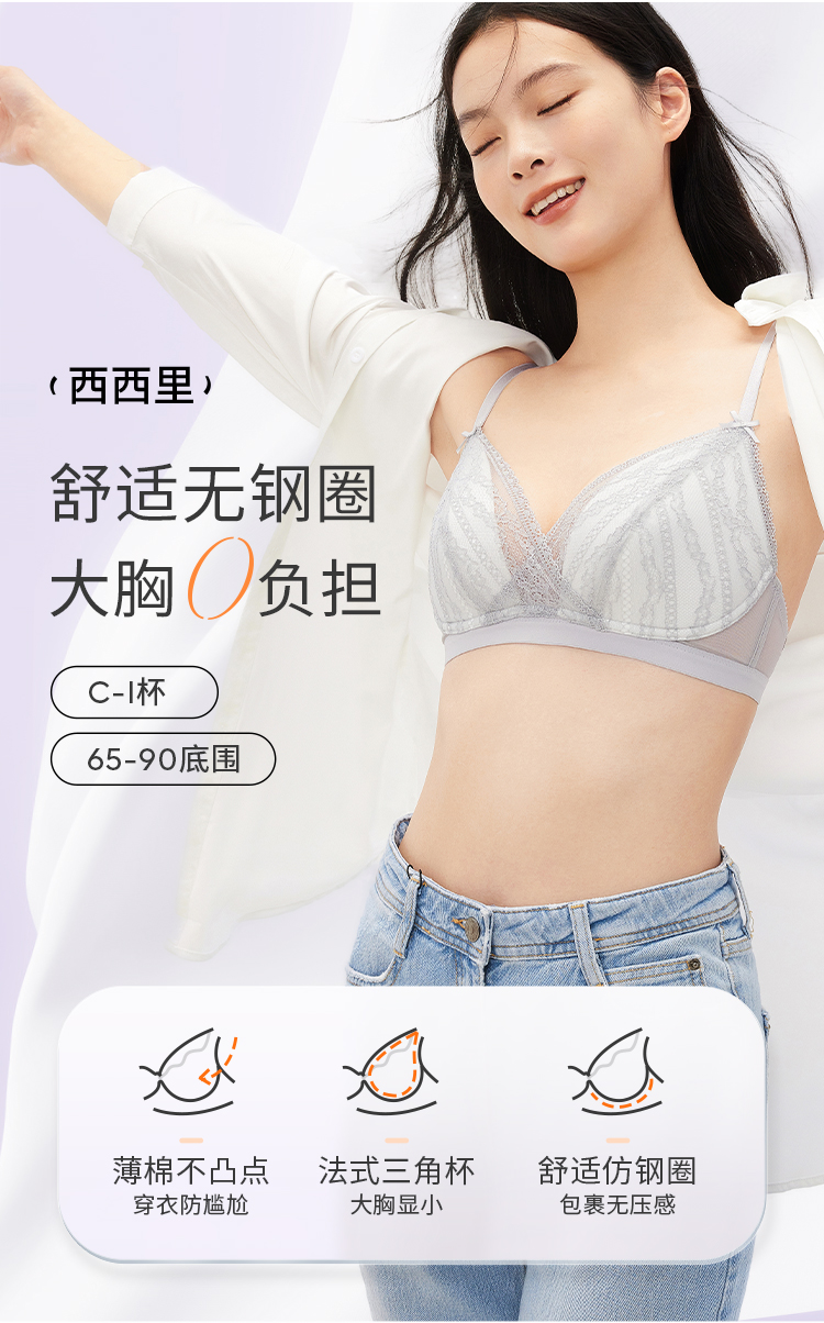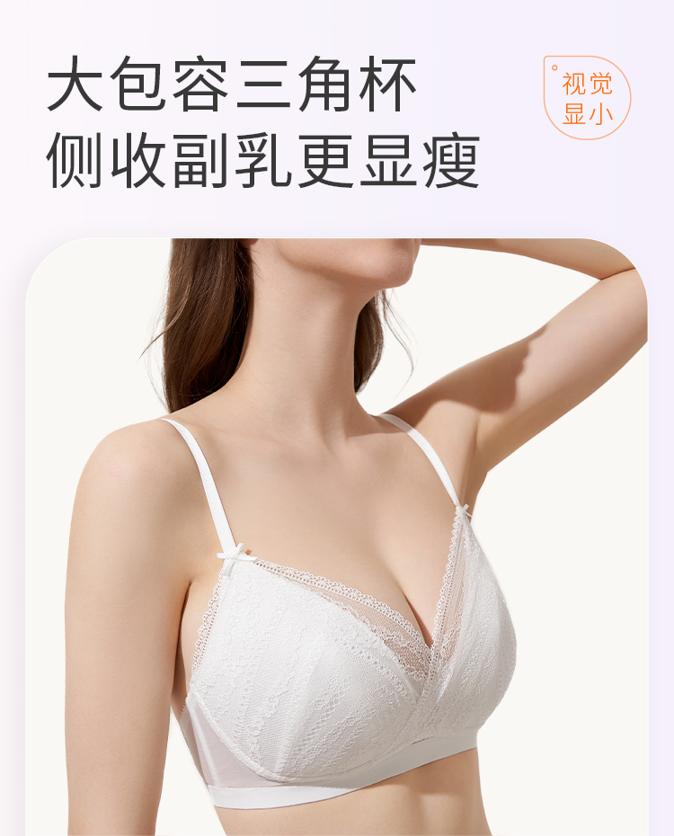 奶糖派大胸显小西西里法式三角杯767C010 薄显小不凸点蕾丝三角杯大杯文胸内衣