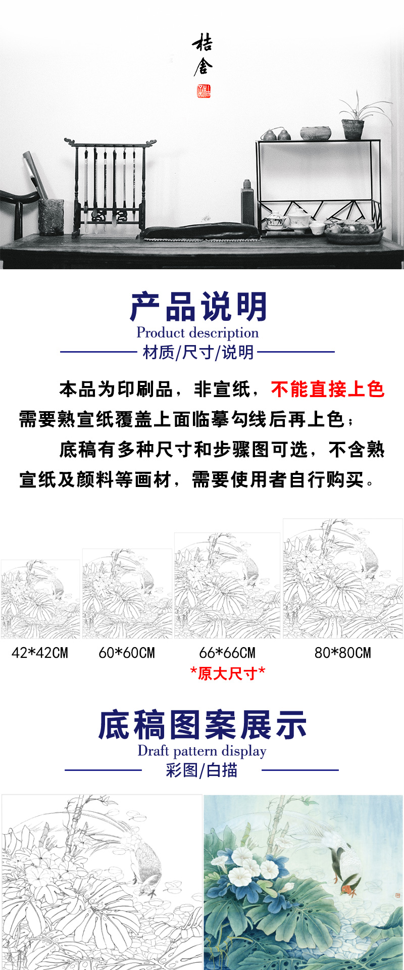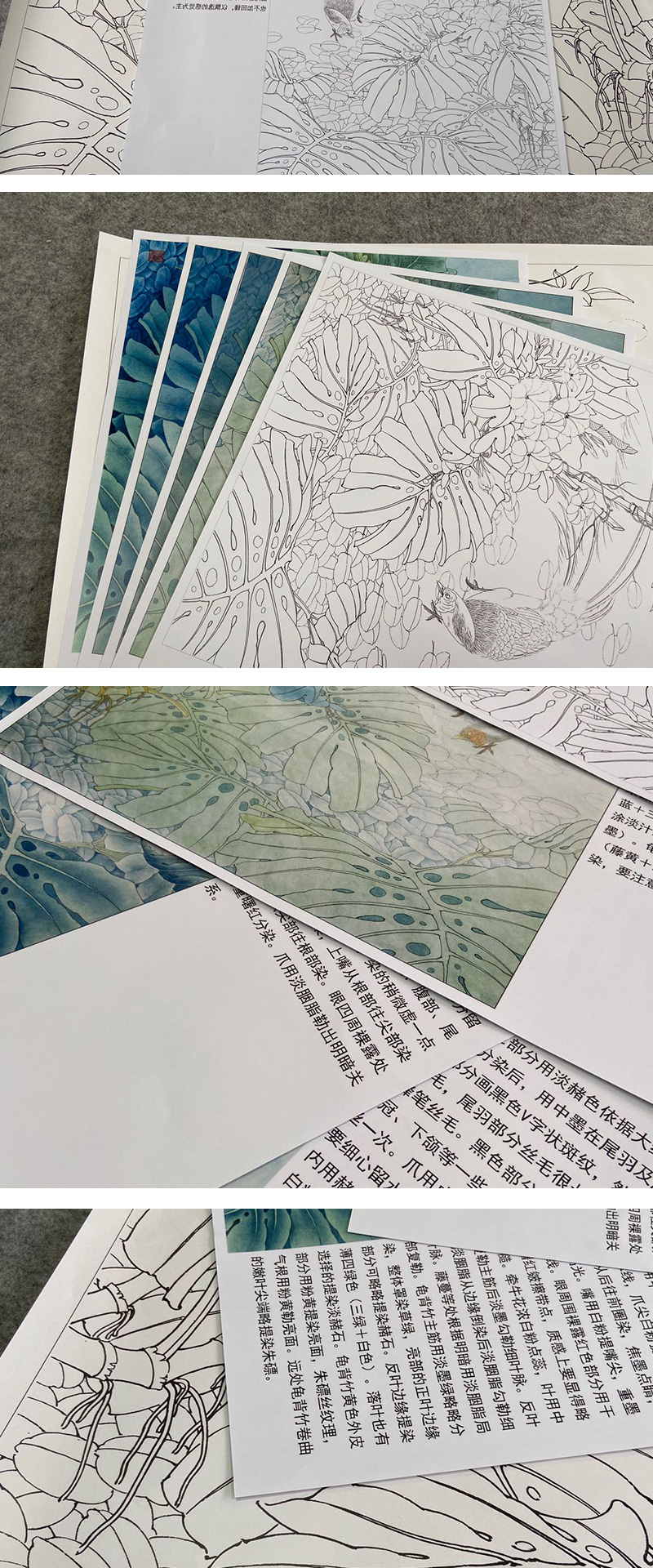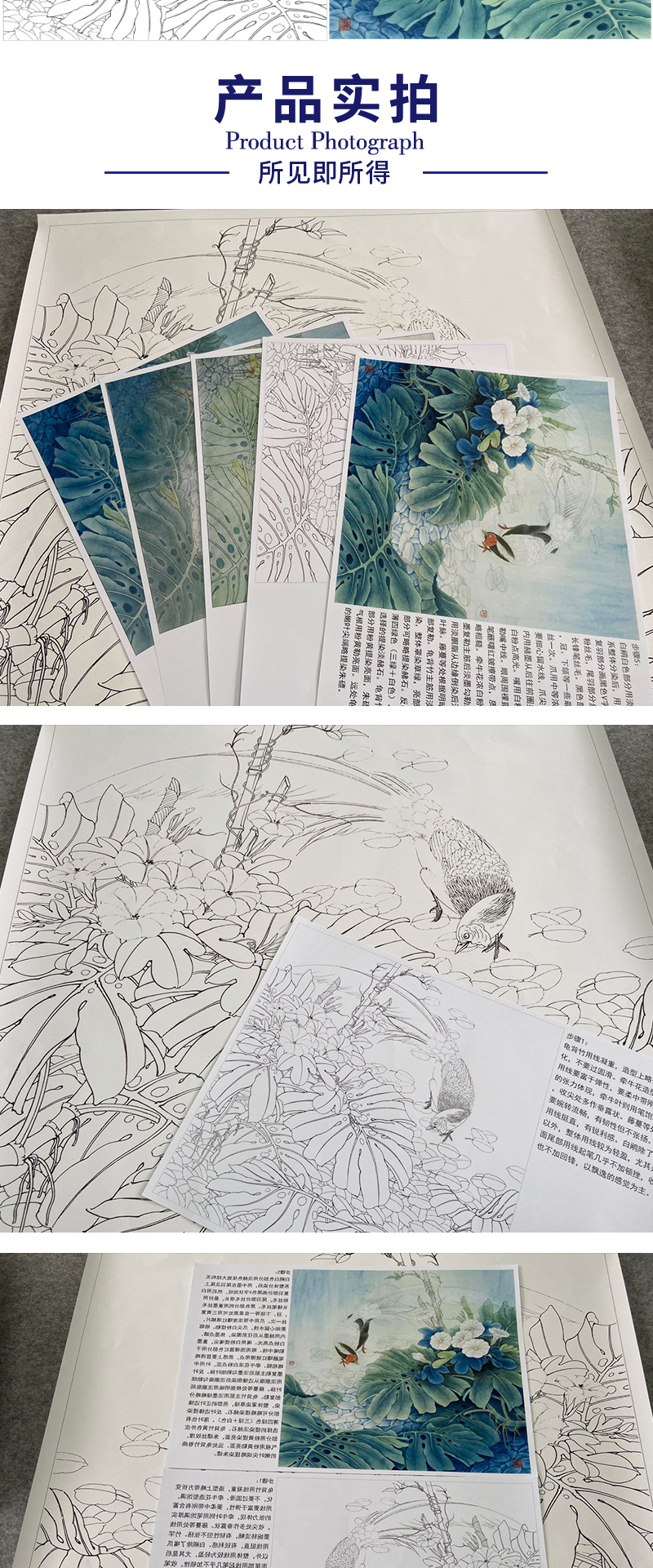 【有步骤、大彩图】李晓明工笔画白描底稿斗方《白鹇龟背竹》初学者高清打印稿KB27