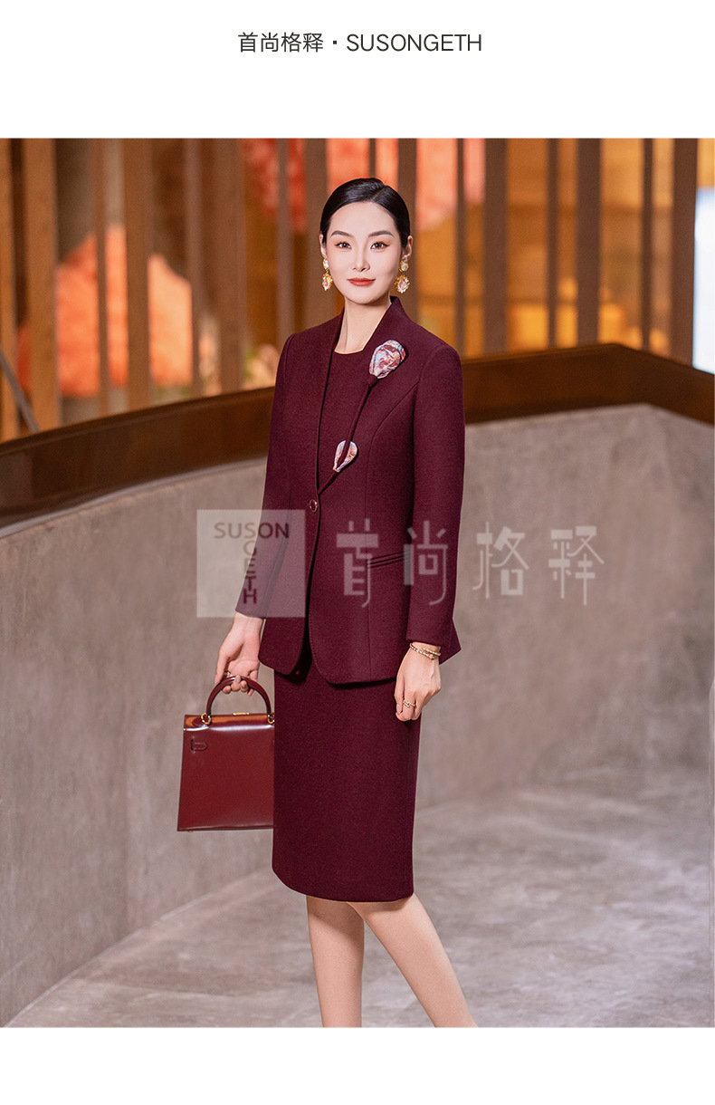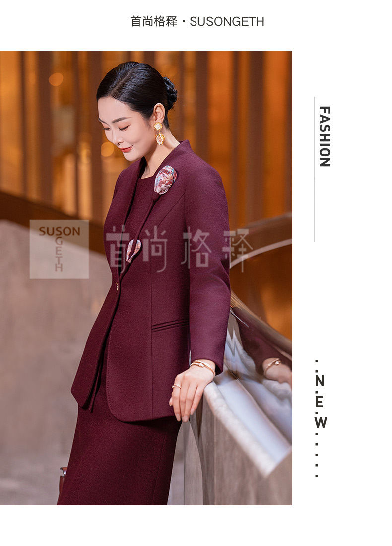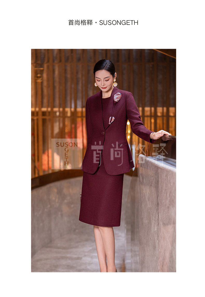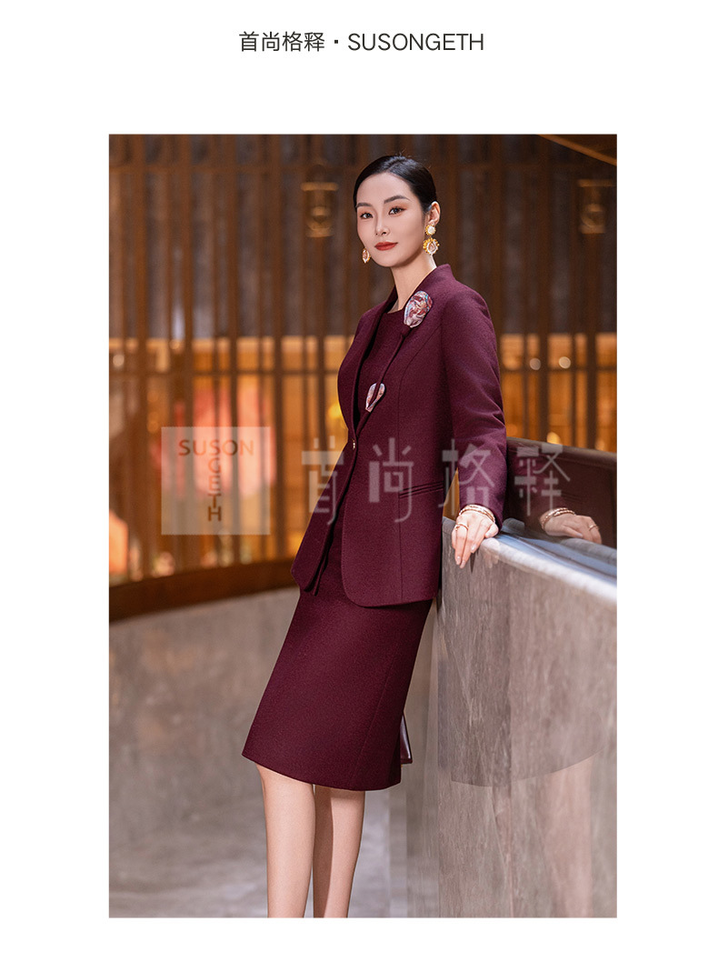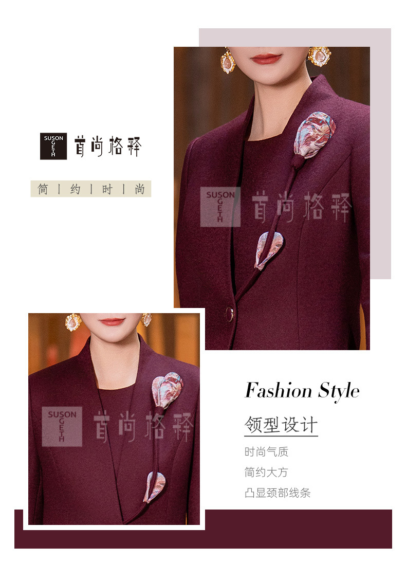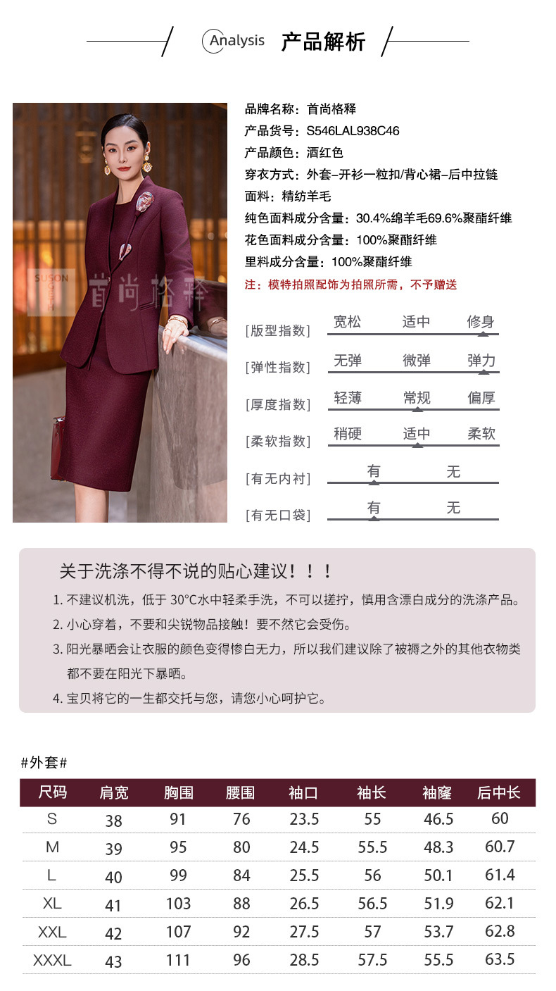 YBY 938C46毛呢套装裙气质长袖羊毛连衣裙两件套