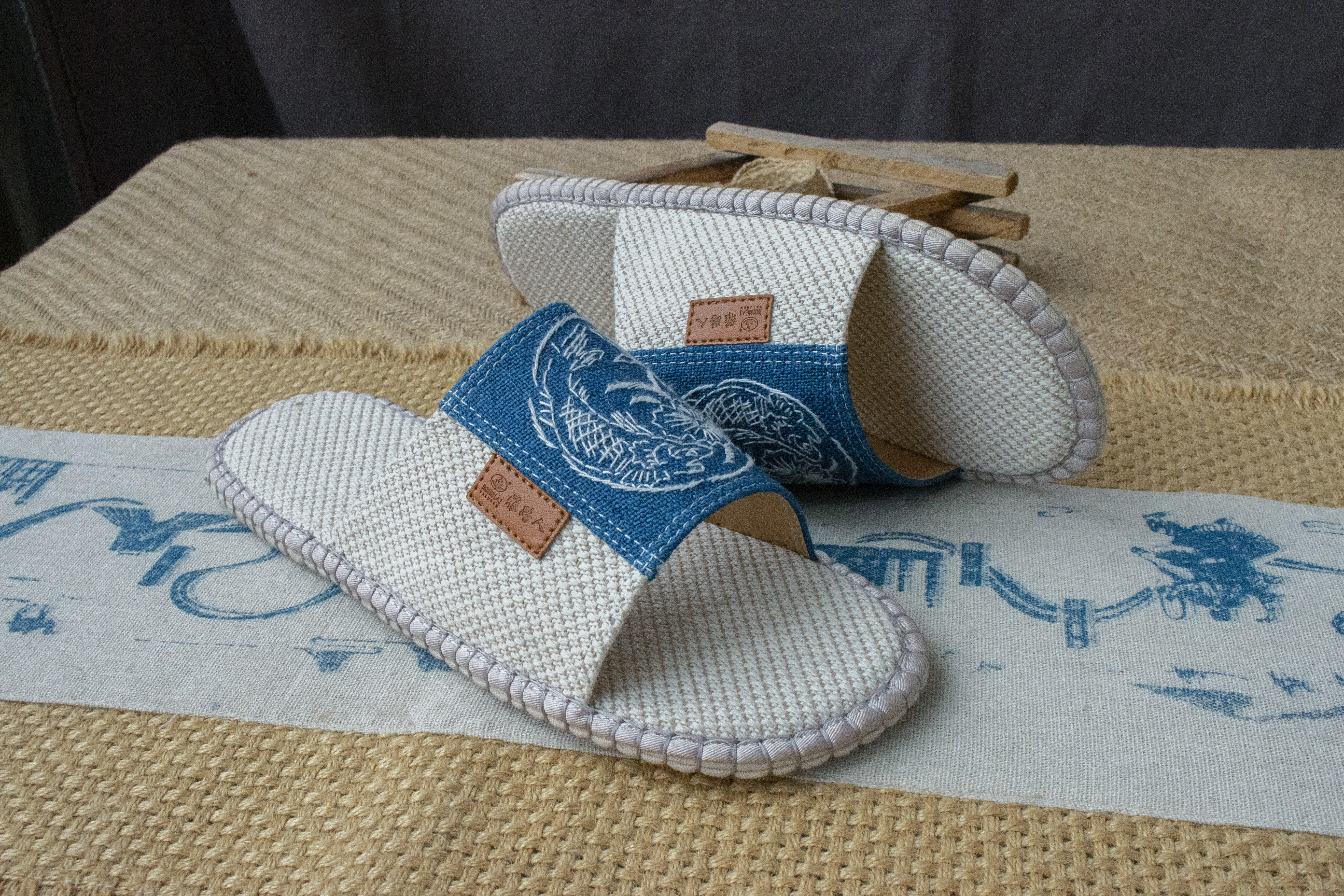 男女士亚麻编织拖鞋甘谷麻鞋手工钩织刺绣居家防臭四季防滑环保地板拖鞋