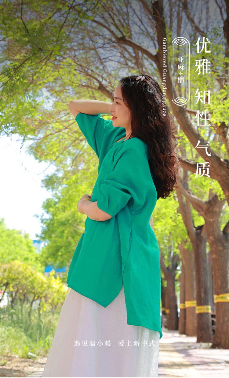 【线上专属】新中式衬衣(23710018亚丁绿-结缘款)