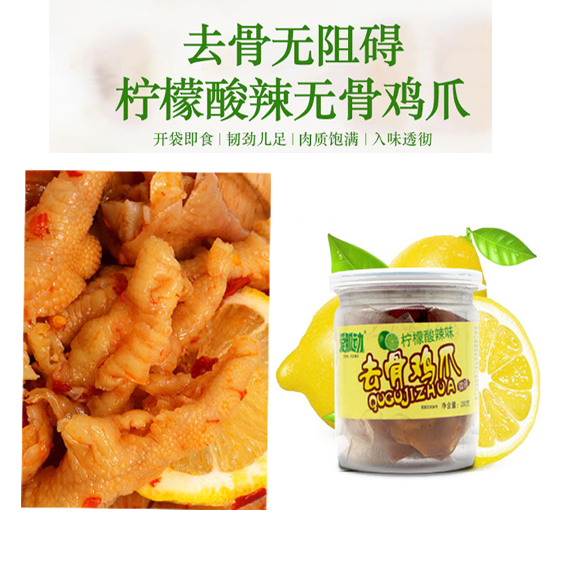 【网红爆款美味不用啃】爱肌动柠檬酸辣无骨鸡爪200g/罐韧劲儿足肉质饱满入味透彻开罐即食热卖