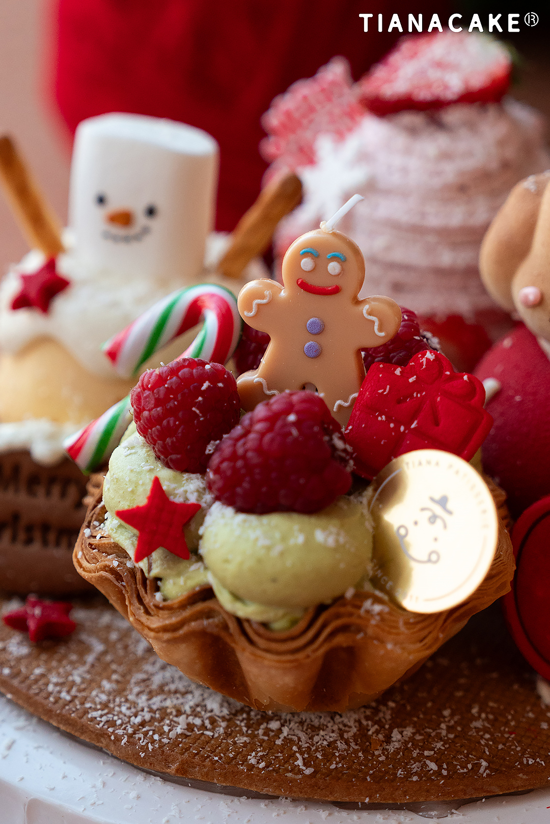开心果拿破仑挞:特调开心果奶油 | 手煮树莓酱 | 新鲜草莓碎 | 新鲜树莓 | 拿破仑酥皮挞壳 | 原味戚风