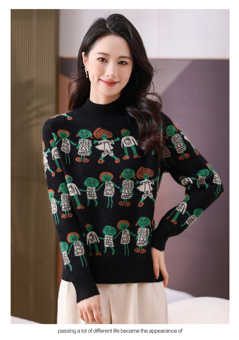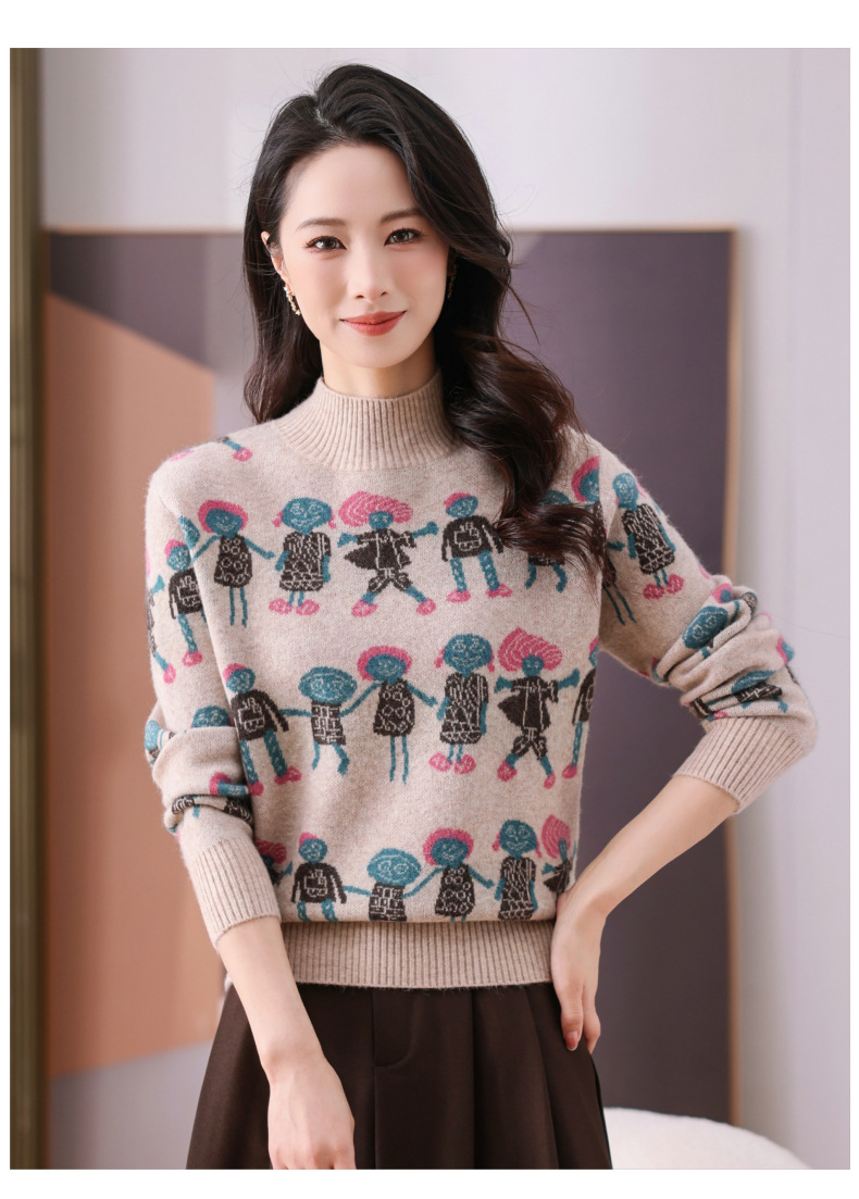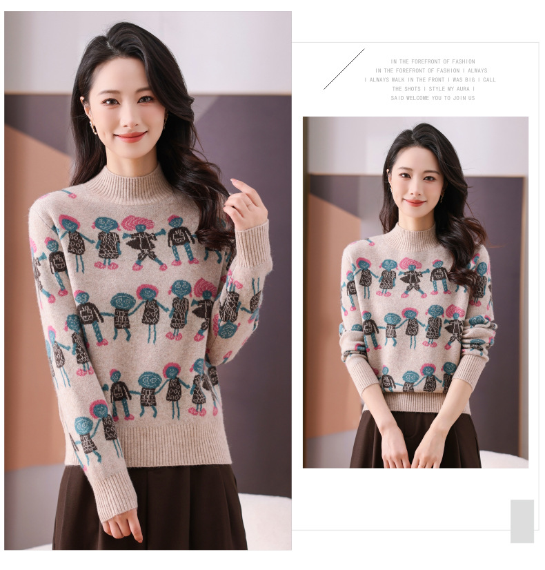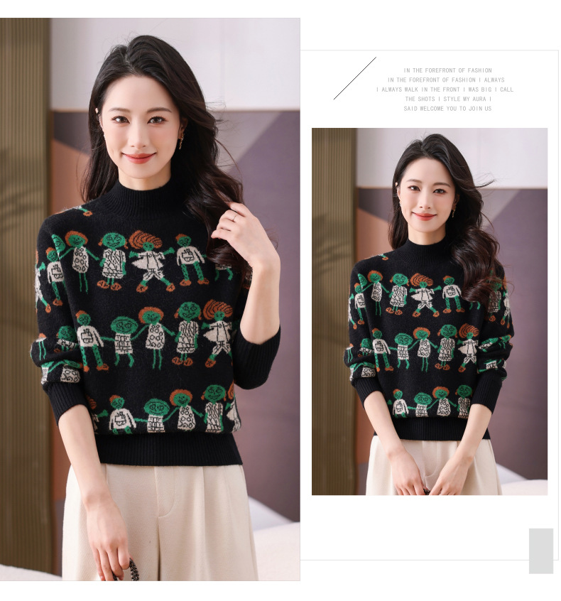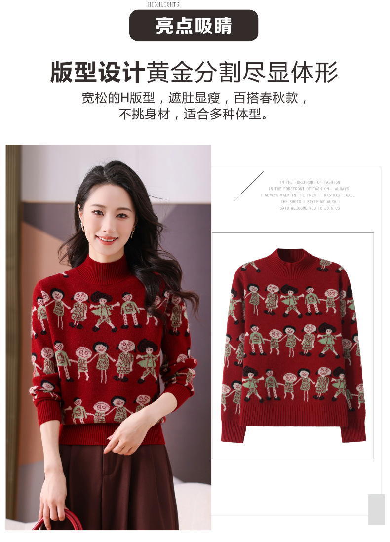 CC-101-35463高腰短款半高领毛衣女时尚秋冬2024新款洋气内搭小个子羊毛打底衫