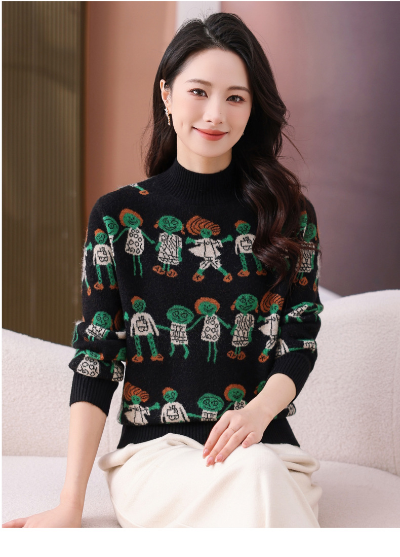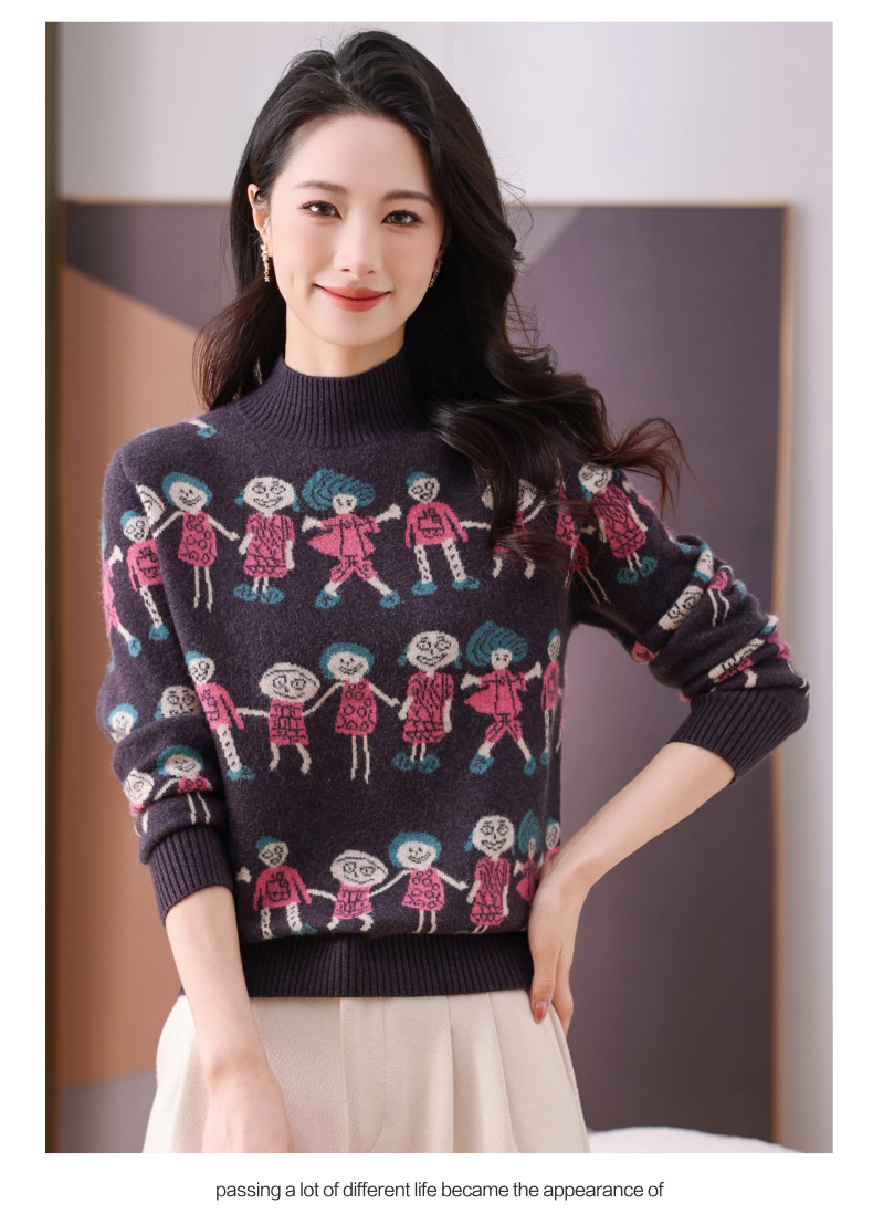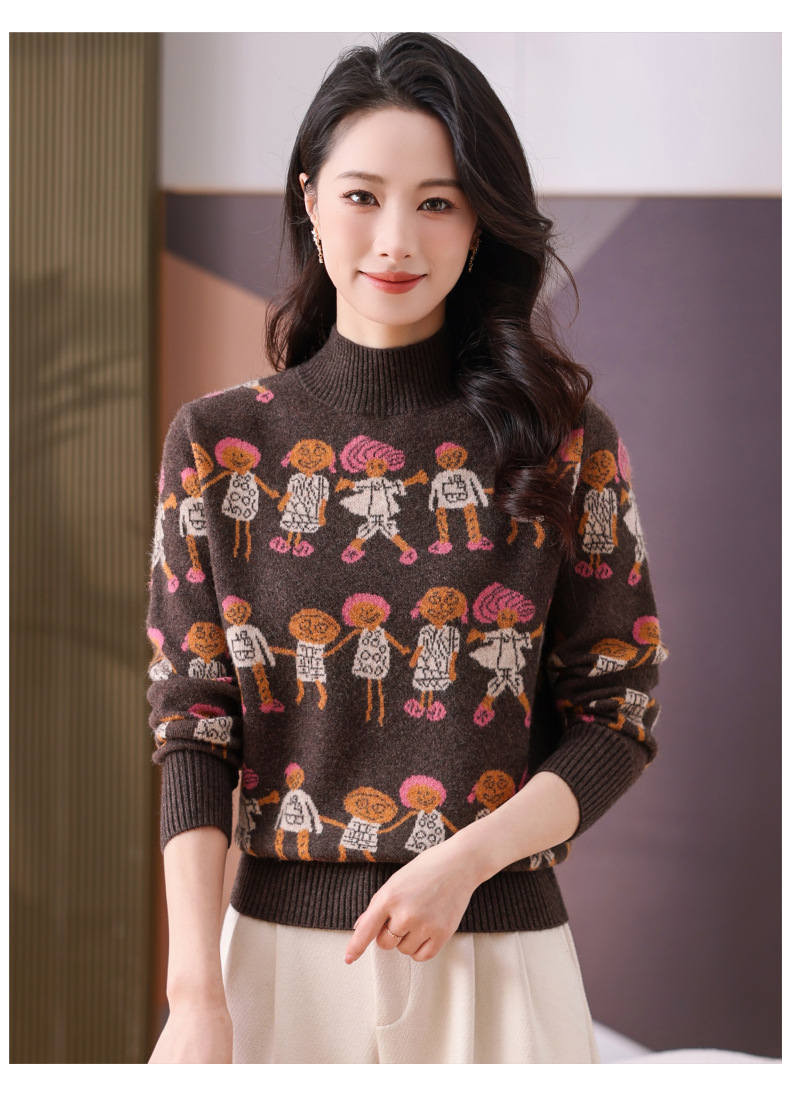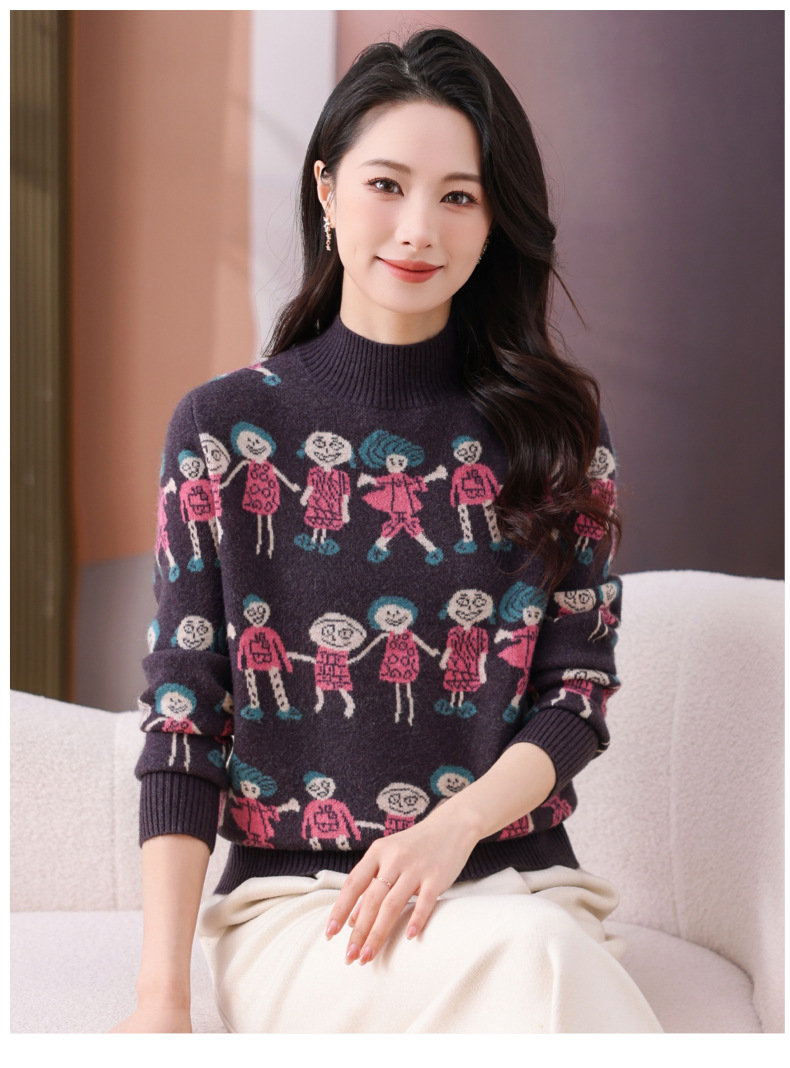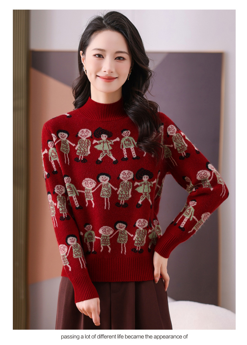 CC-101-35463高腰短款半高领毛衣女时尚秋冬2024新款洋气内搭小个子羊毛打底衫